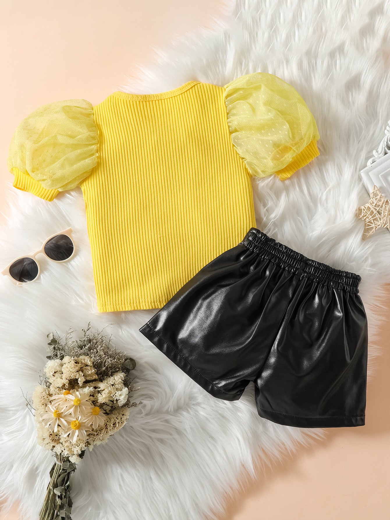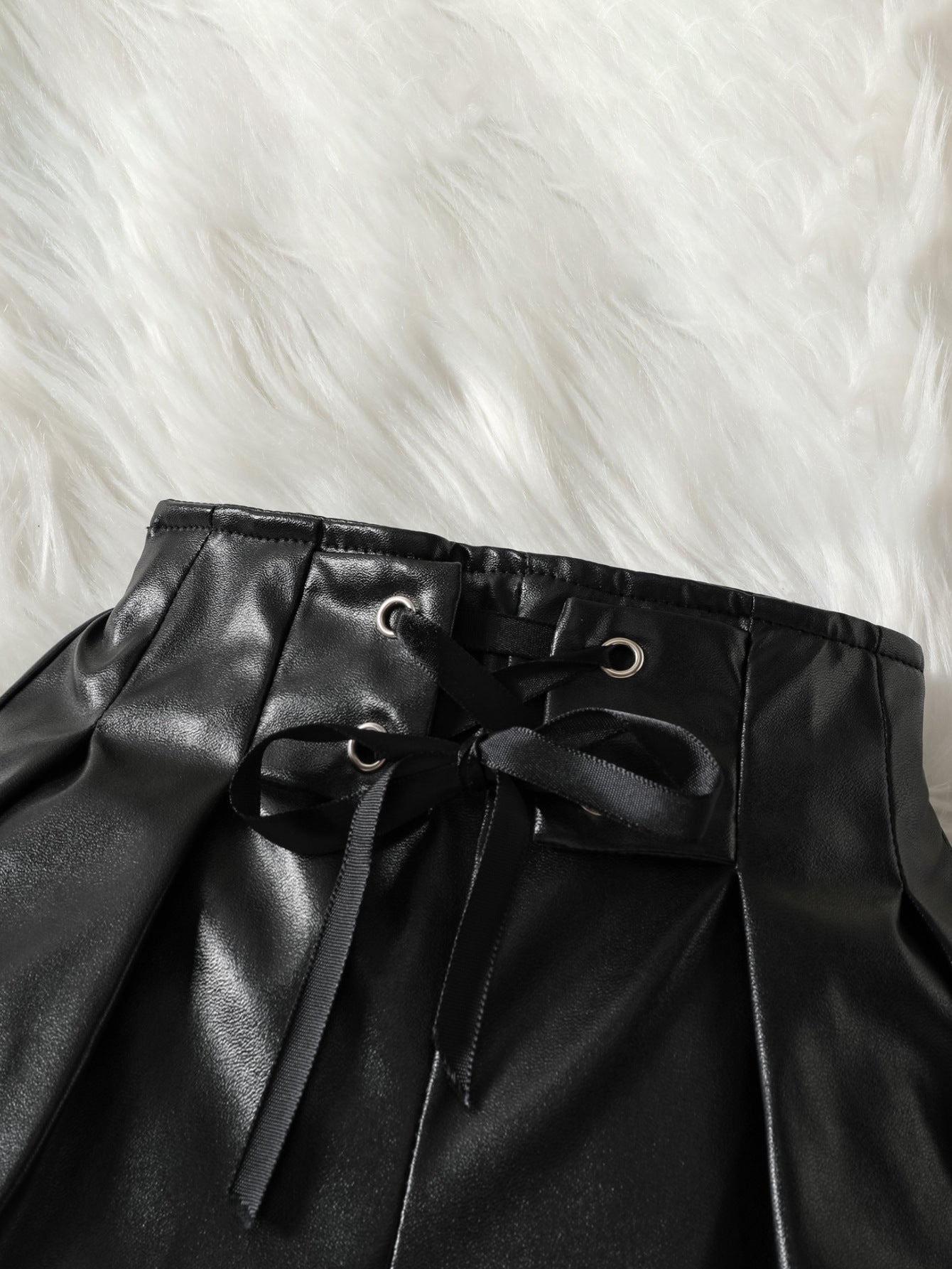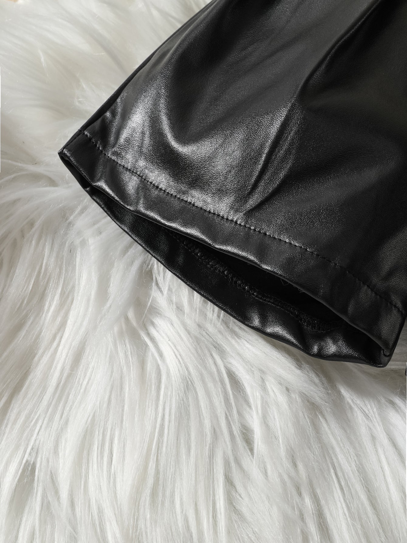 EU120424-48 طقم شورت شكل تنورة قطعتين ( بلوزة + شورت جلد )