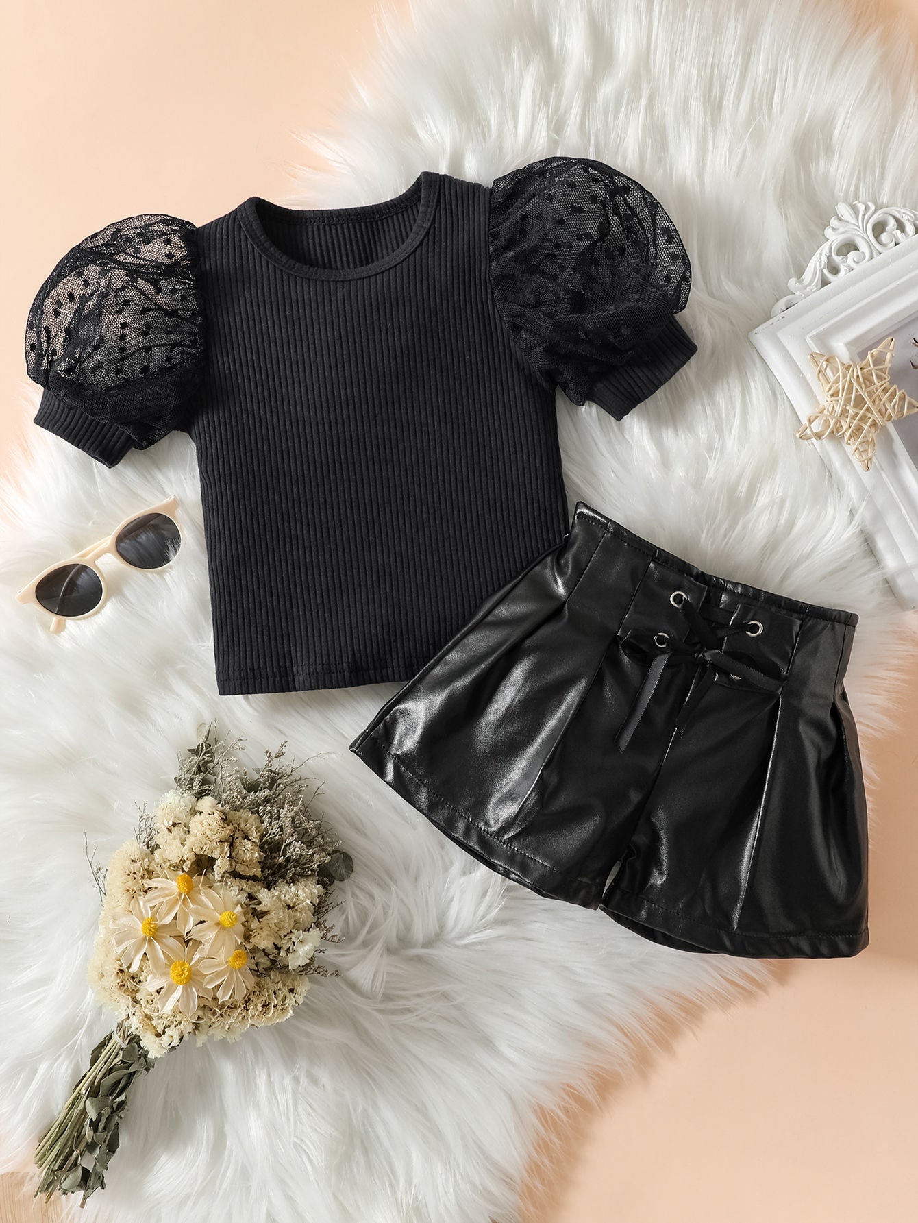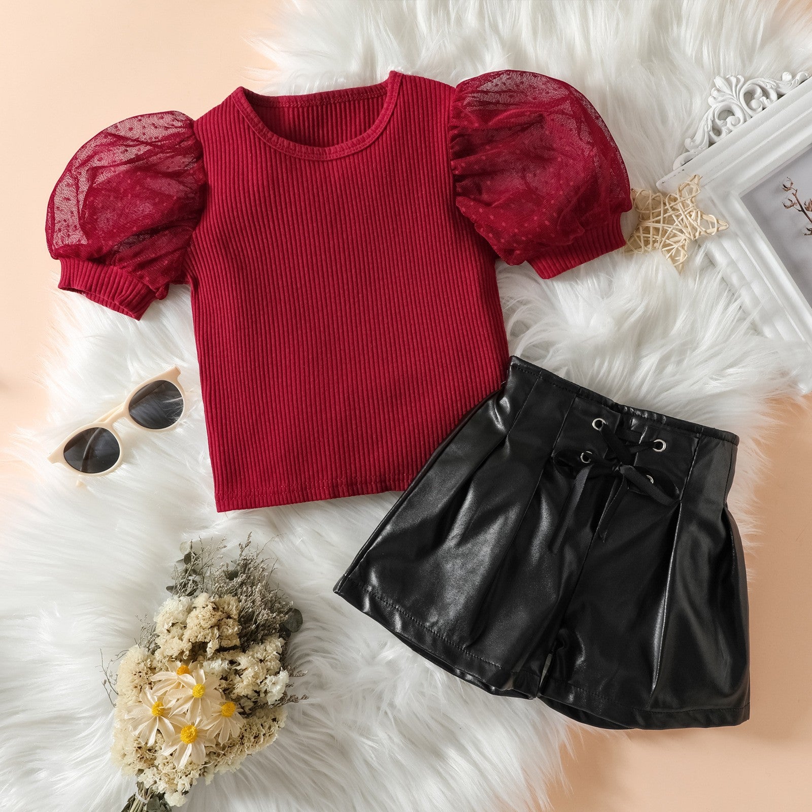 طقم تنورة قطعتين ( بلوزة +شورت جلد )