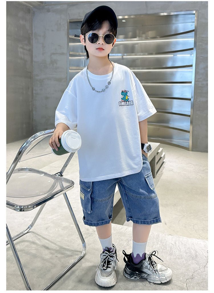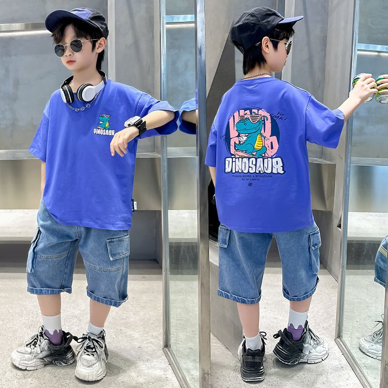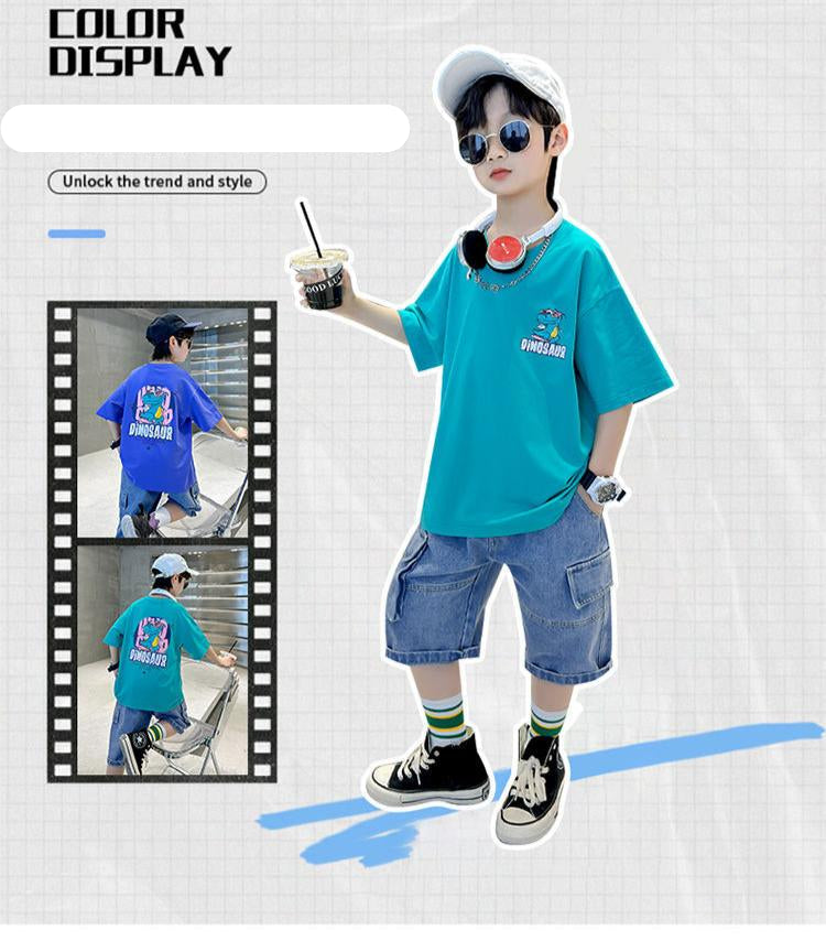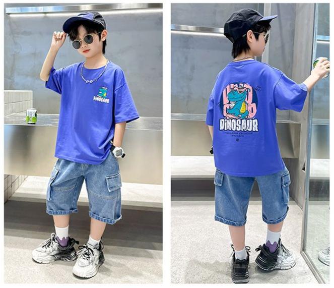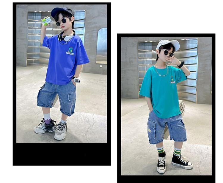 FU14042024-12 طقم ولادي صيفي قطعتين ( بلوزة + بنطلون)