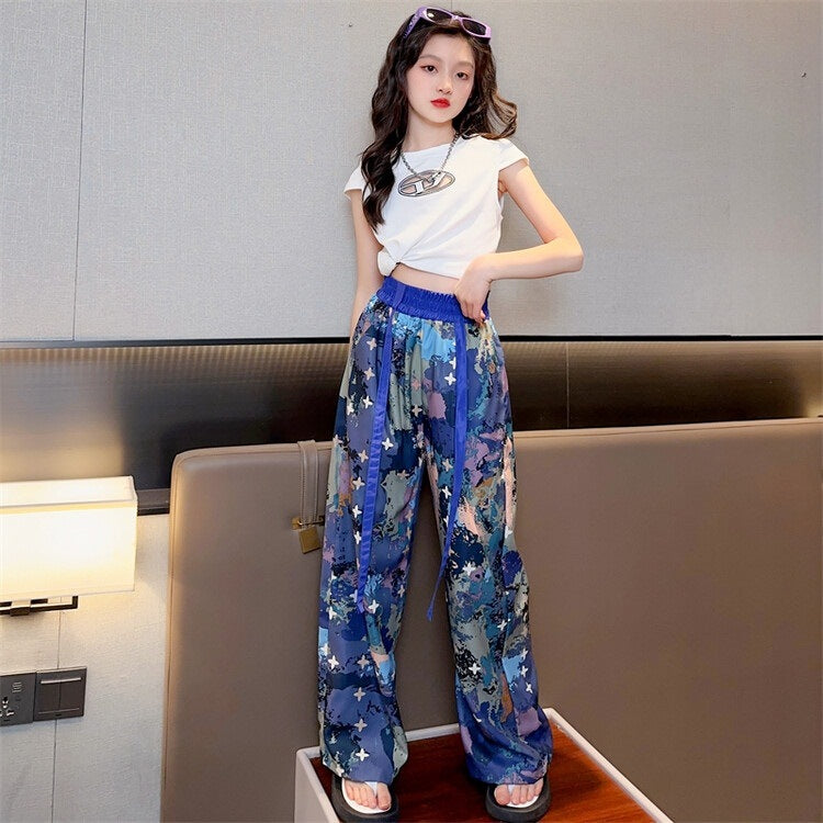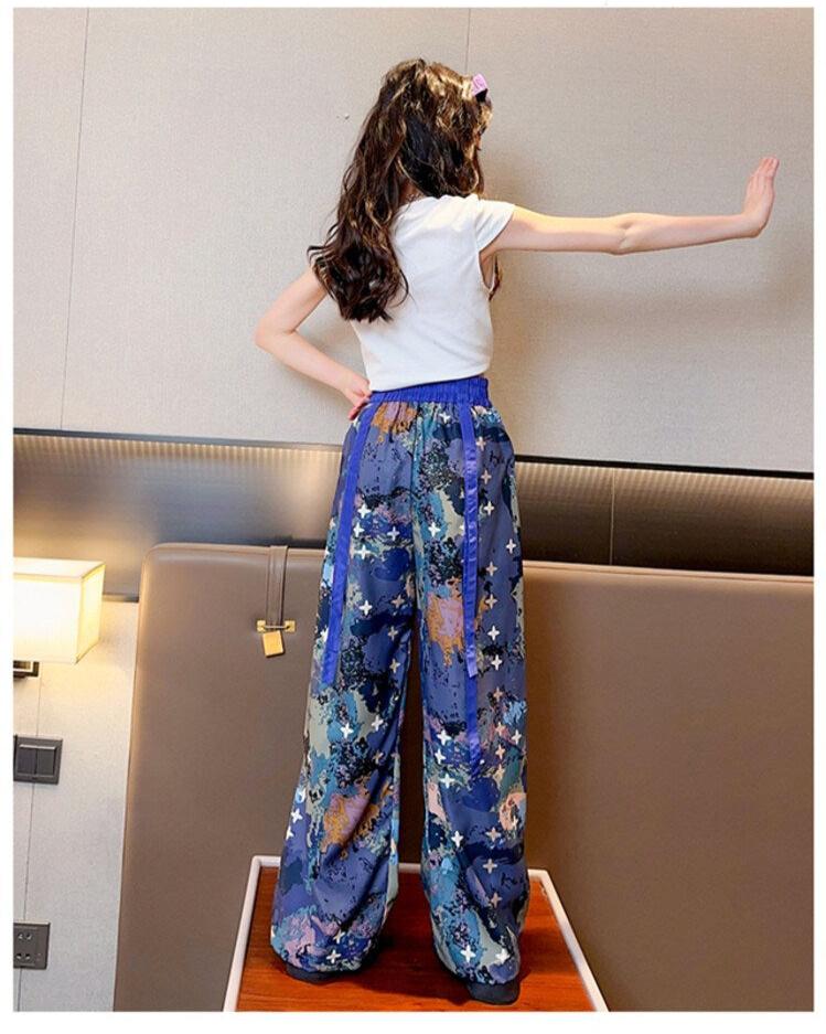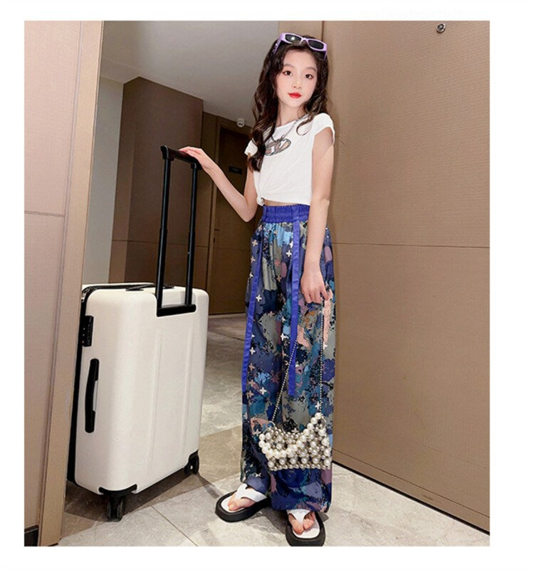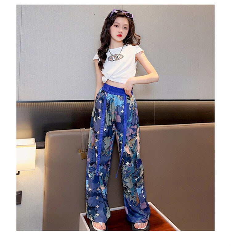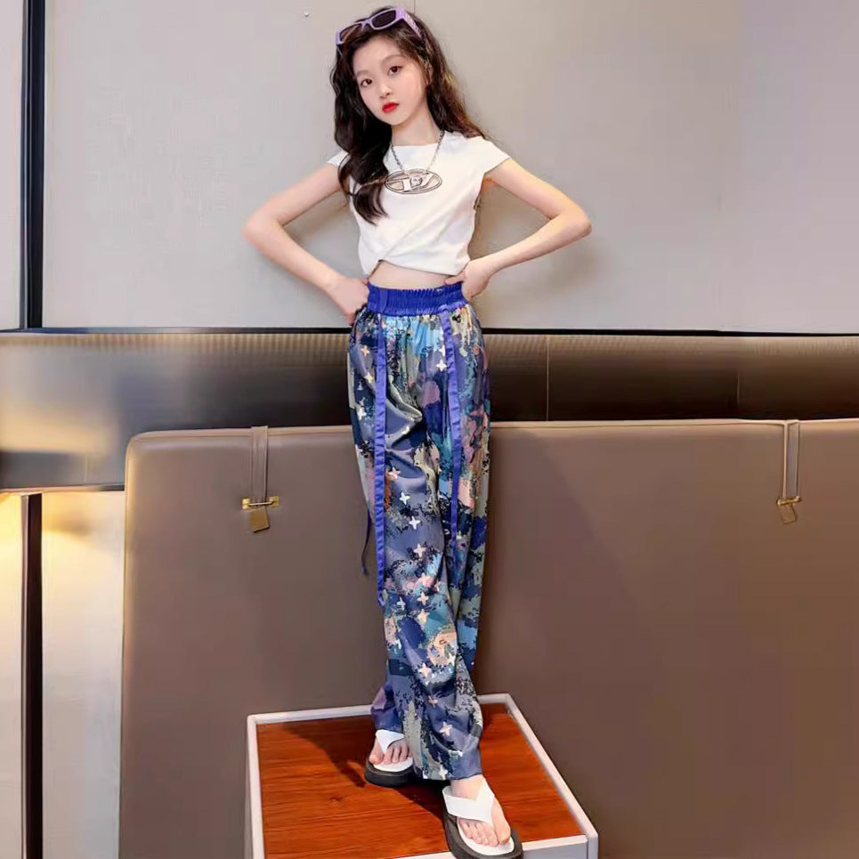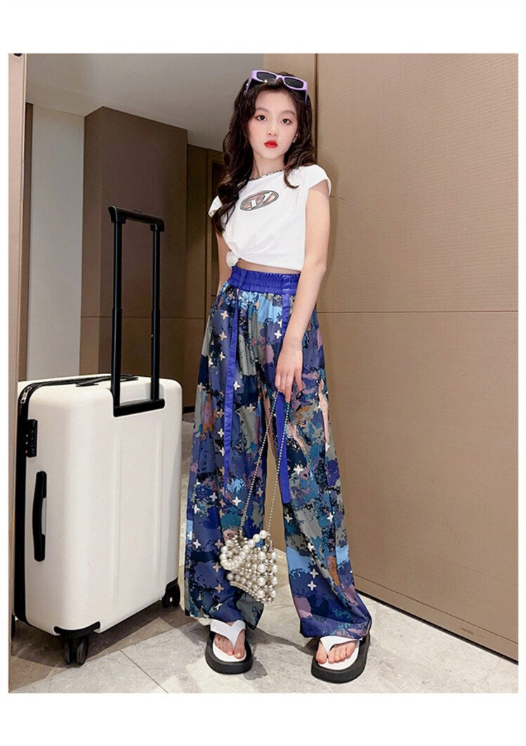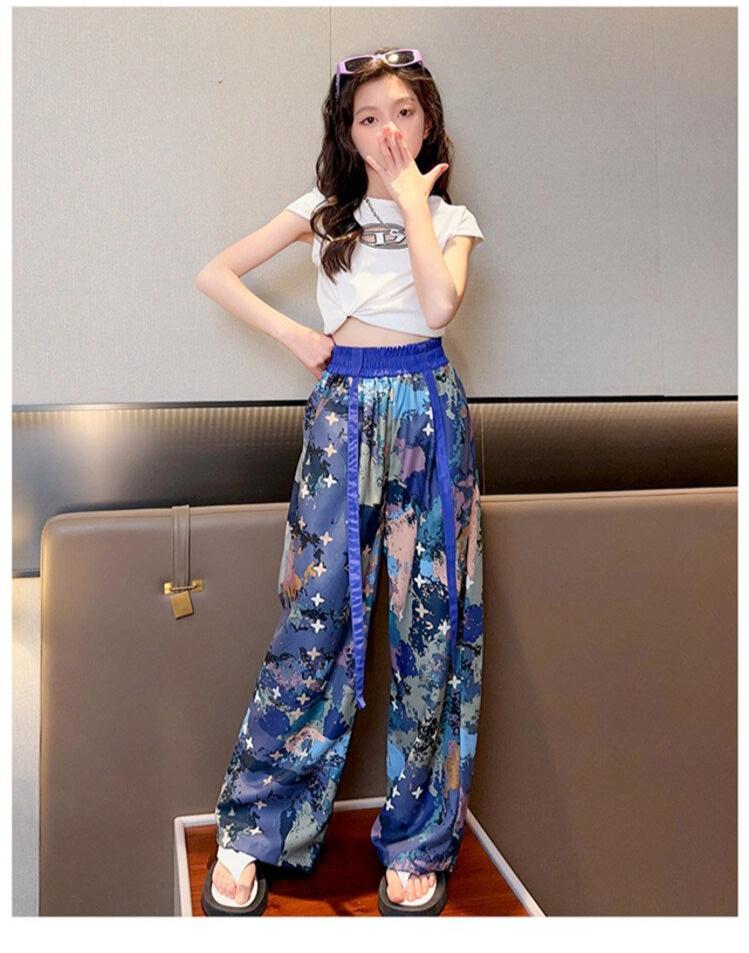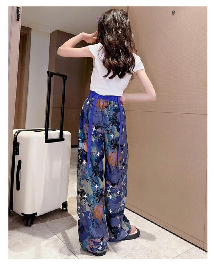 FU14042024-18 طقم بناتي صيفي قطعتين ( بلوزة + بنطلون)