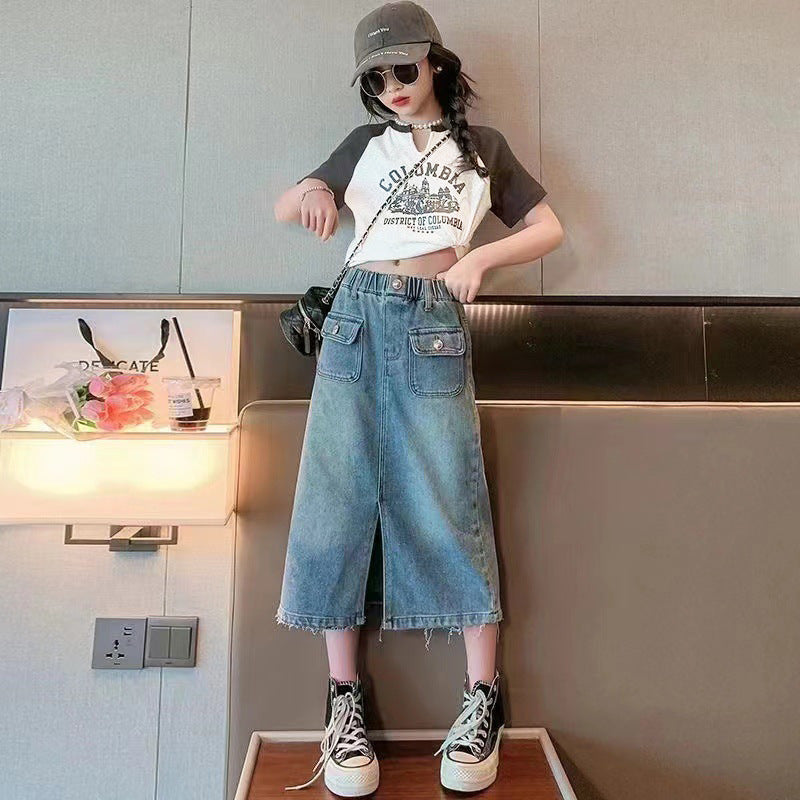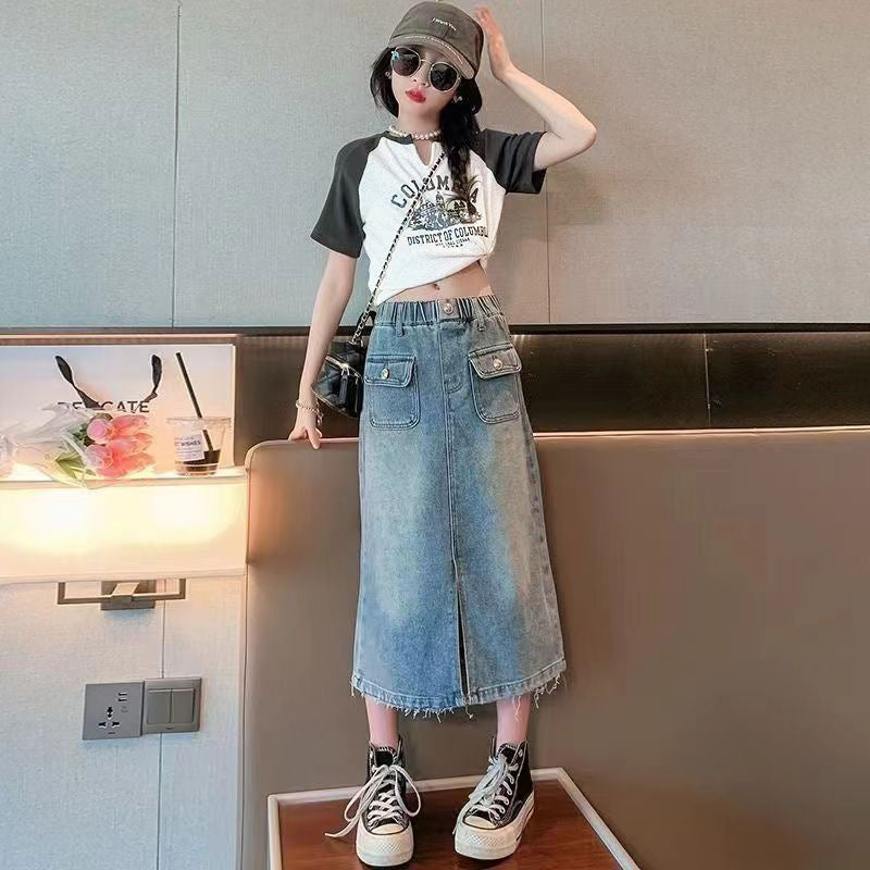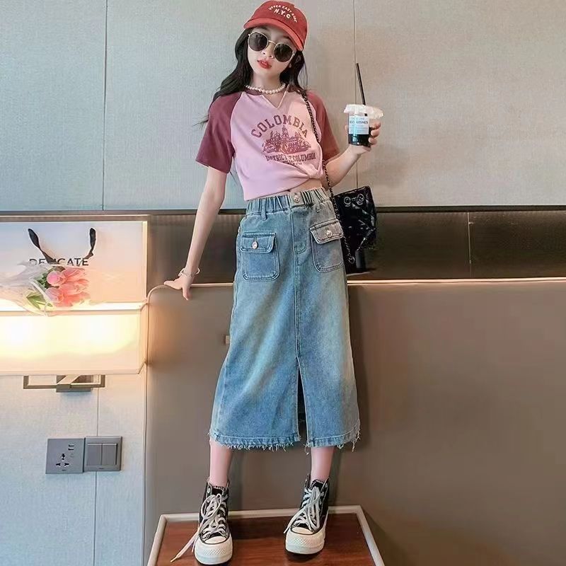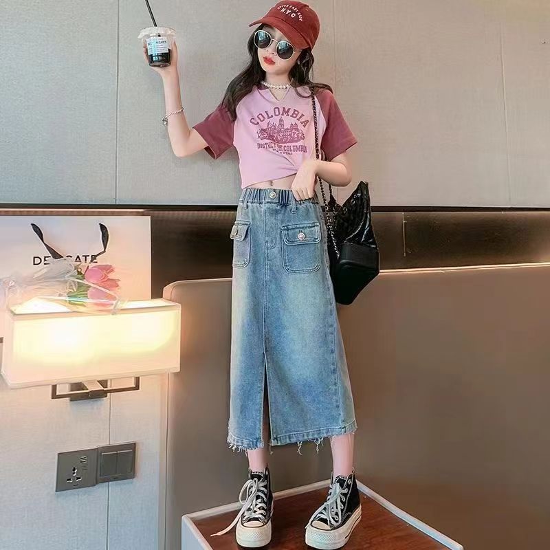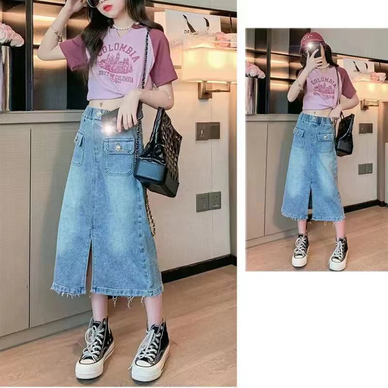 FU14042024-2 طقم بناتي صيفي قطعتين ( بلوزة+ تنورة)