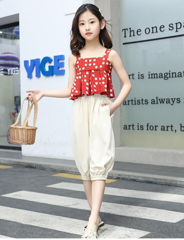 FU14042024-26 طقم بناتي صيفي بارد قطعتين ( بلوزة + بنطلون)