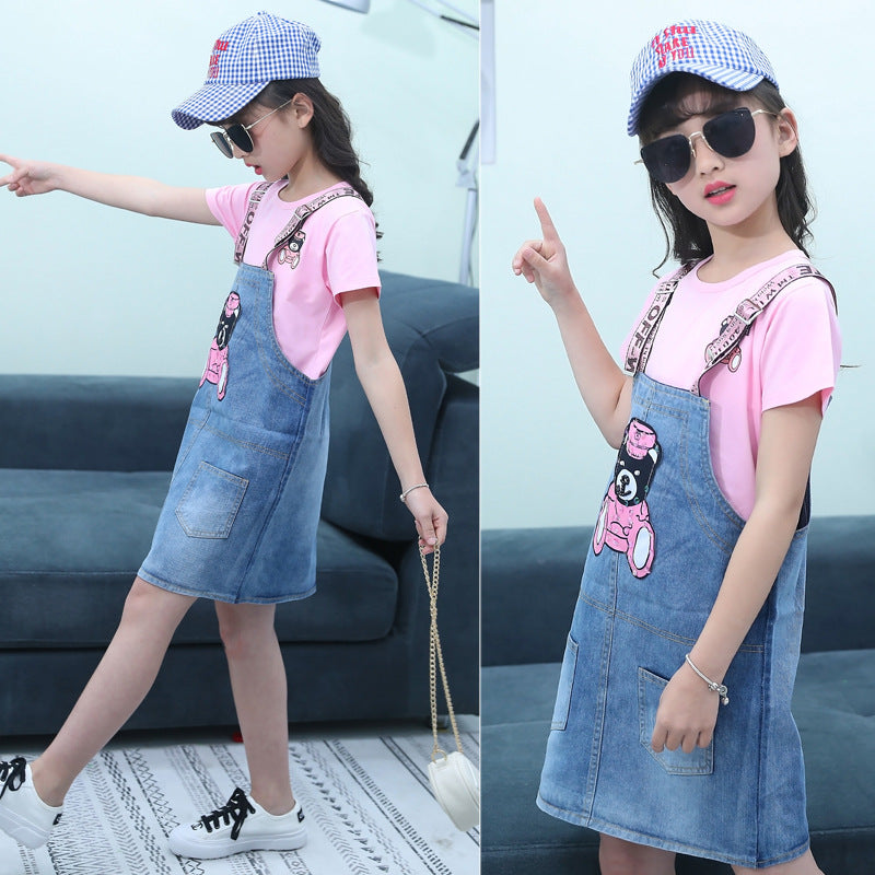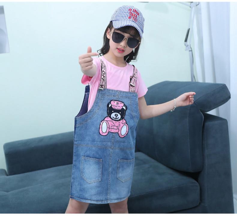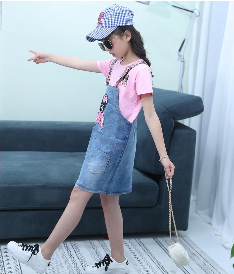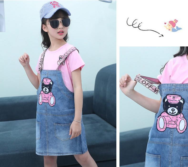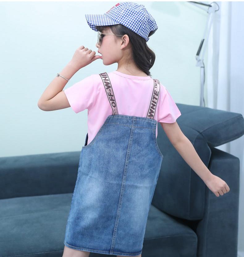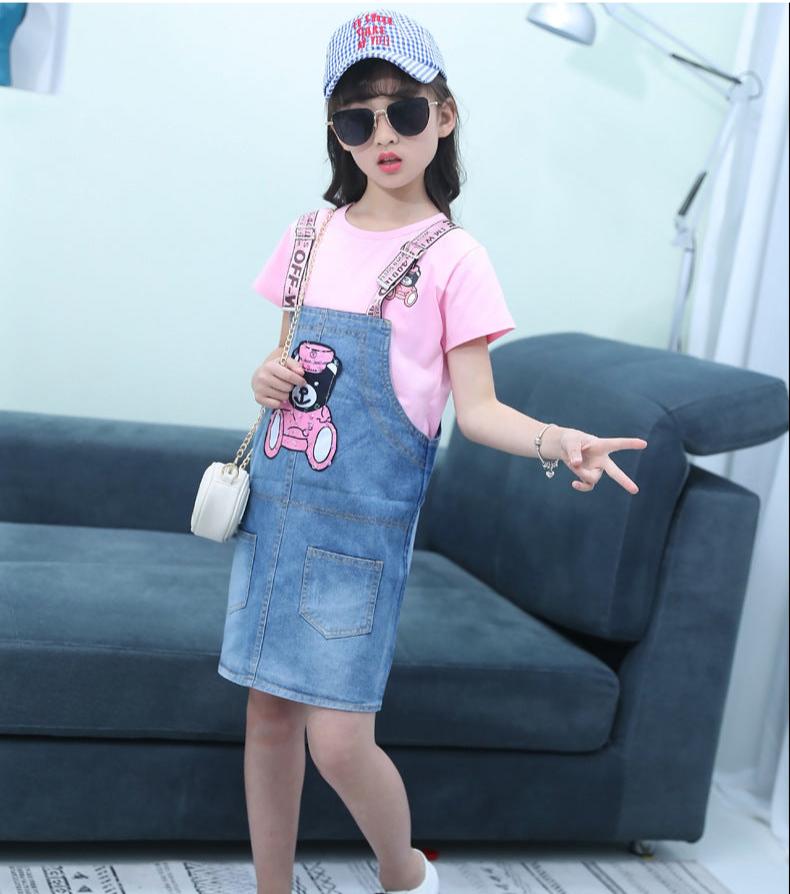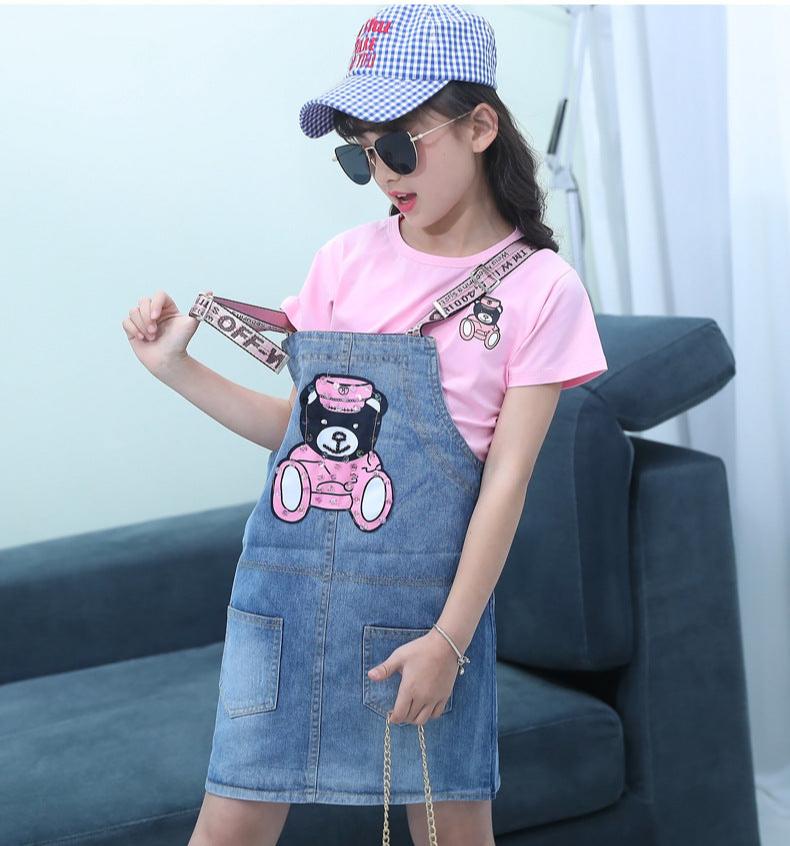 فستان بناتي قطعتين ( جينز + بلوزة قطنية )