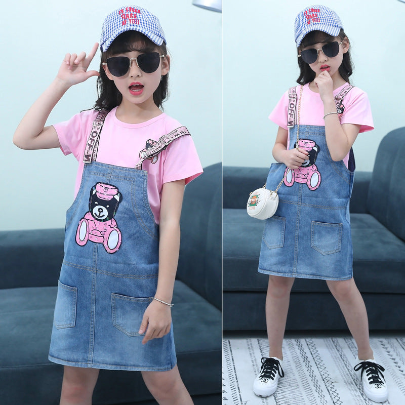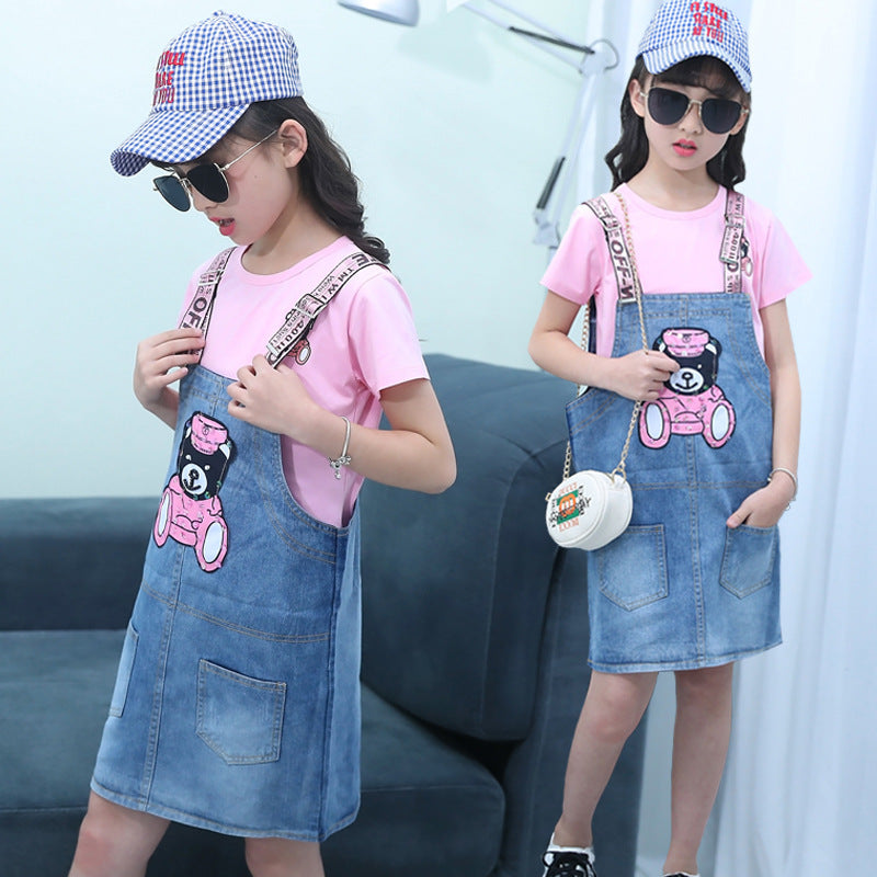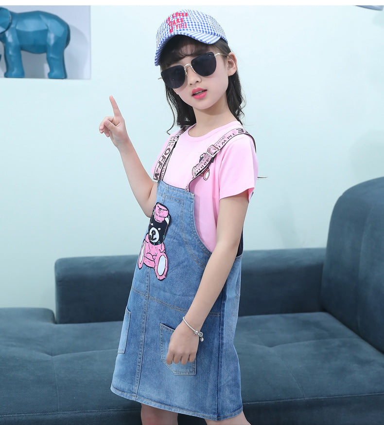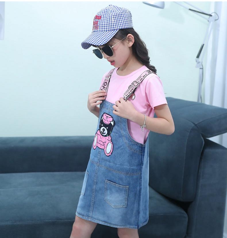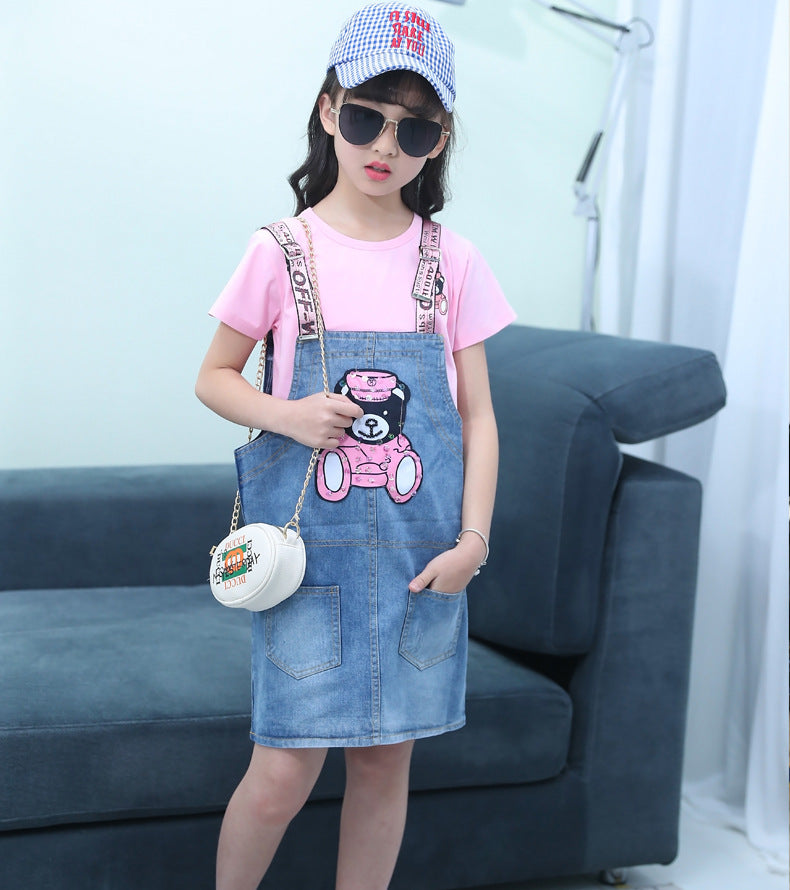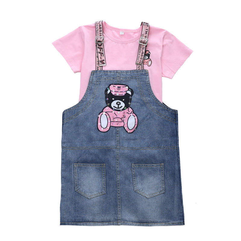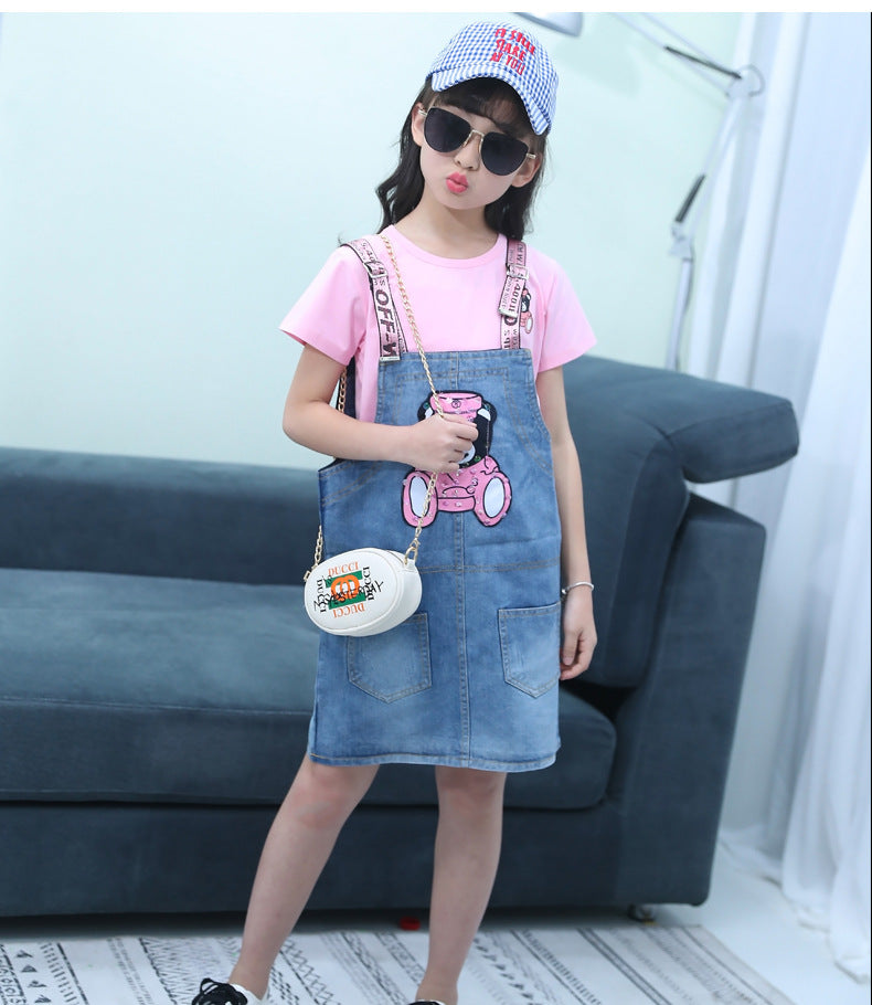 فستان بناتي قطعتين ( جينز + بلوزة قطنية )