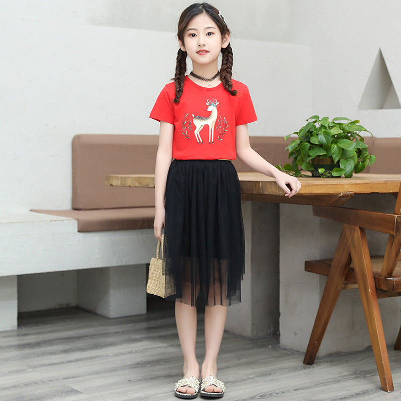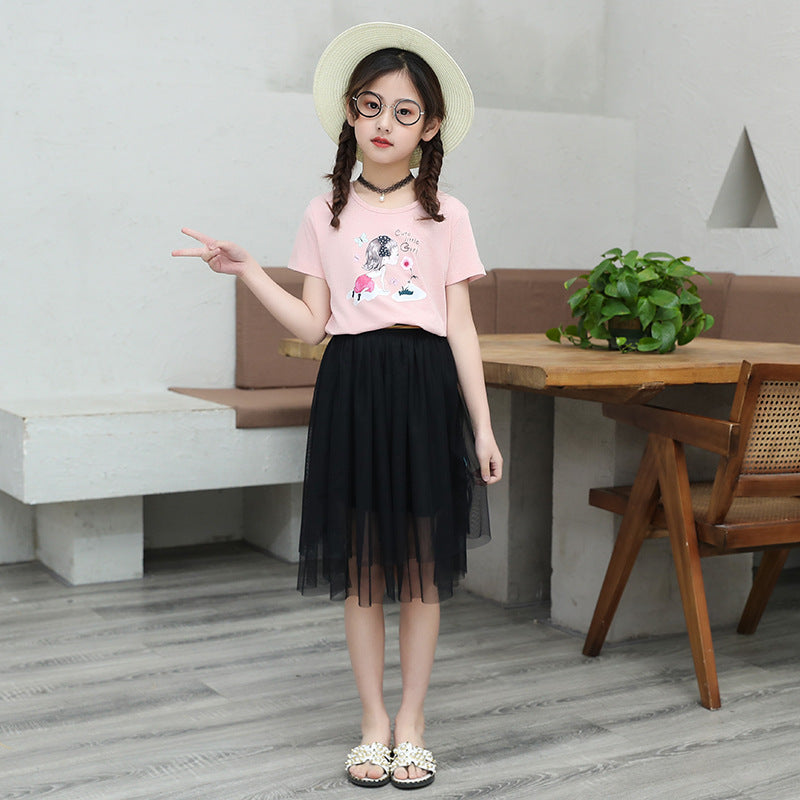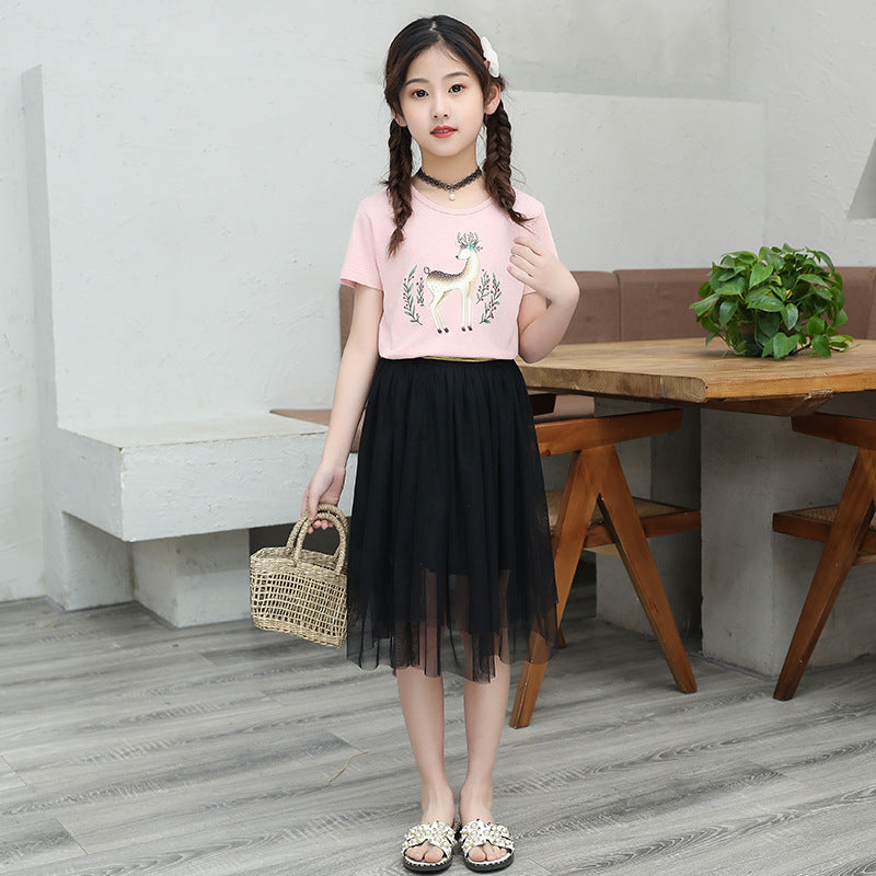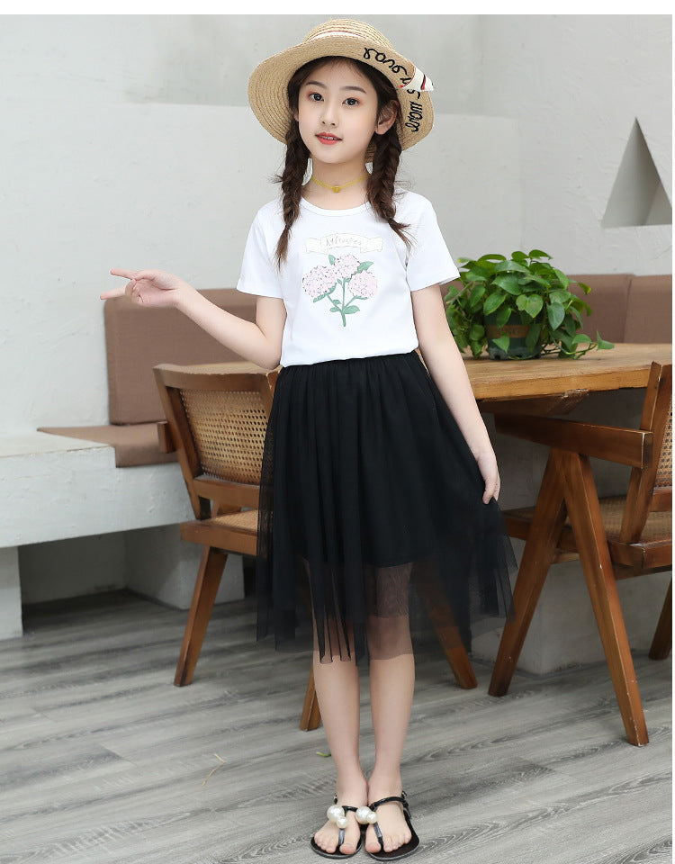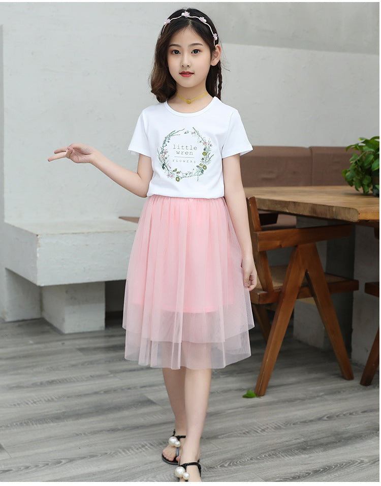 طقم بناتي قطعتين ( بلوزة قطنية + تنورة )