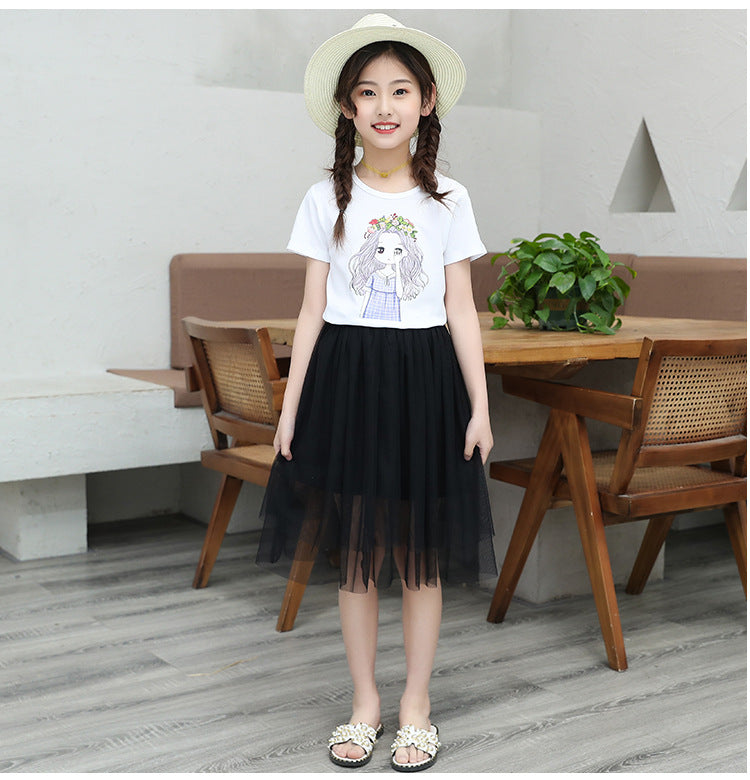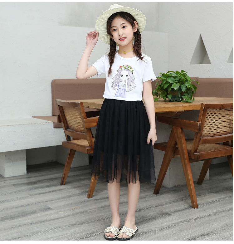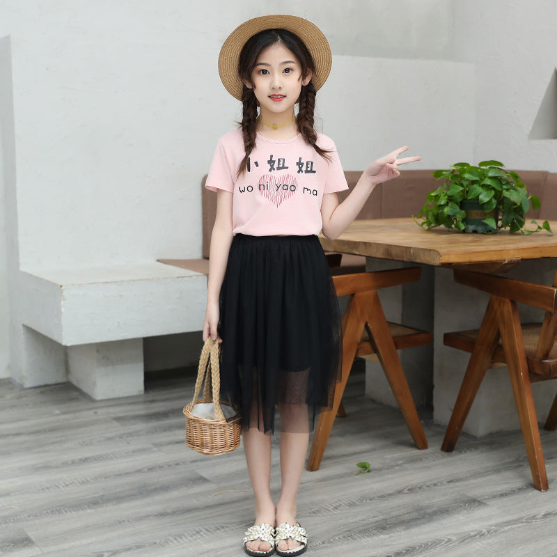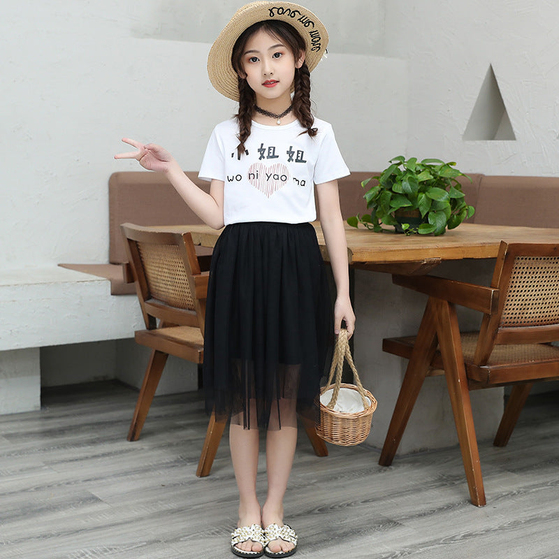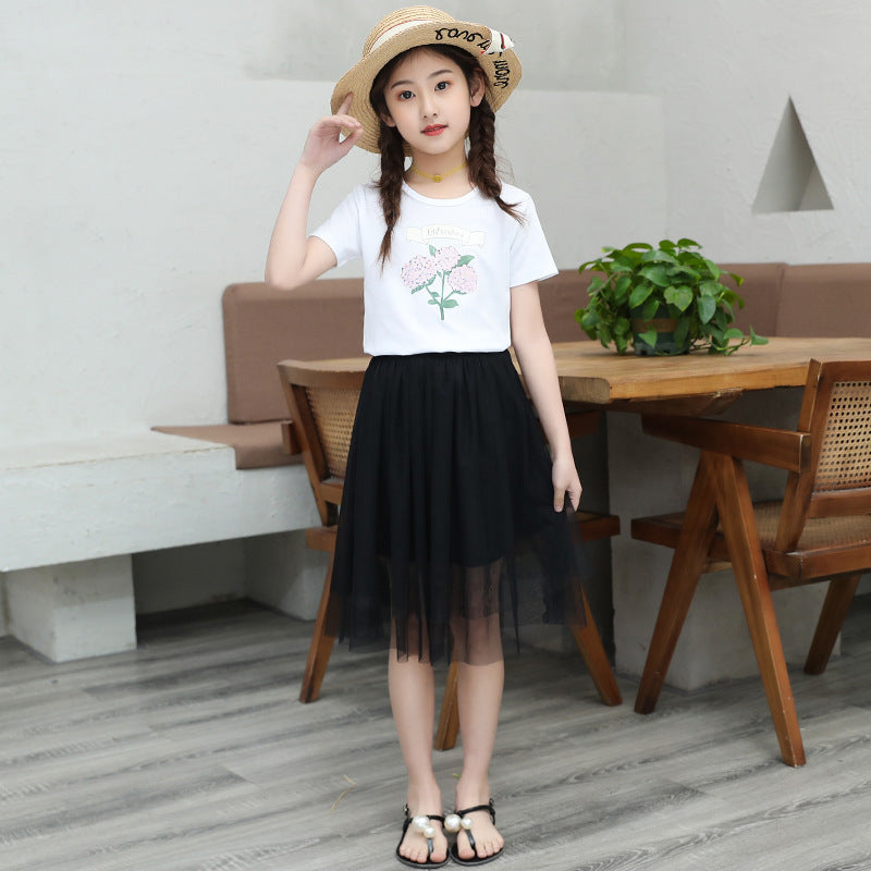 طقم بناتي قطعتين ( بلوزة قطنية + تنورة )