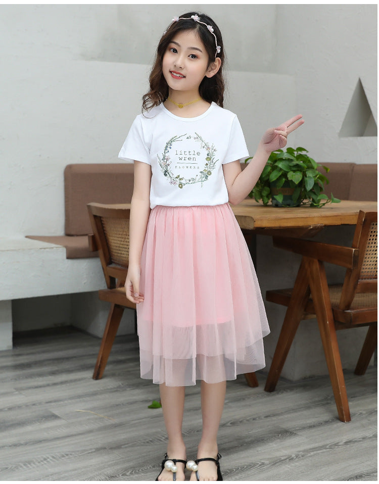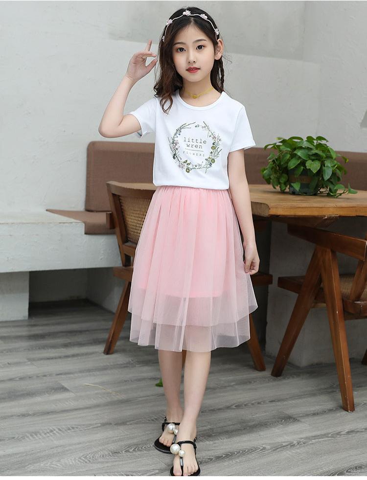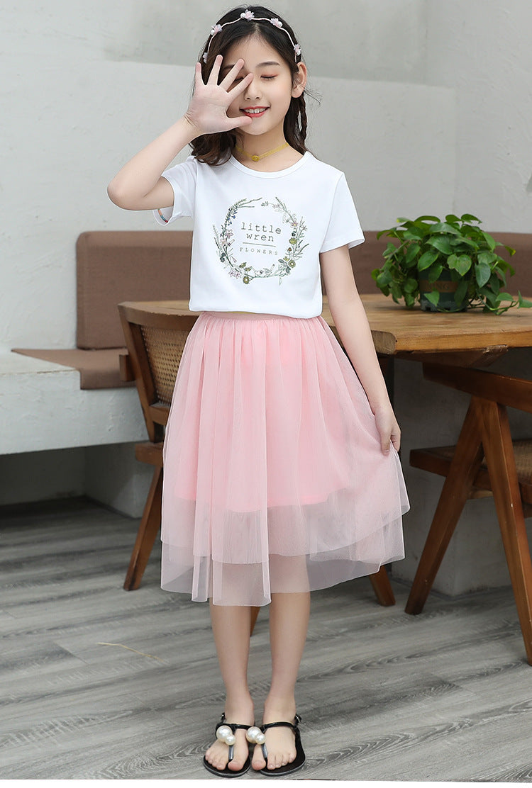 FU14042024-33 طقم بناتي قطعتين ( بلوزة قطنية + تنورة )