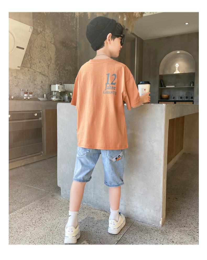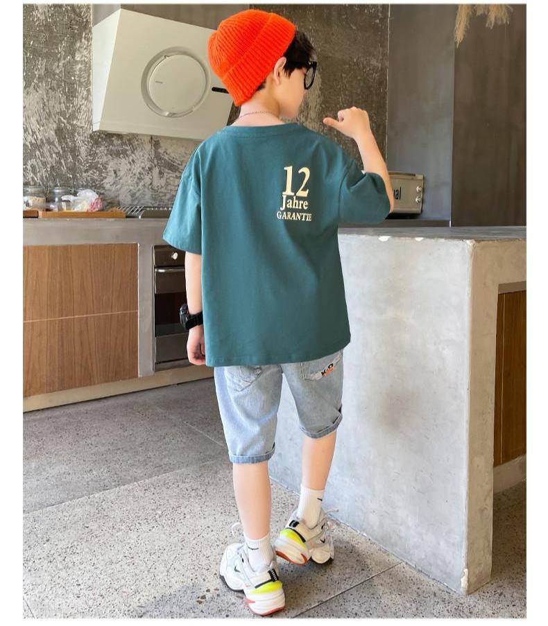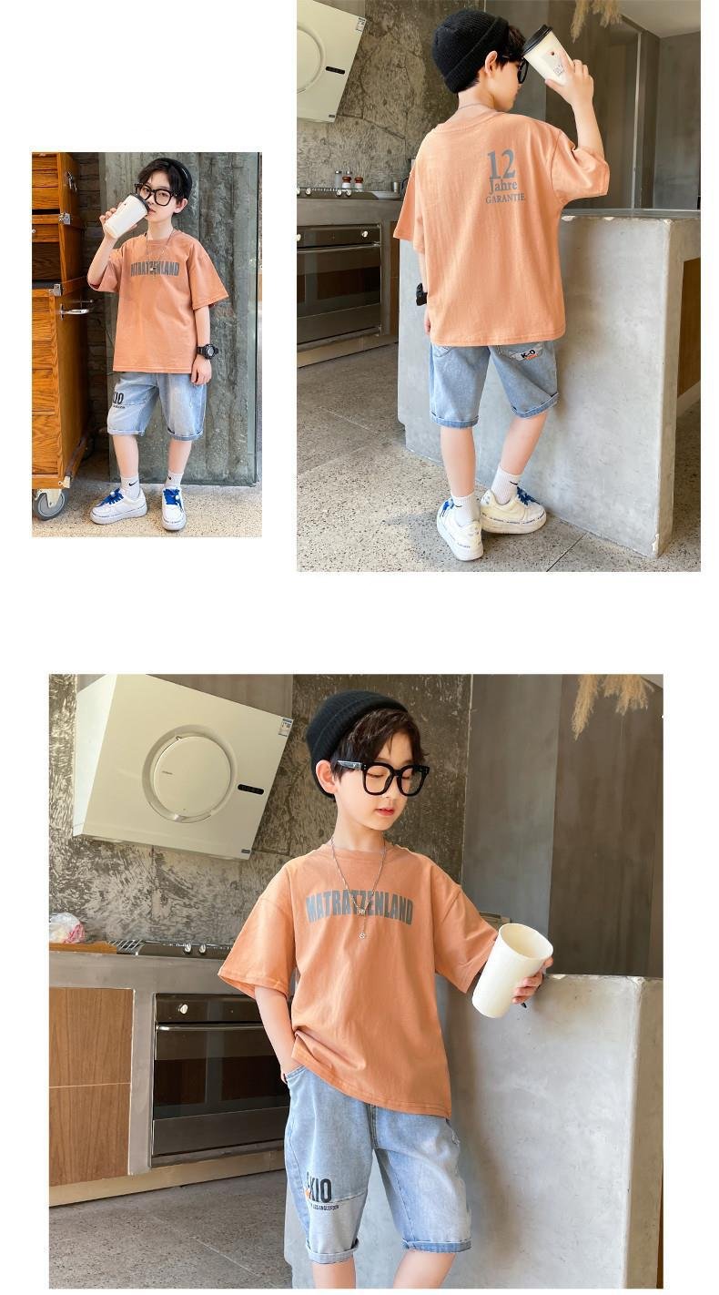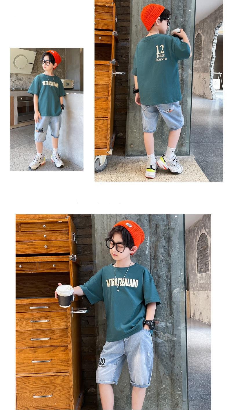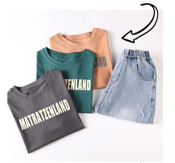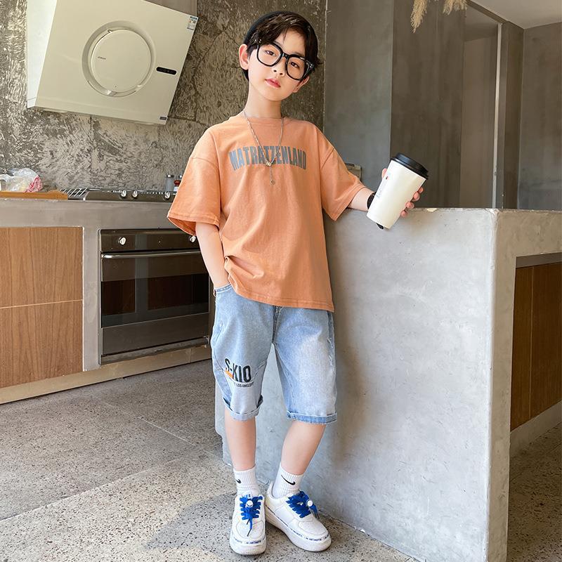 FU14042024-37 طقم ولادي صيفي قطعتين ( بلوز قطنية + بنطلون جينز)
