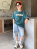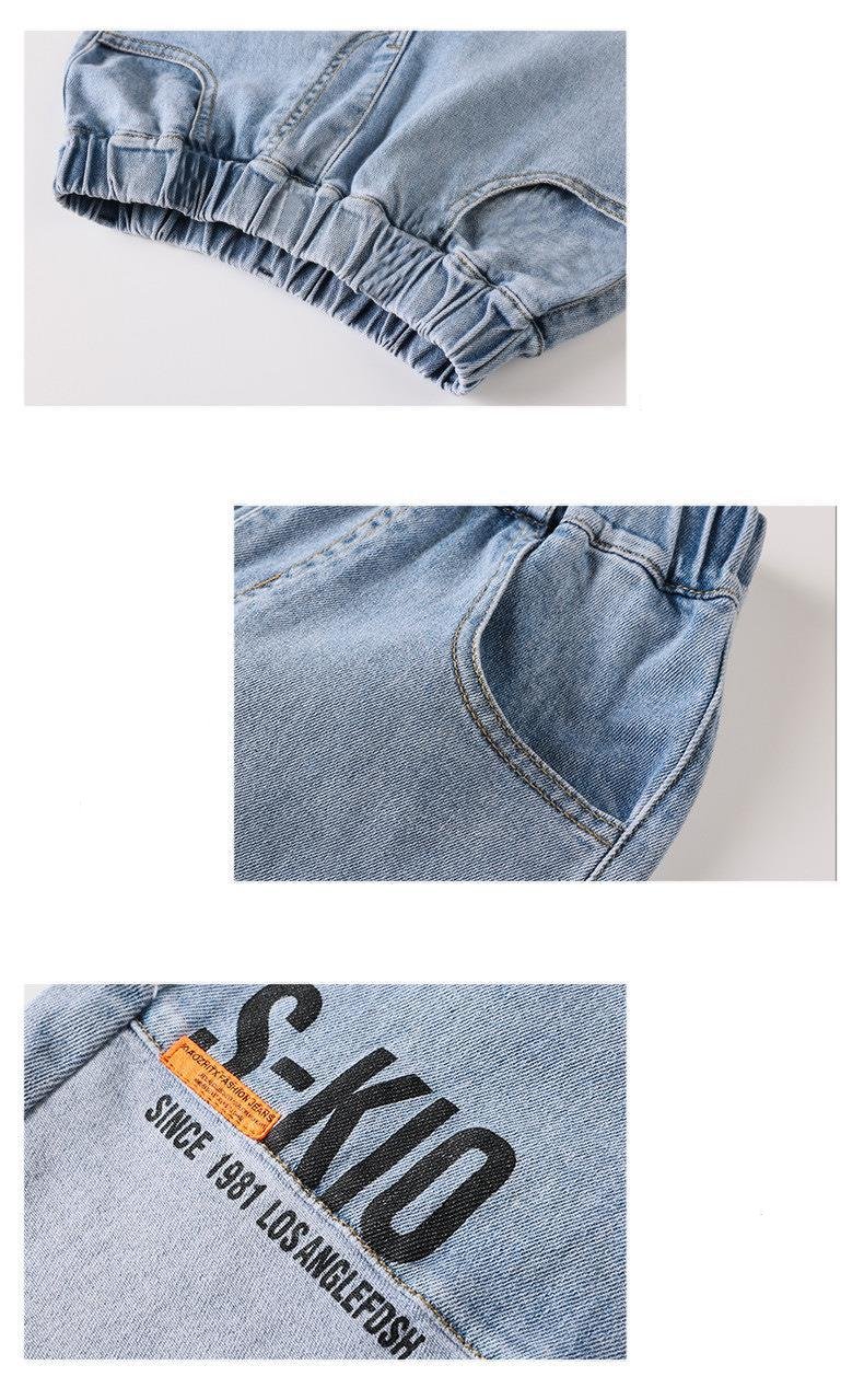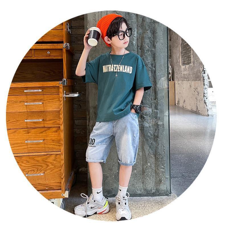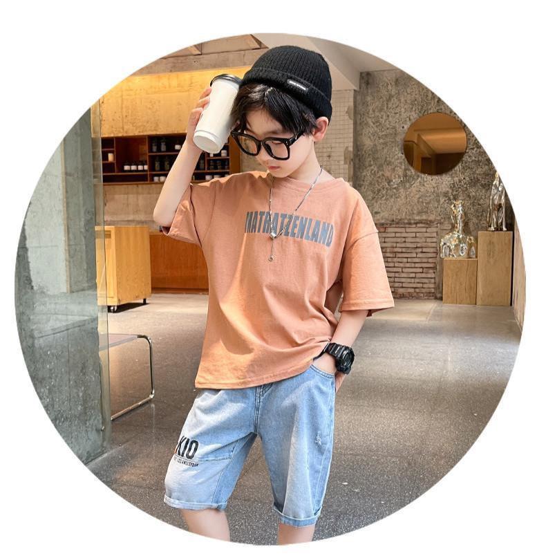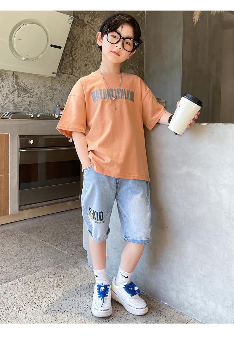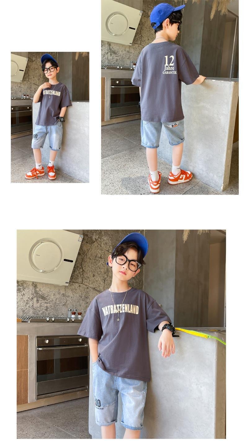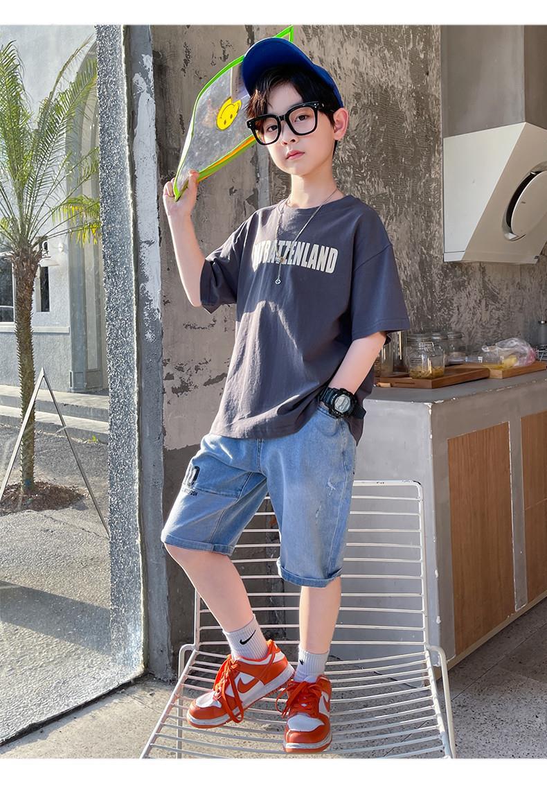 FU14042024-37 طقم ولادي صيفي قطعتين ( بلوز قطنية + بنطلون جينز)