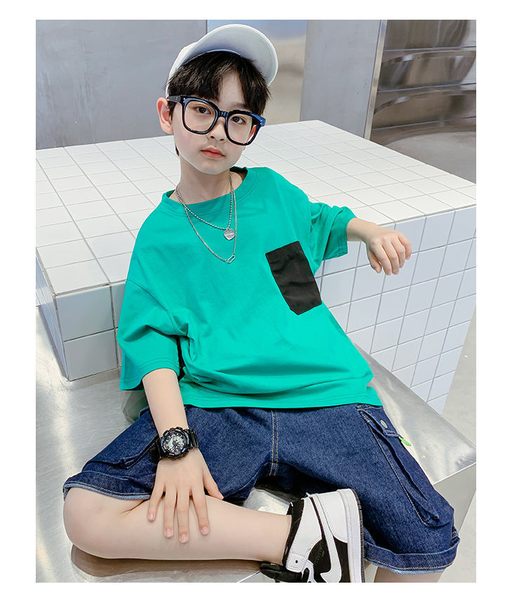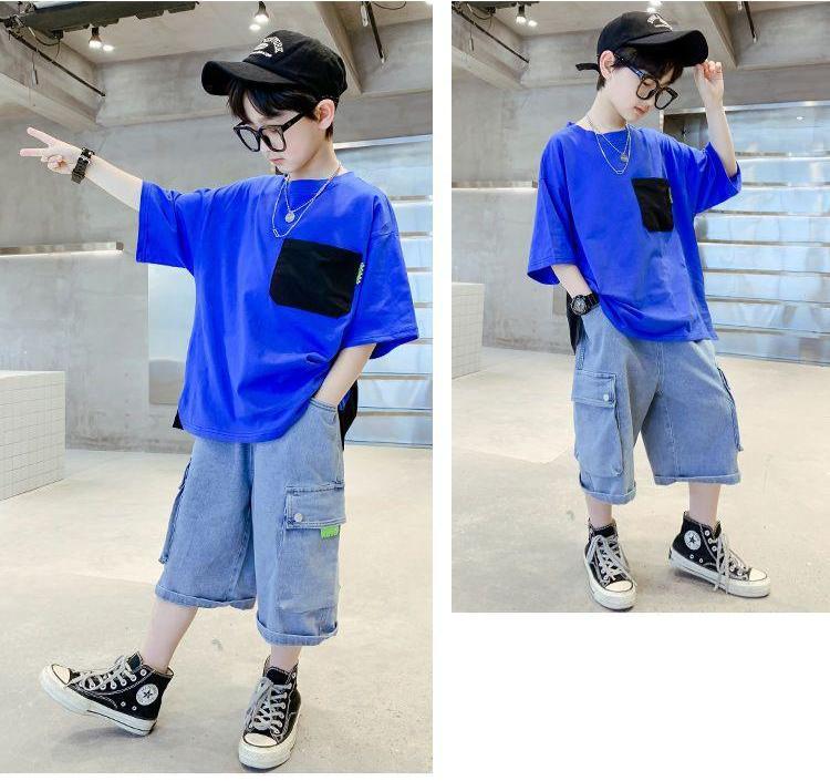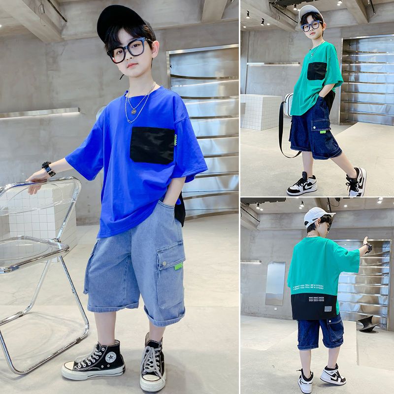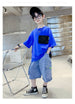 طقم جينز ولادي قطعتين ( بلوزة قطنية + بنطلون جينز )