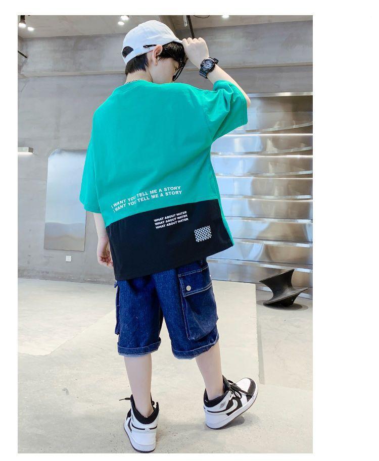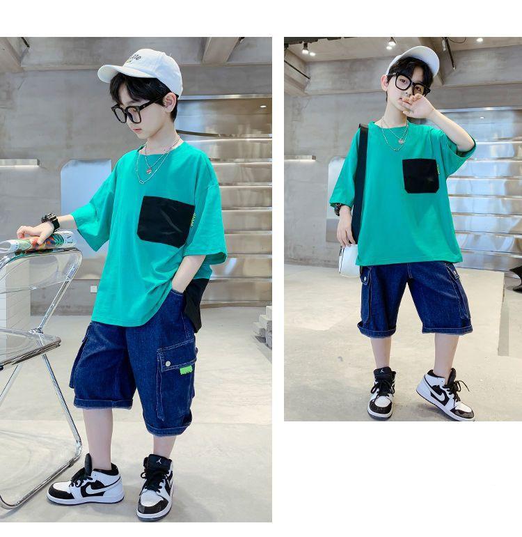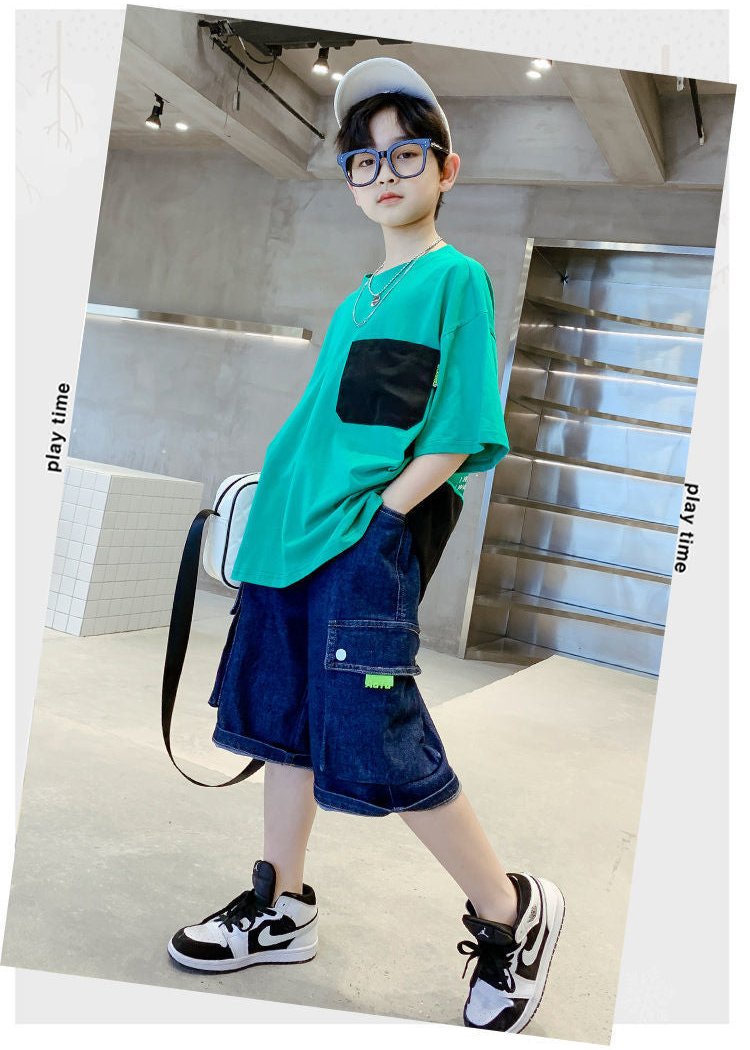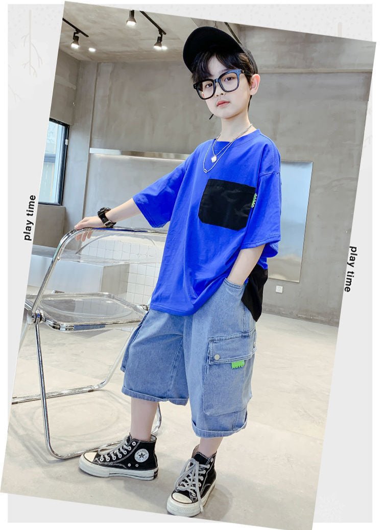 FU14042024-38 طقم جينز ولادي قطعتين ( بلوزة قطنية + بنطلون جينز )