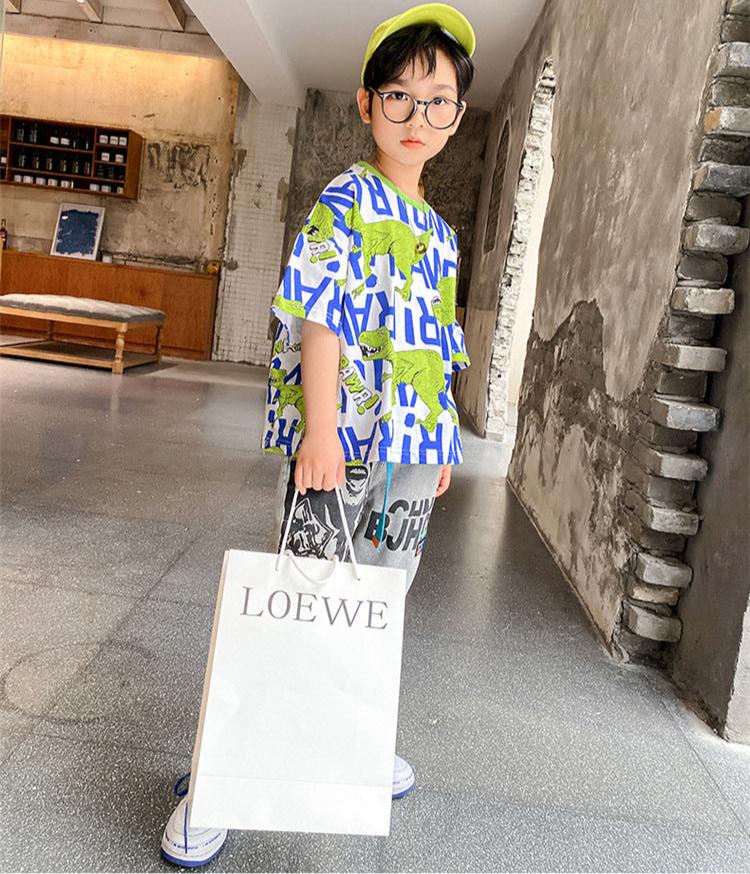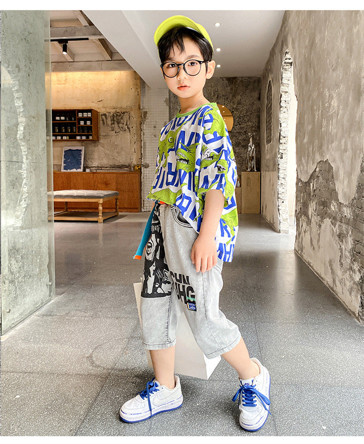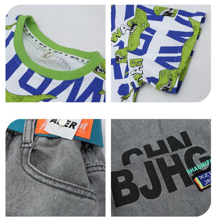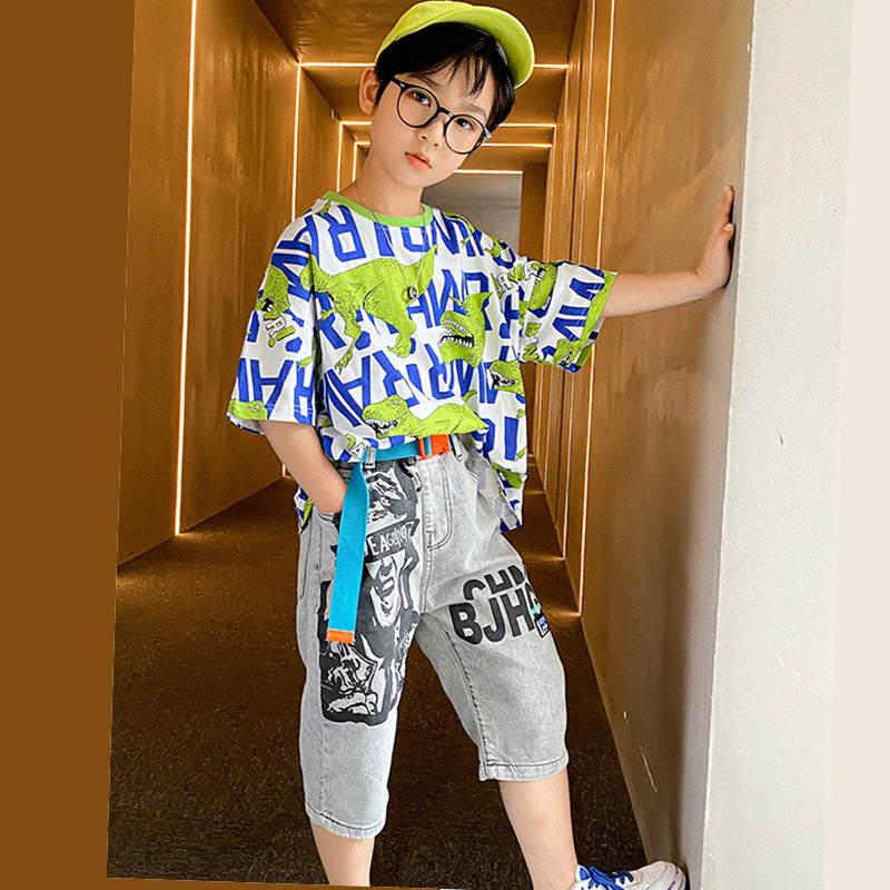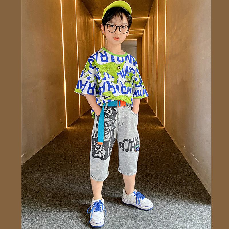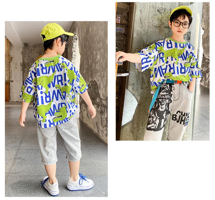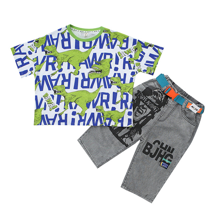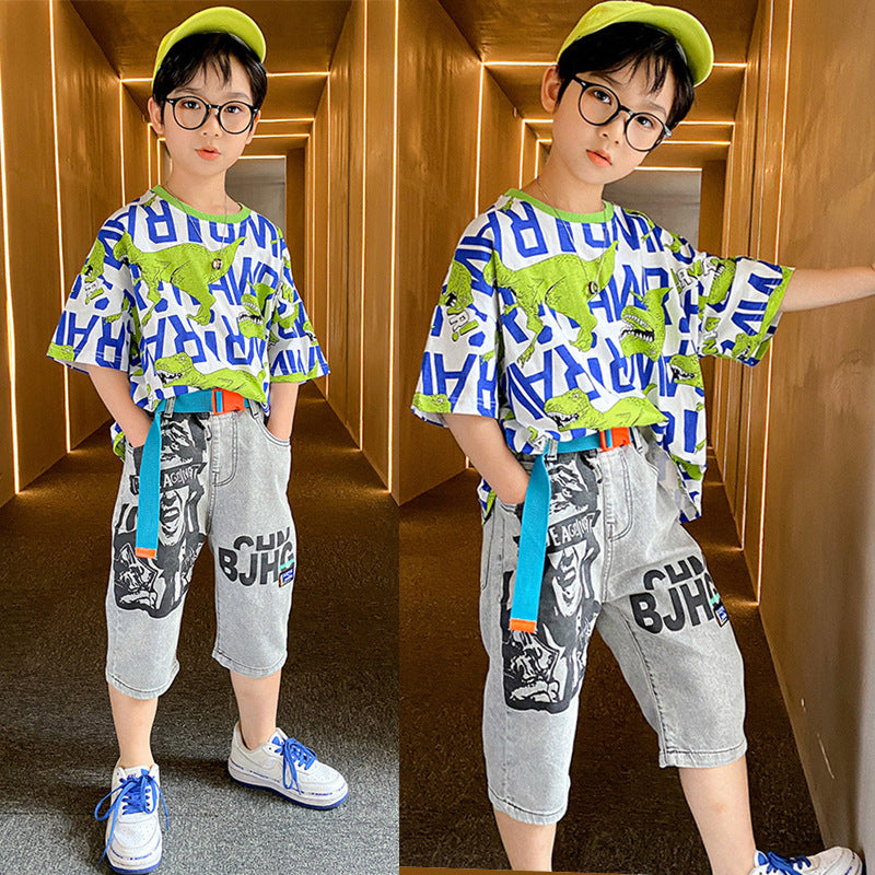 FU14042024-44 طقم ولادي صيفي ( بلوزة قطنية + بنطلون جينز + حزام وسط)