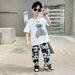 FU14042024-58 طقم صيف بارد قطعتين ( بلوزة + بنطلون)