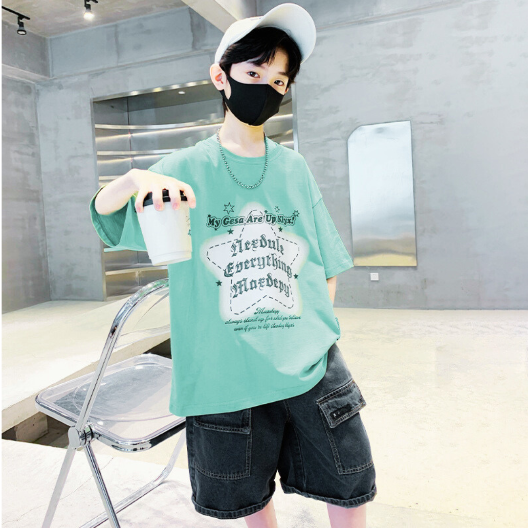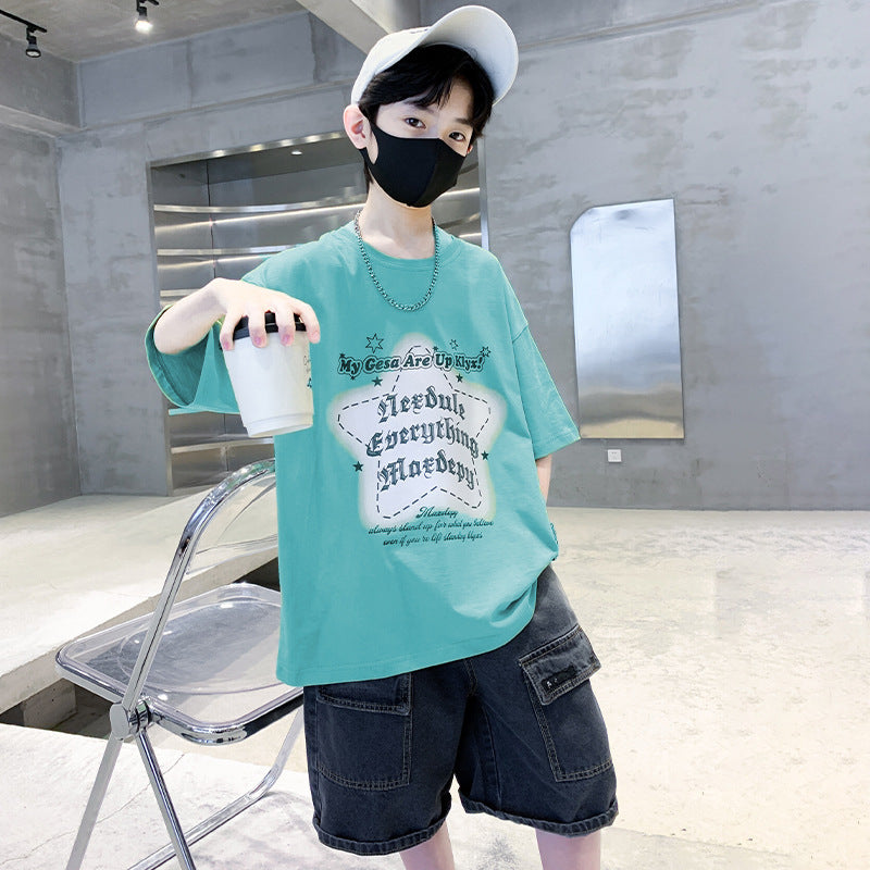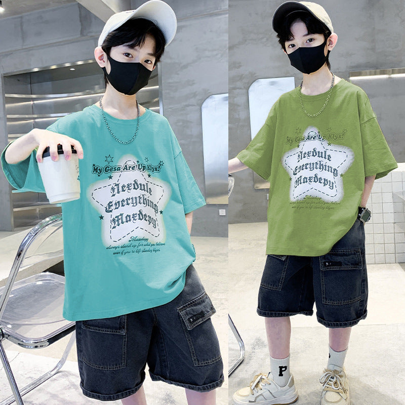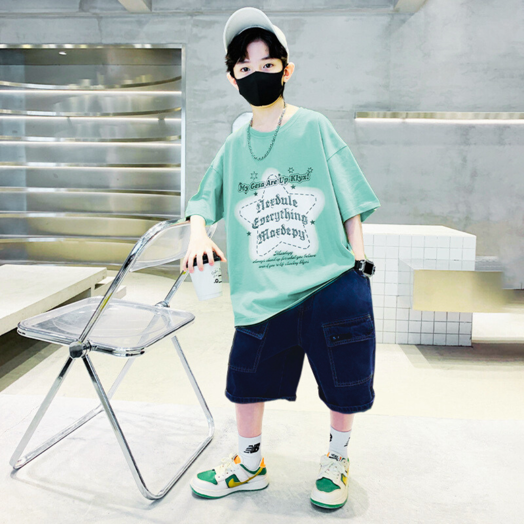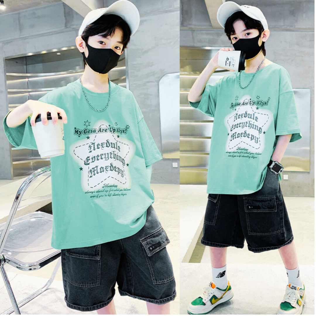 طقم ولادي قطعتين صيفي ( بلوزة قطنية + بنطلون جينز )