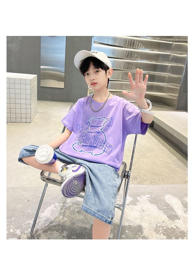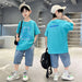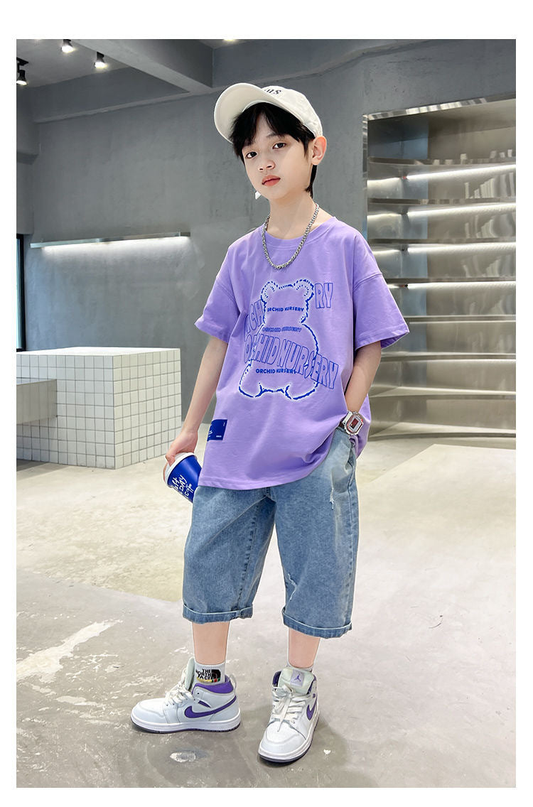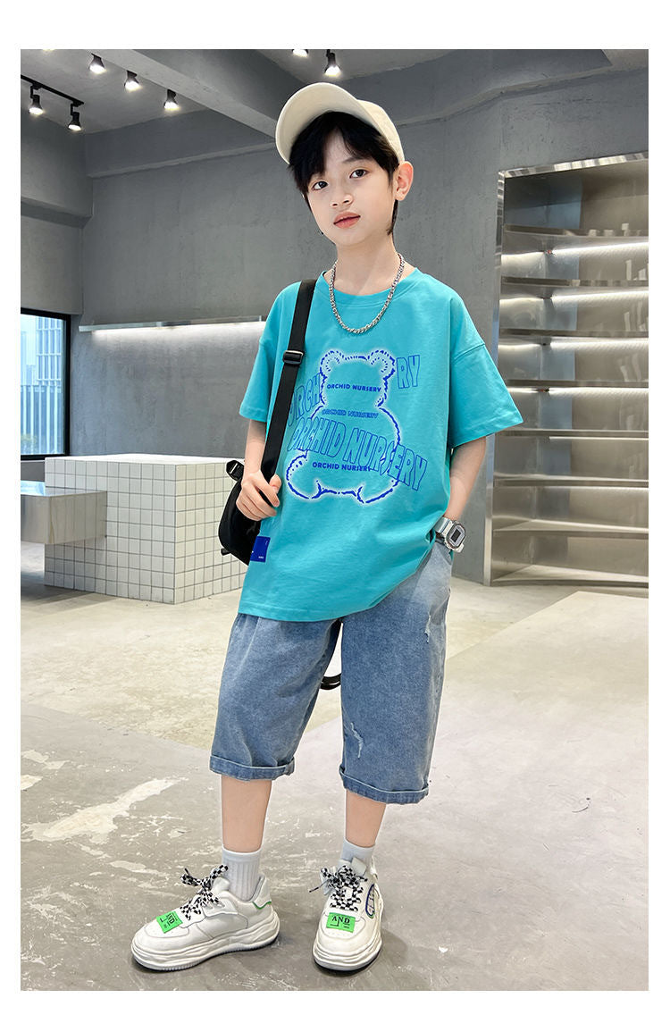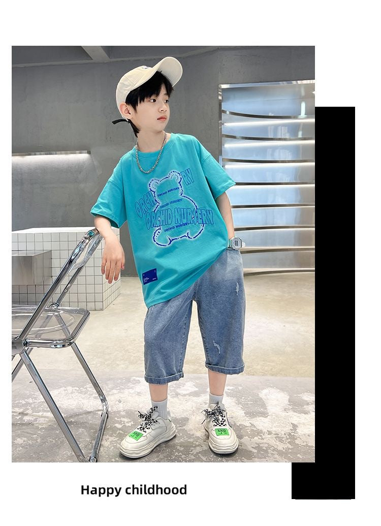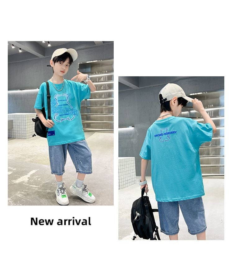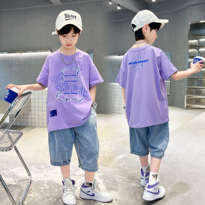 FU14042024-63 طقم ولادي صيفي قطعتين ( بلوزة قطنية + بنطلون جينز )