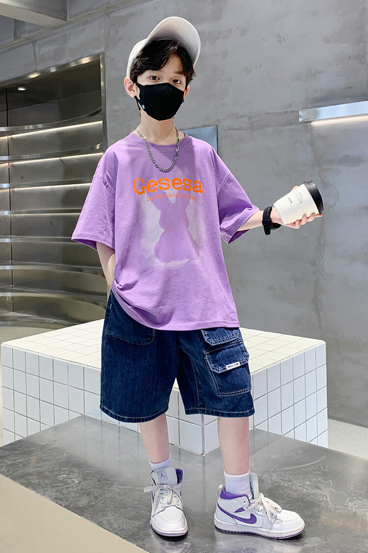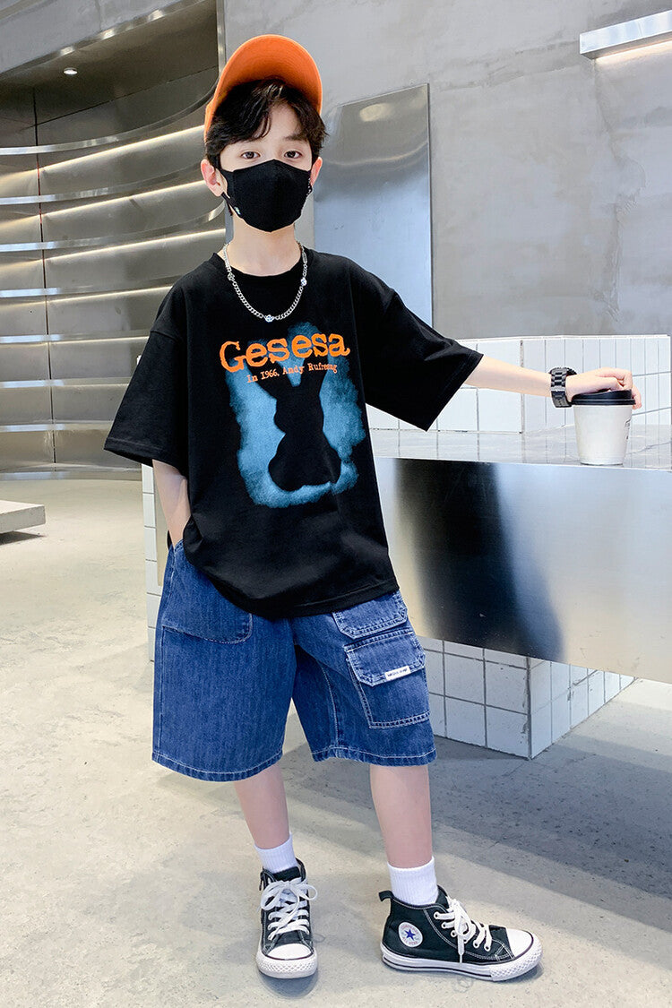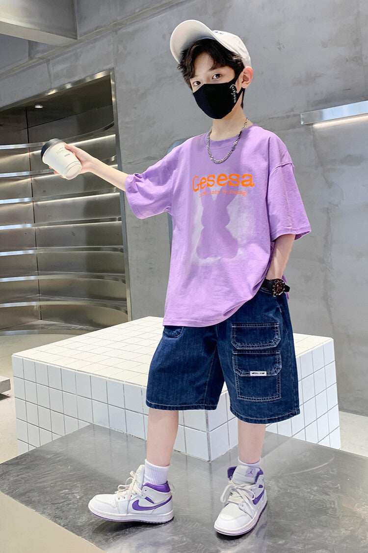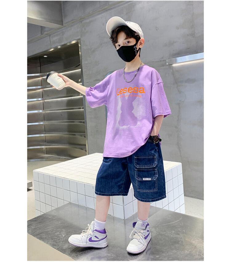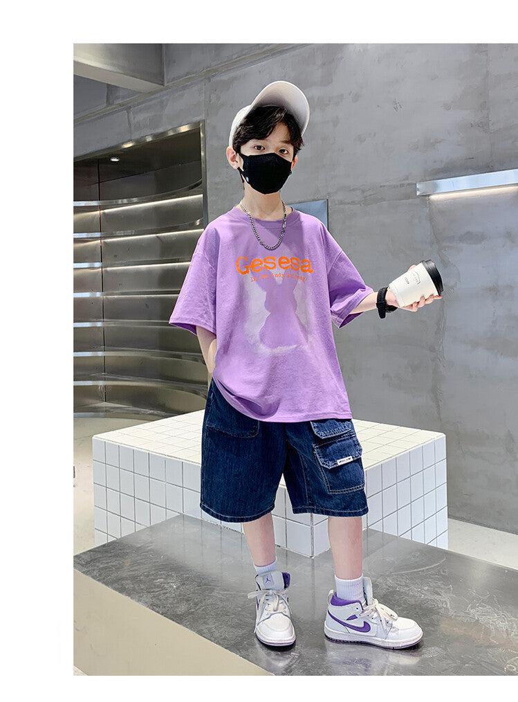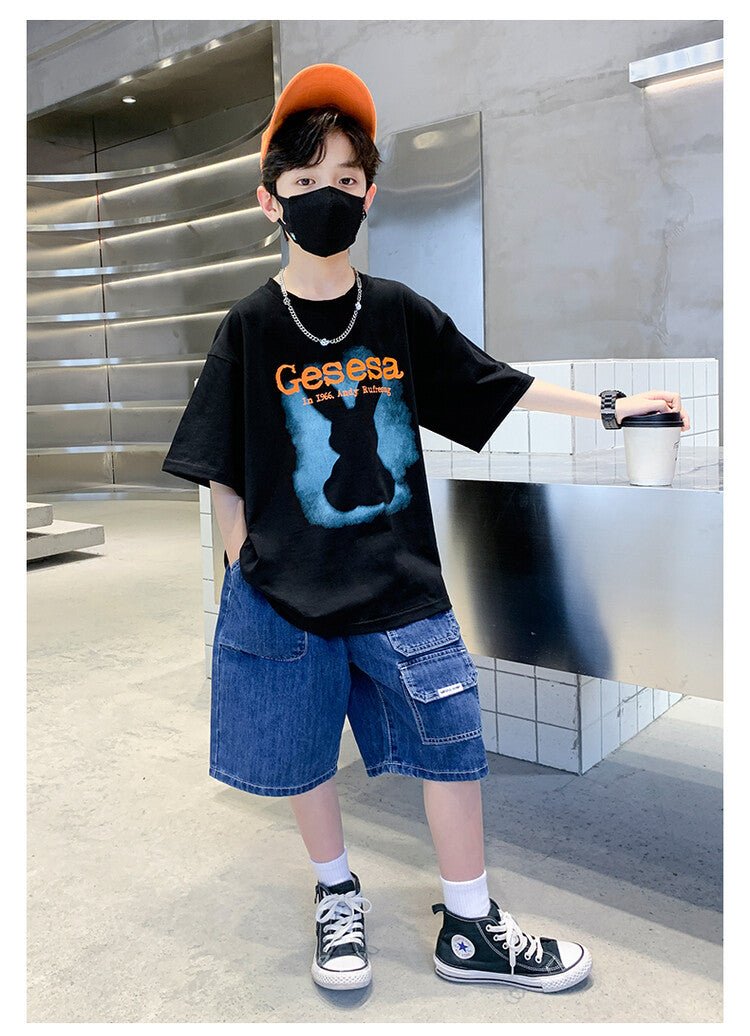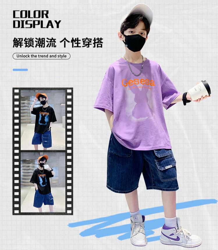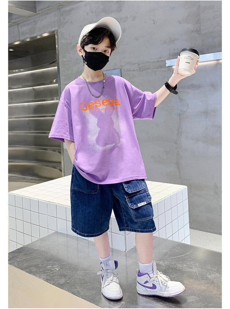 FU14042024-66 طقم ولادي صيفي قعطتين ( بلوز + بنطلون جينز)