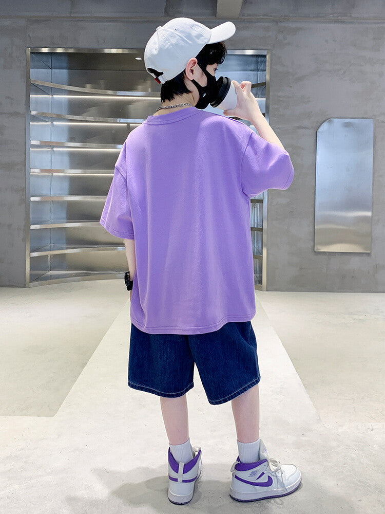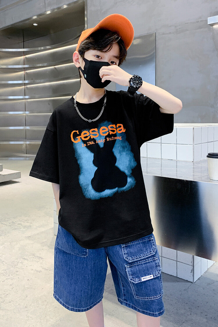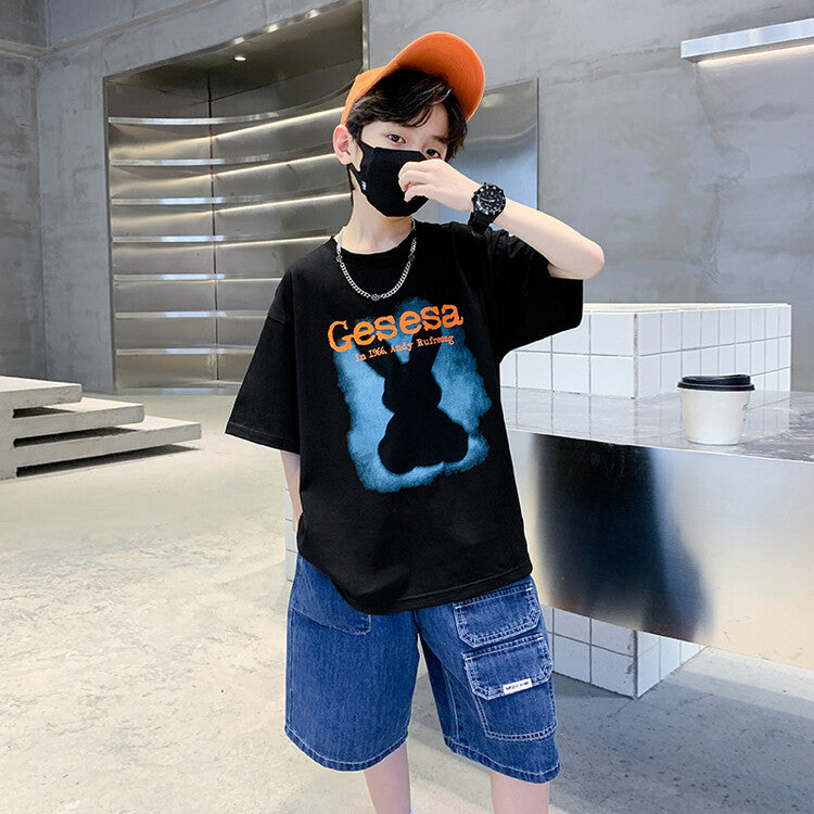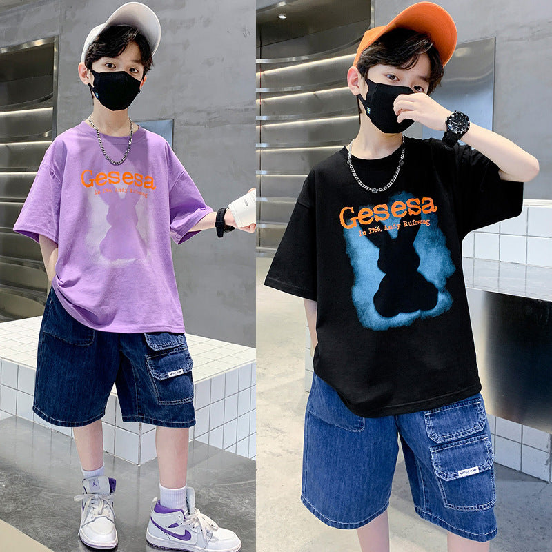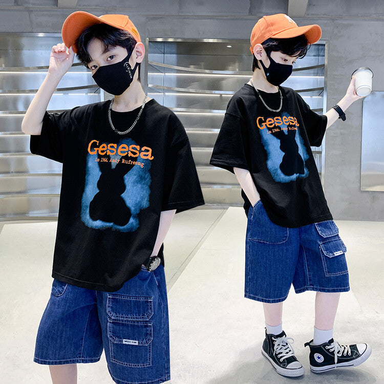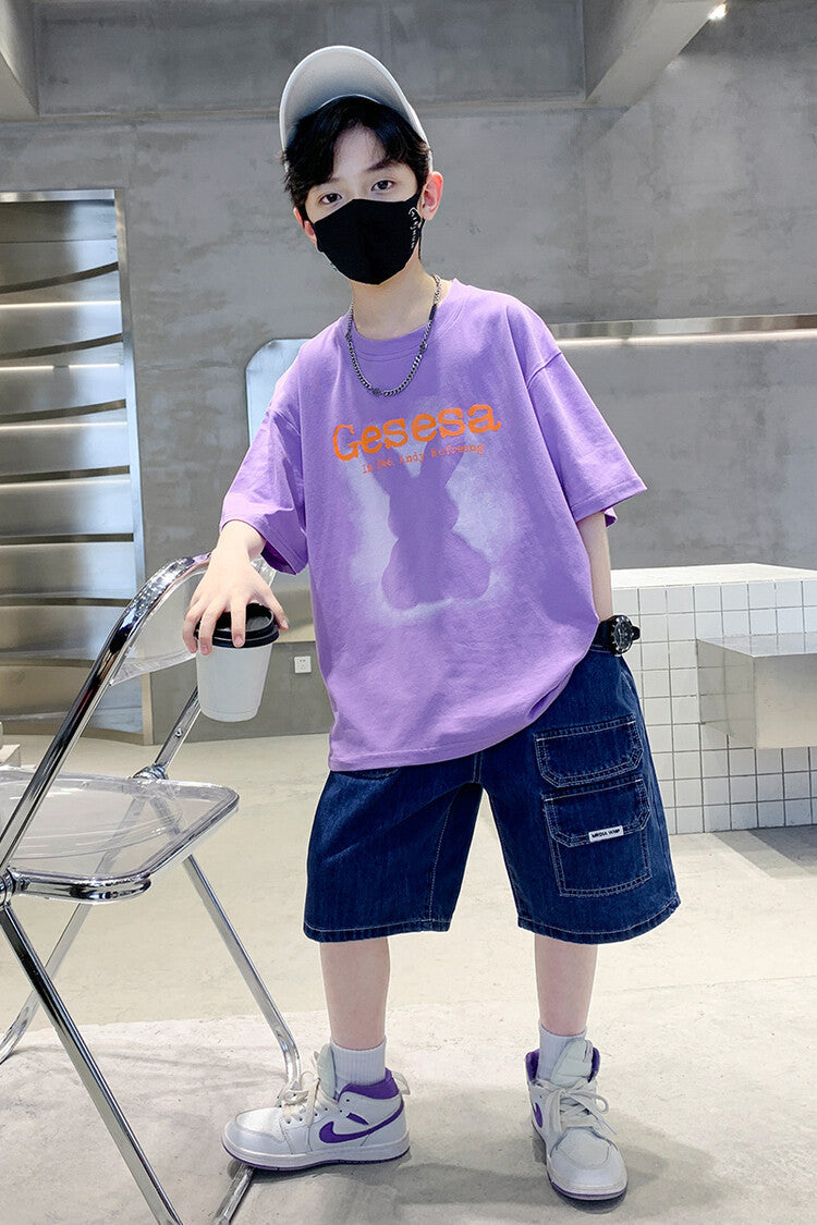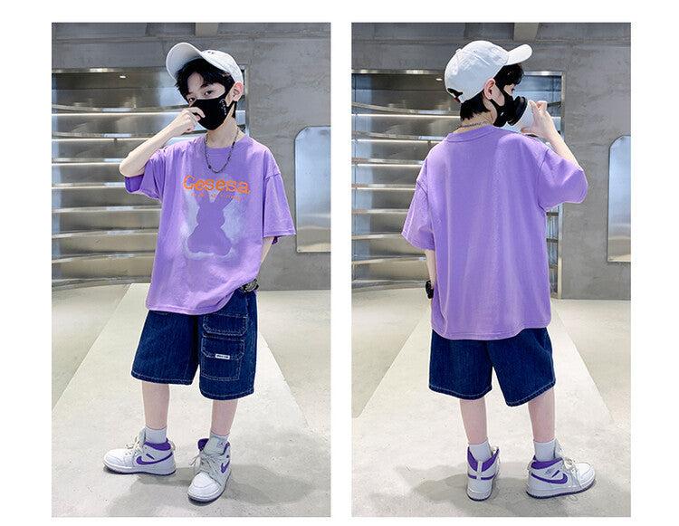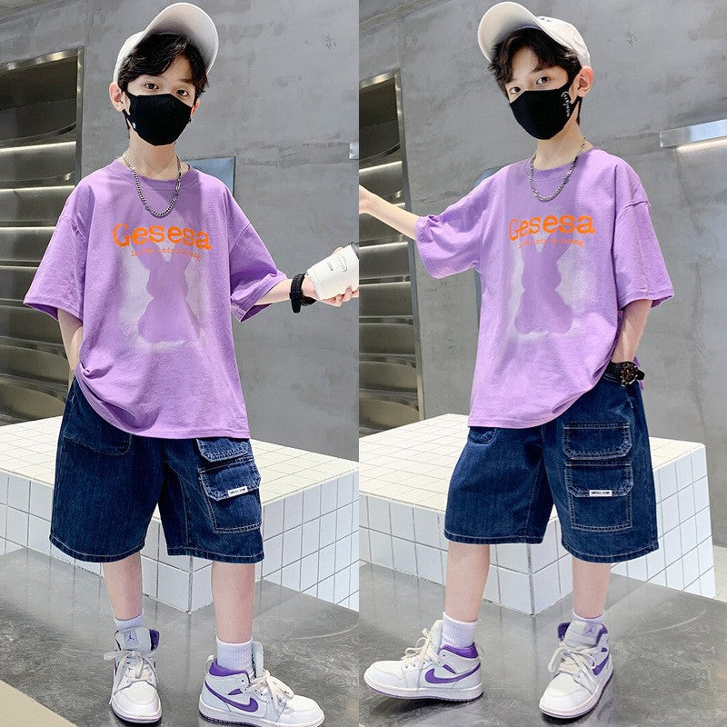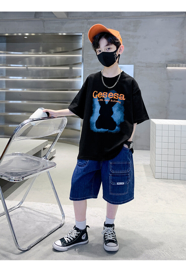 FU14042024-66 طقم ولادي صيفي قعطتين ( بلوز + بنطلون جينز)