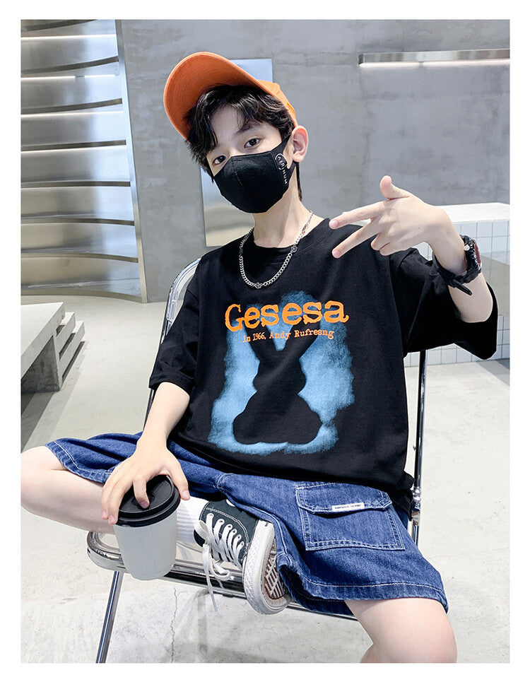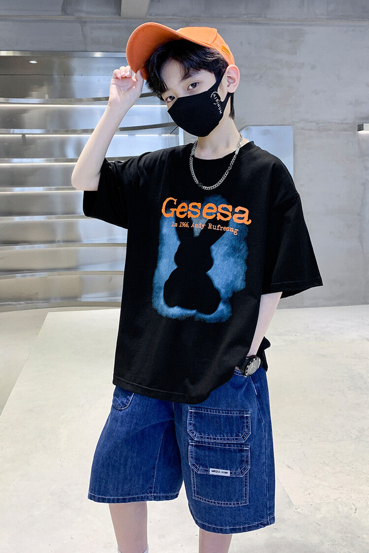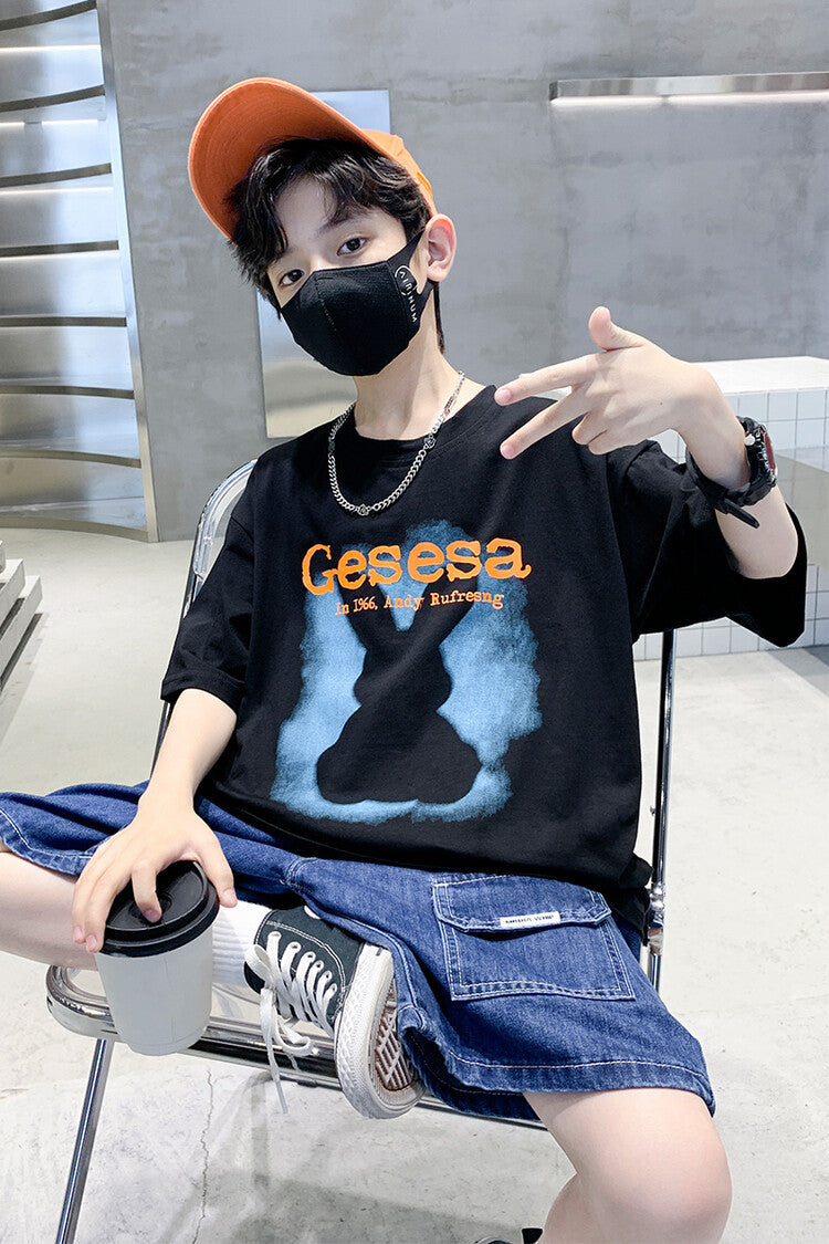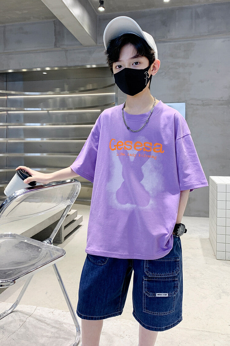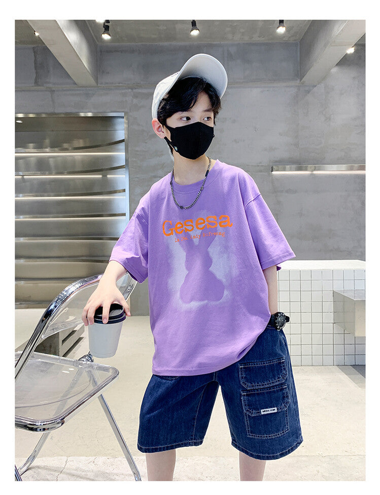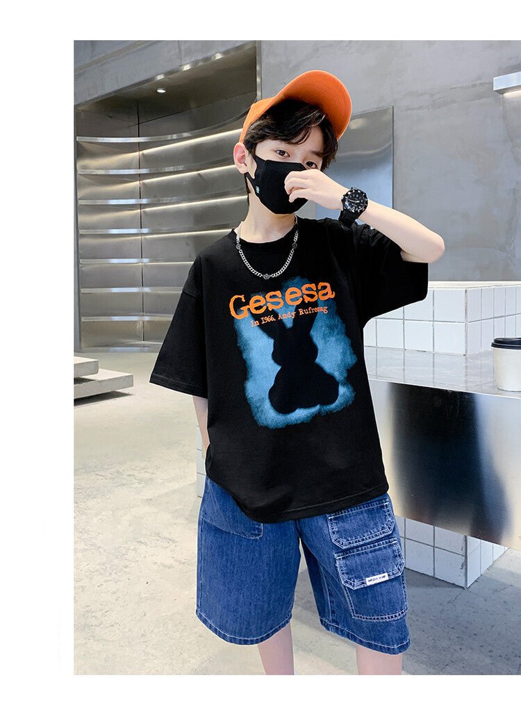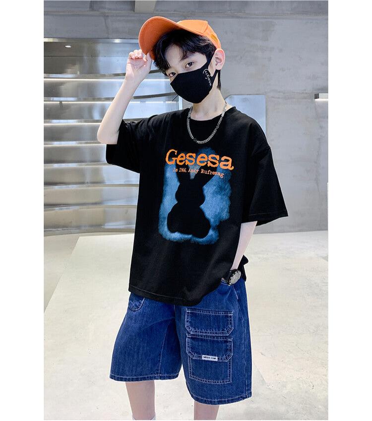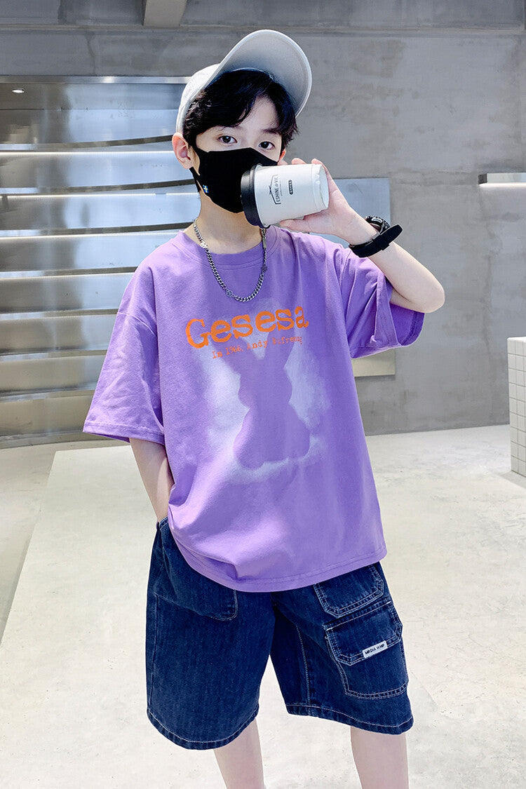 FU14042024-66 طقم ولادي صيفي قعطتين ( بلوز + بنطلون جينز)