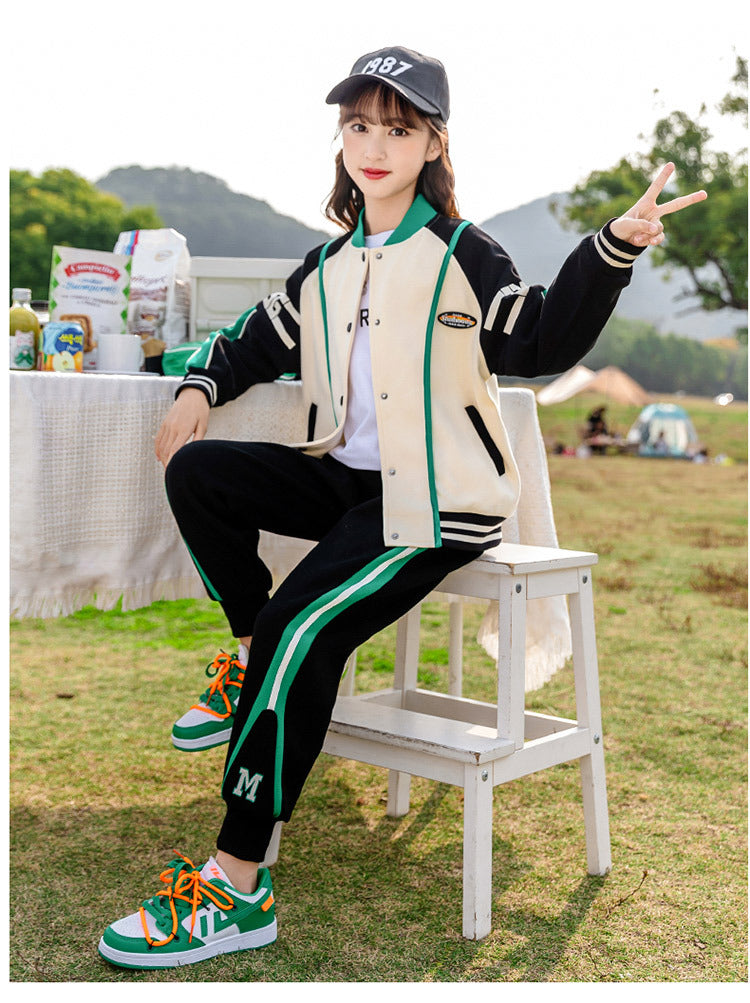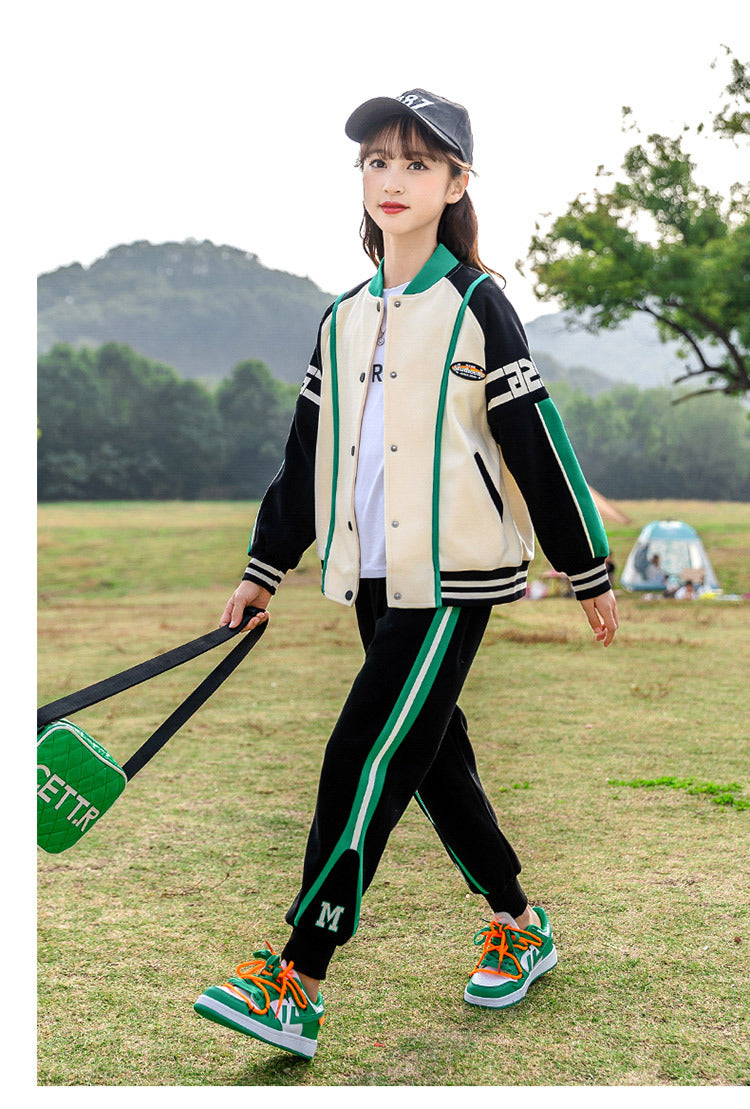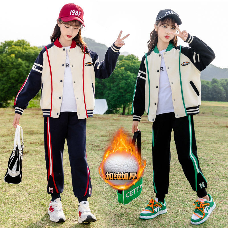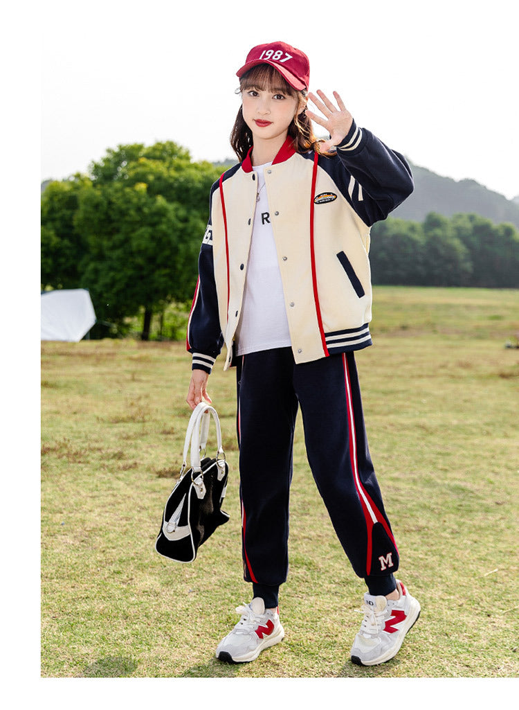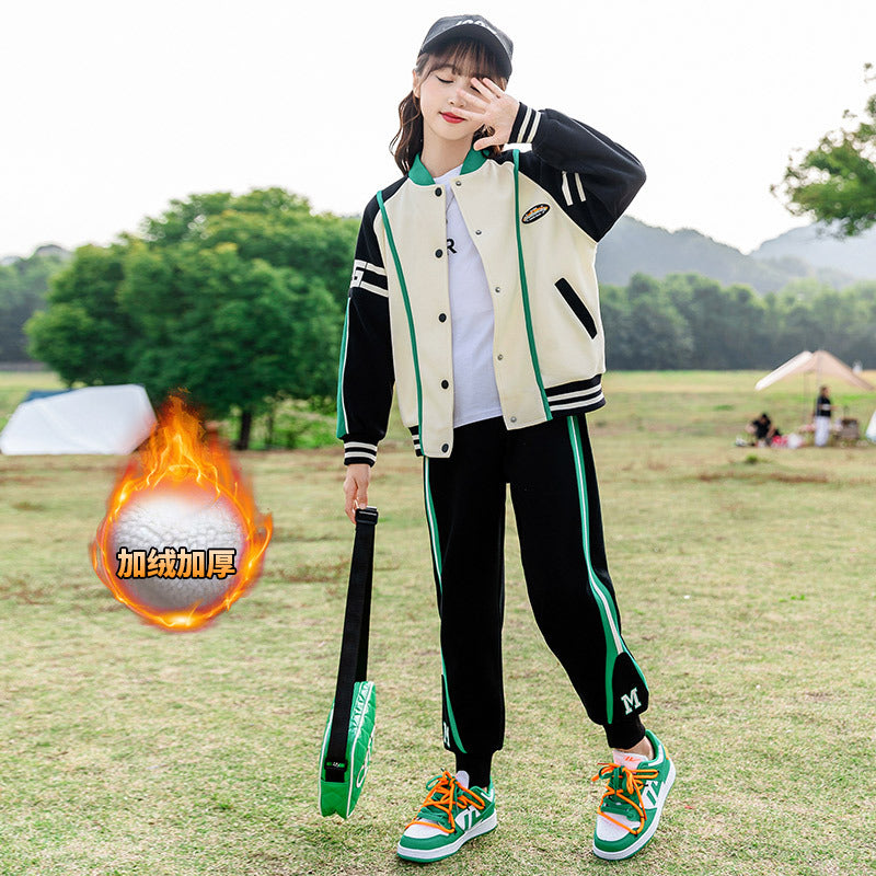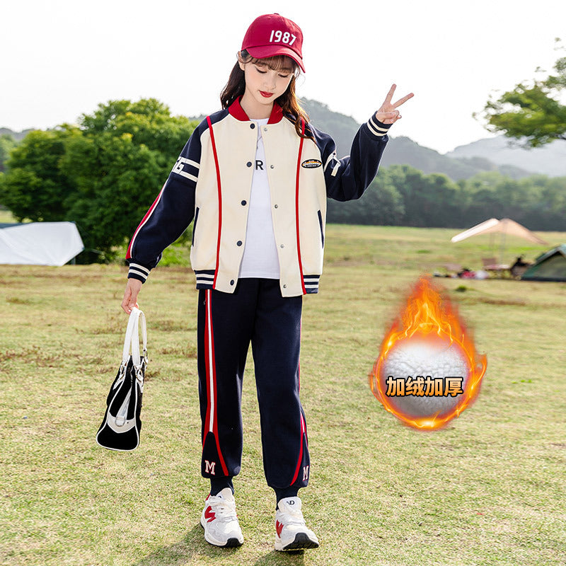 HBC040924-10 طقم بناتي شتوي مبطن فرو قطعتين ( جكيت + بنطلون)