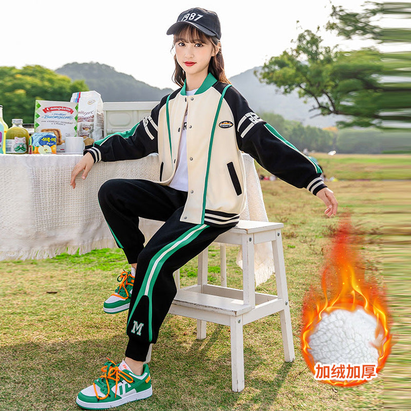 طقم بناتي شتوي مبطن فرو قطعتين ( جكيت + بنطلون)