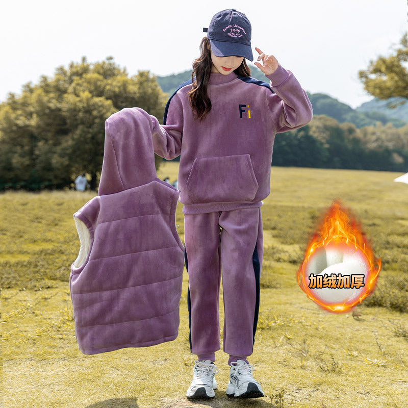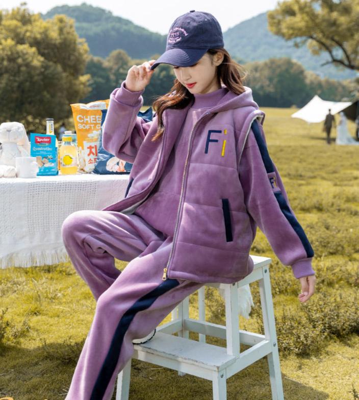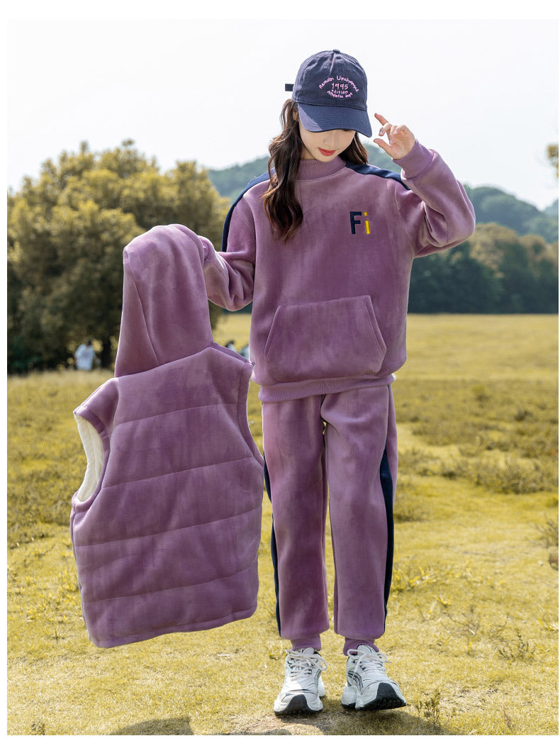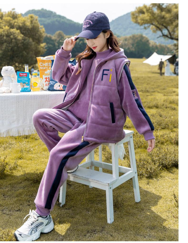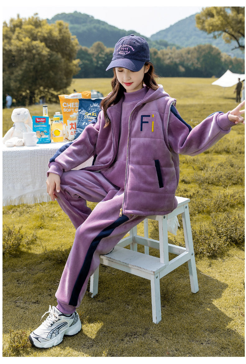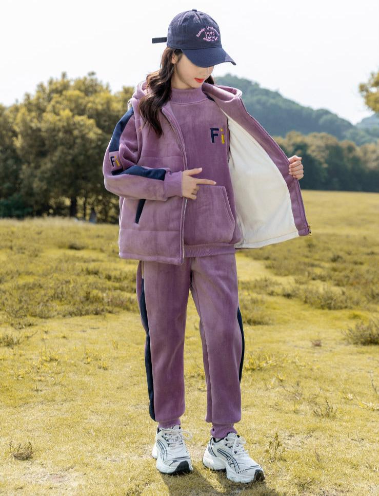 HBC040924-13 طقم بناتي شتوي مخمل ومبطن فرو بالكامل 3 قطع ( بلوزة + فست + بنطلون)