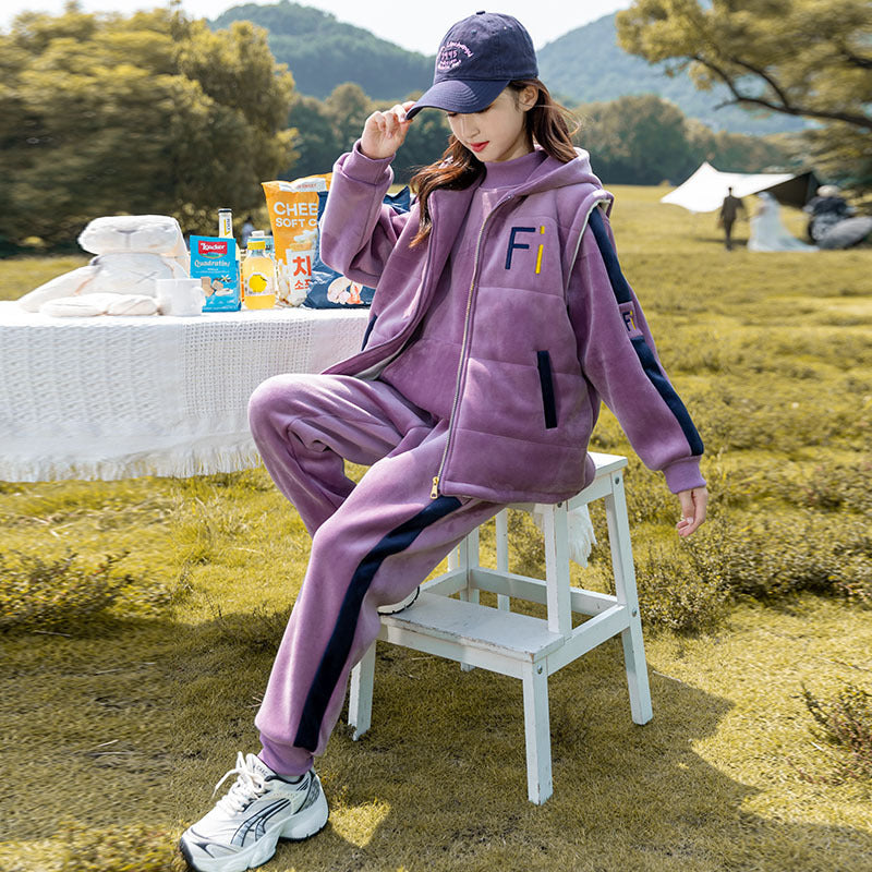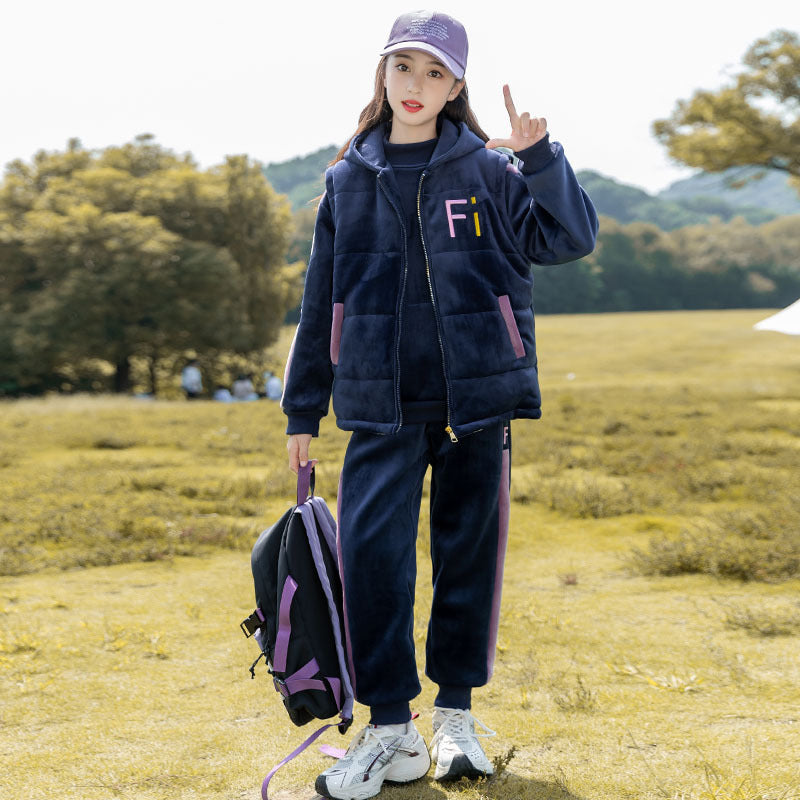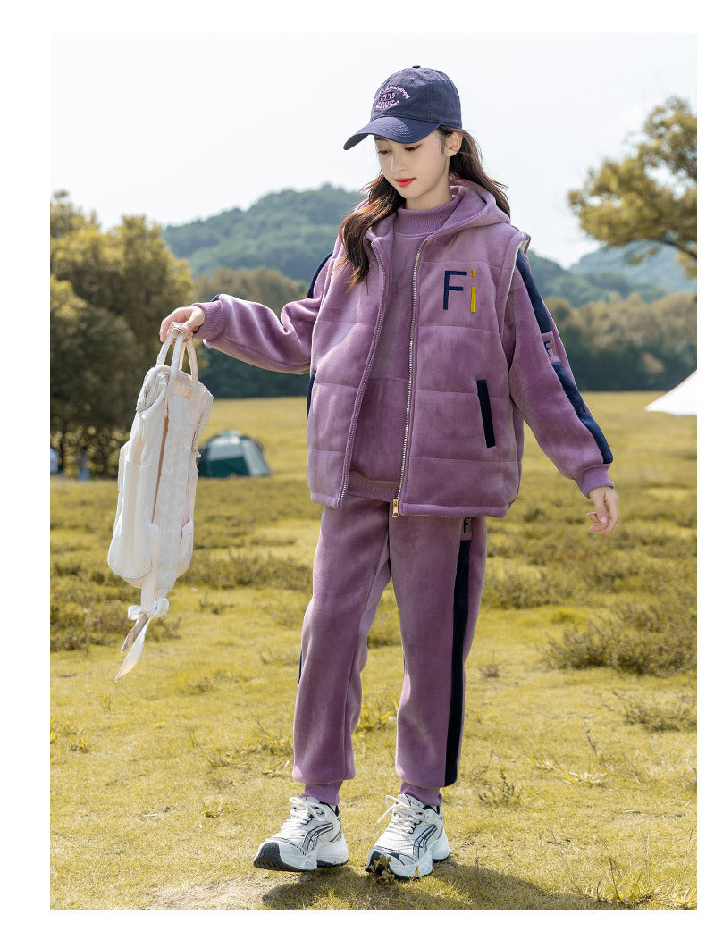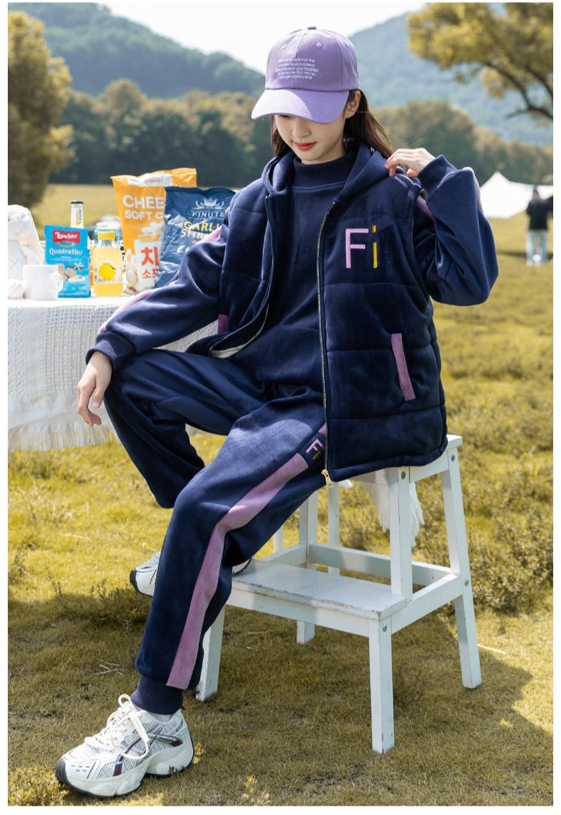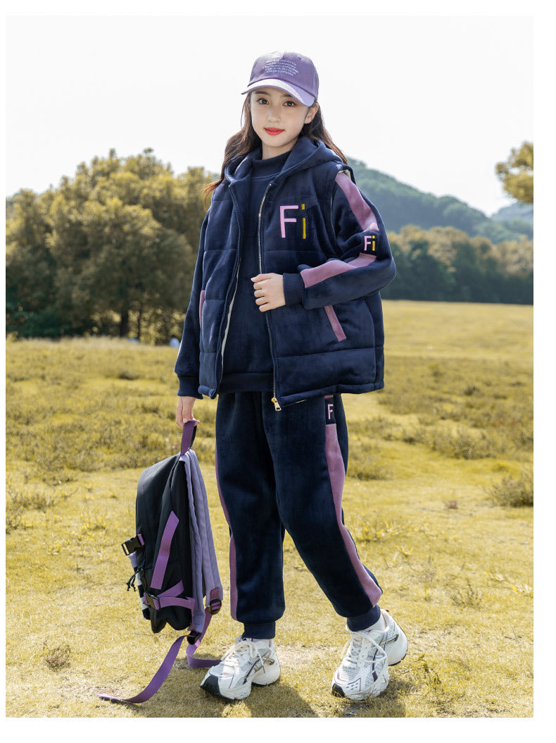HBC040924-13 طقم بناتي شتوي مخمل ومبطن فرو بالكامل 3 قطع ( بلوزة + فست + بنطلون)
