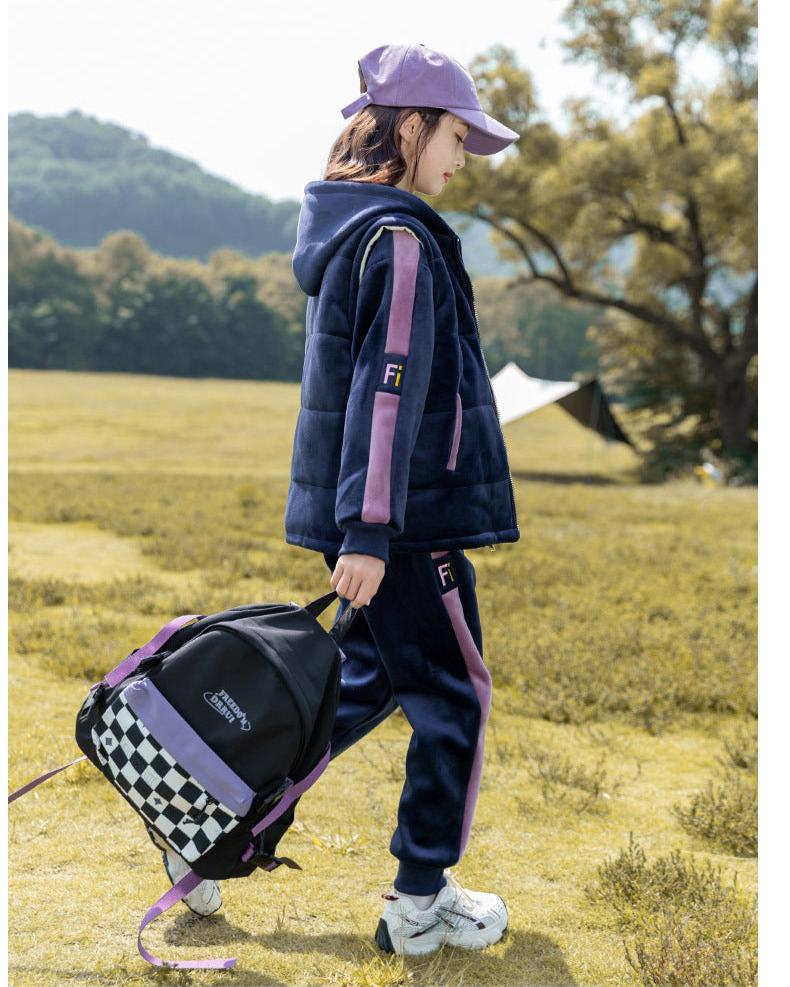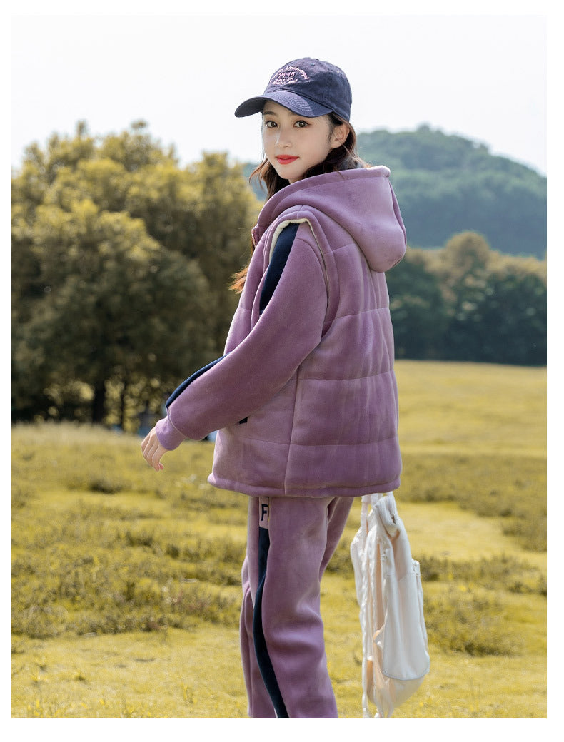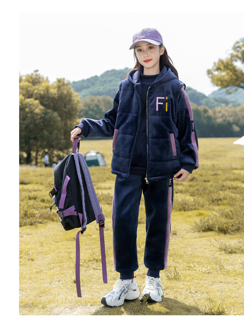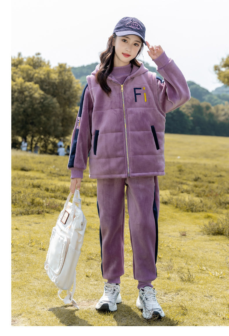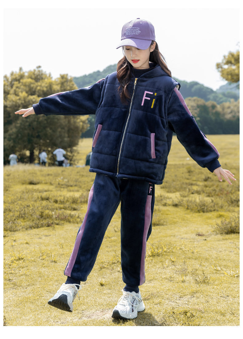 HBC040924-13 طقم بناتي شتوي مخمل ومبطن فرو بالكامل 3 قطع ( بلوزة + فست + بنطلون)