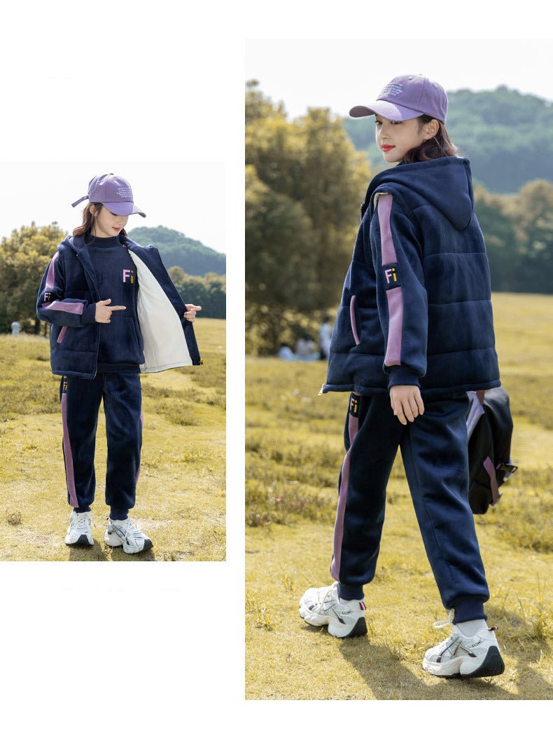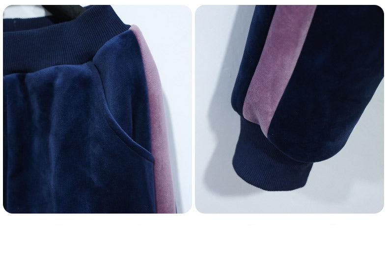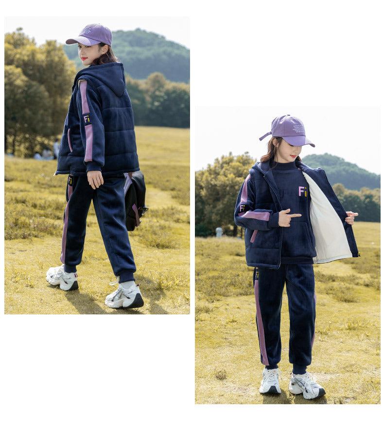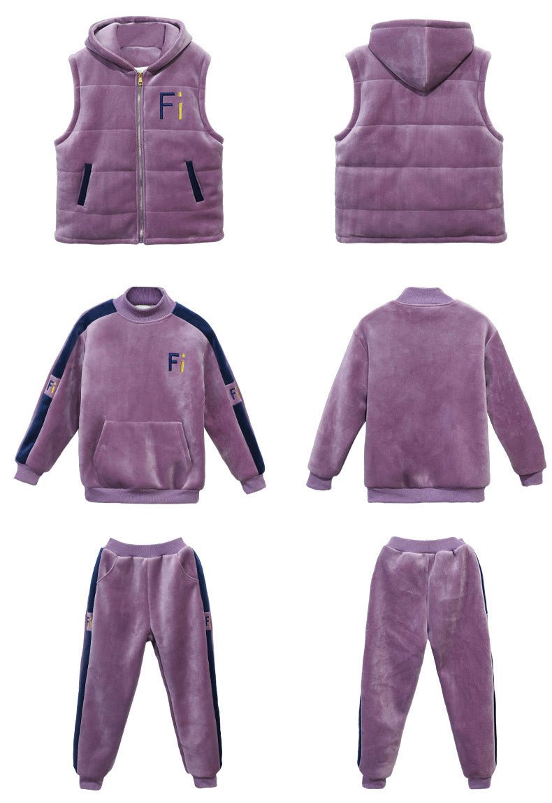 طقم بناتي شتوي مخمل ومبطن فرو بالكامل 3 قطع ( بلوزة + فست + بنطلون)