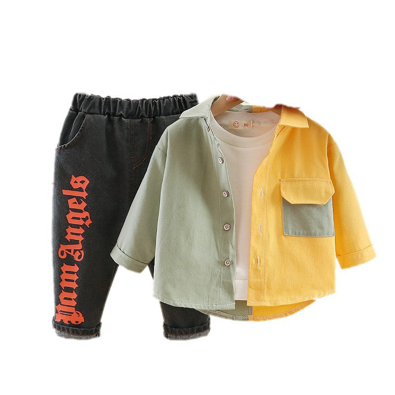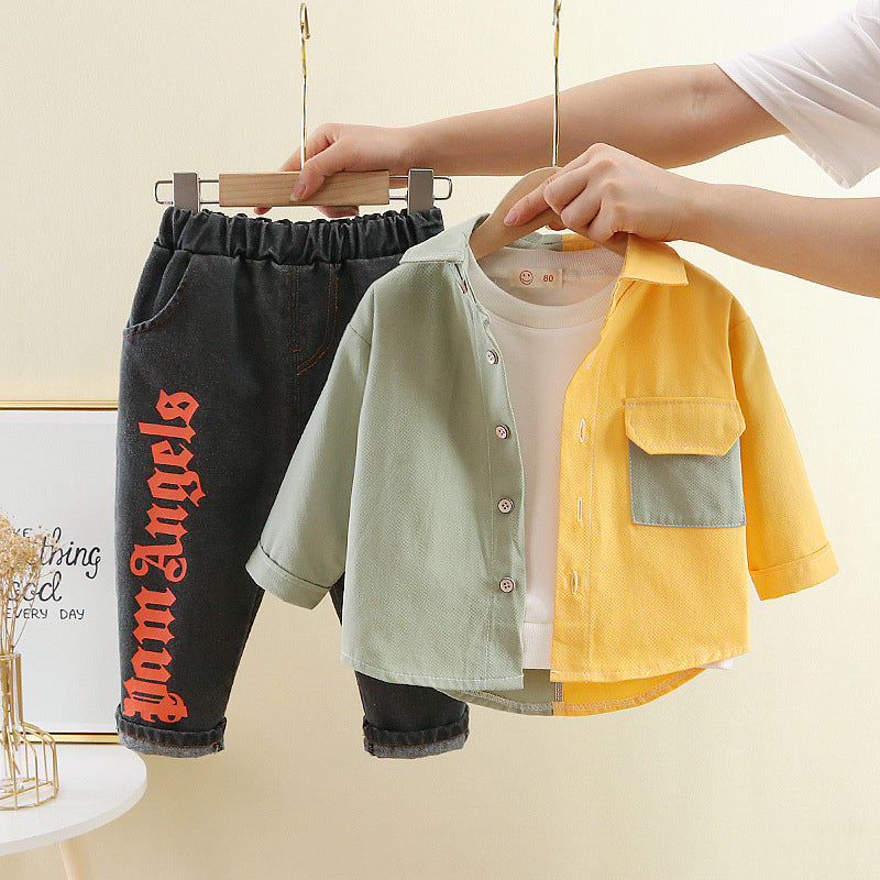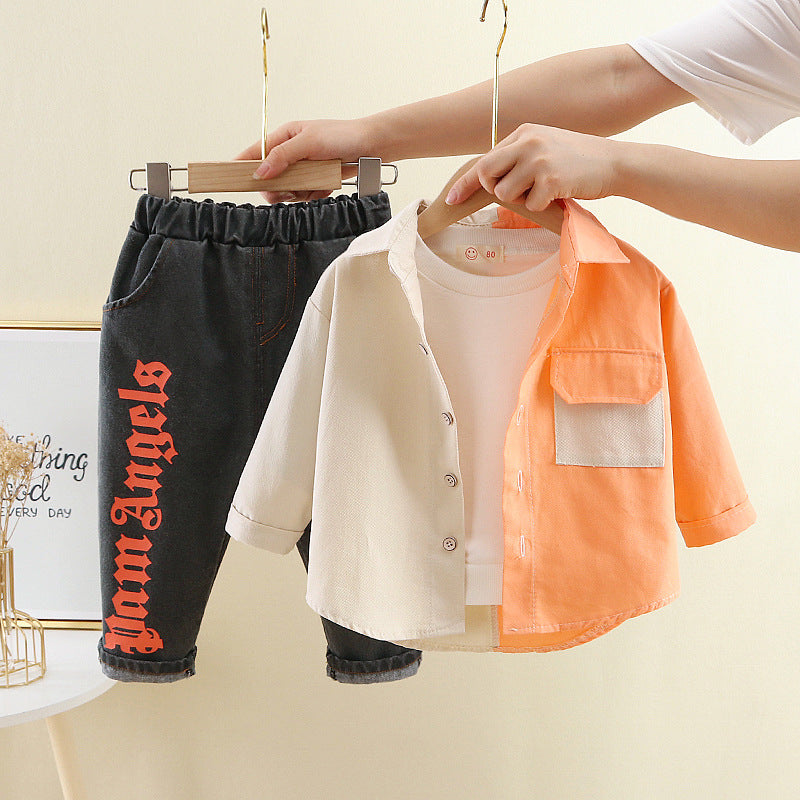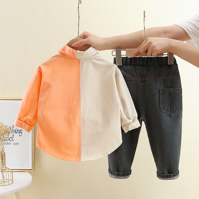 طقم ولادي قطعتين ( قميص + بنطلون جينز )