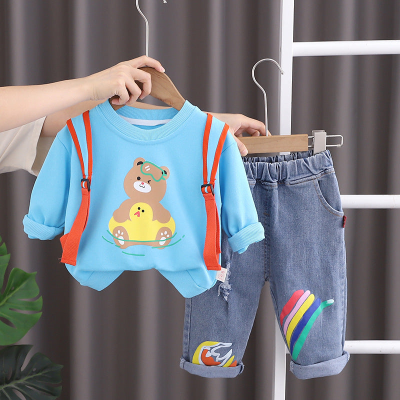 طقم دبدوب قطعتين ( بلوزة + بنطلون جينز)