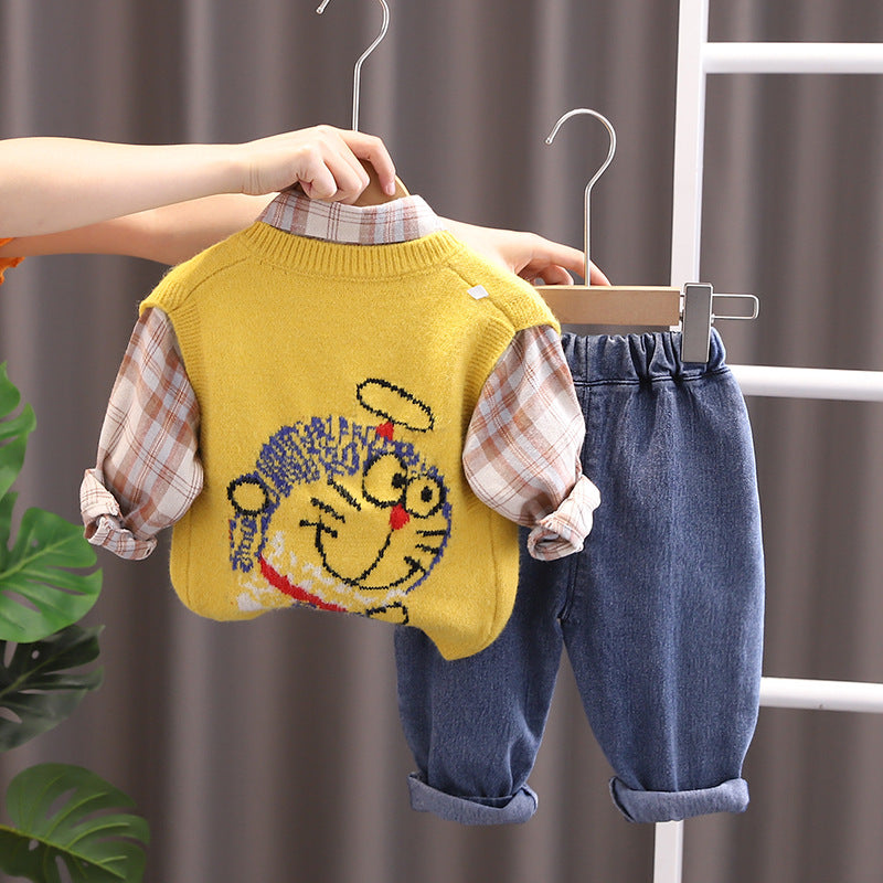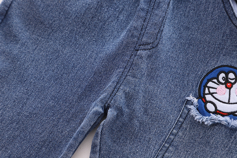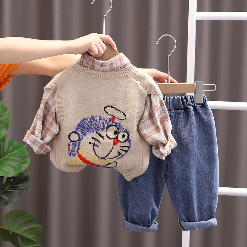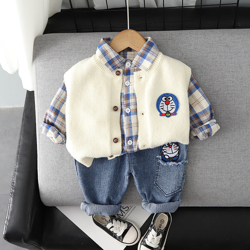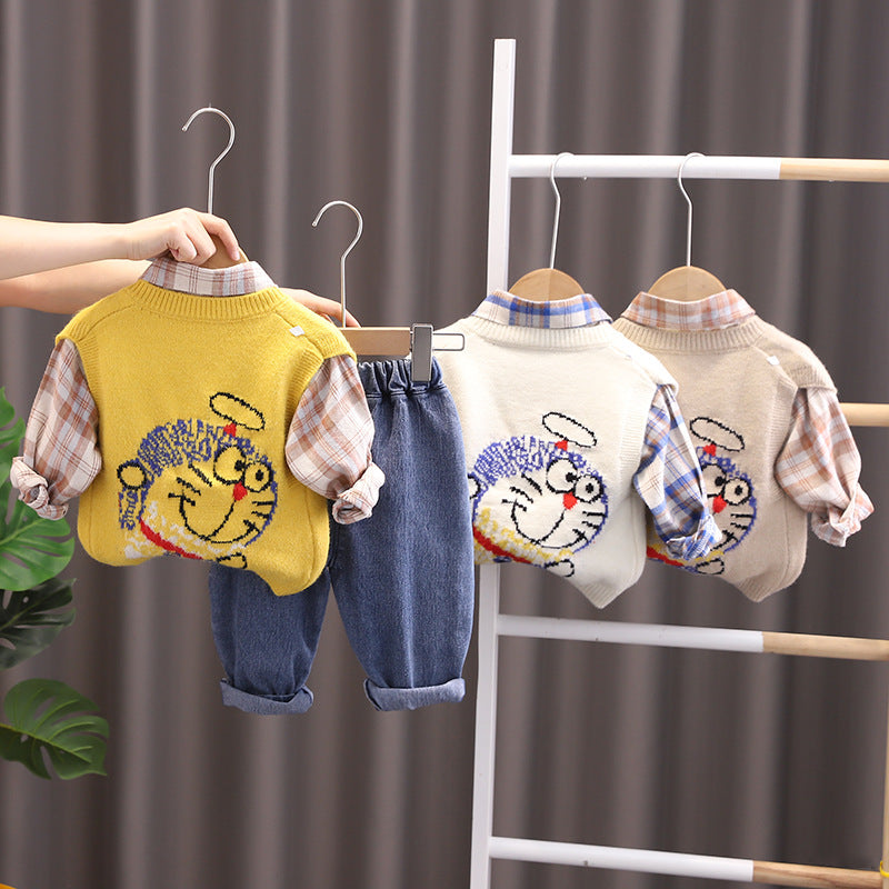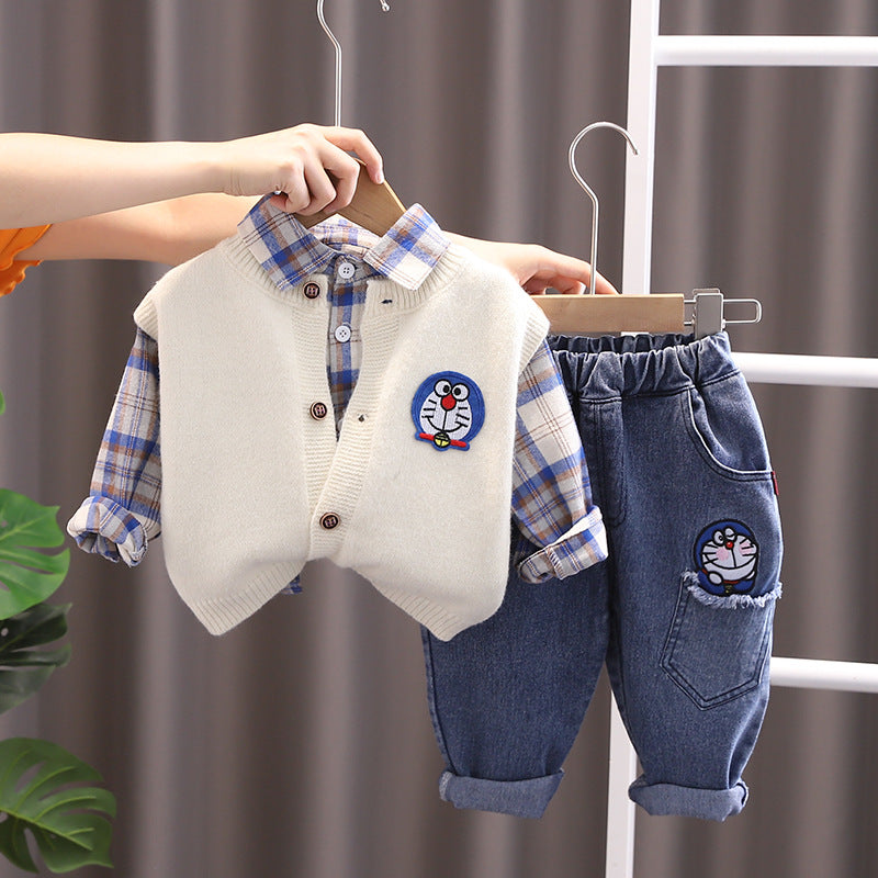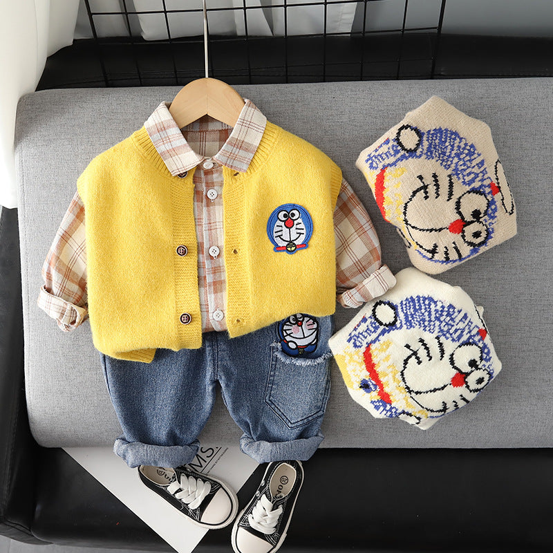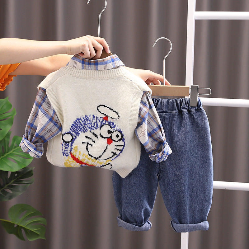 RM0608-28 طقم دورايمون ولادي 3 قطع ( قميص مصوف + فست صوف + بنطلون جينز ناعم )