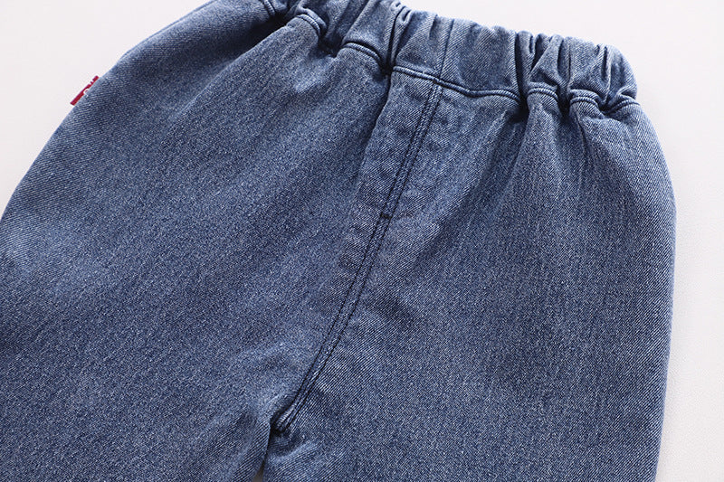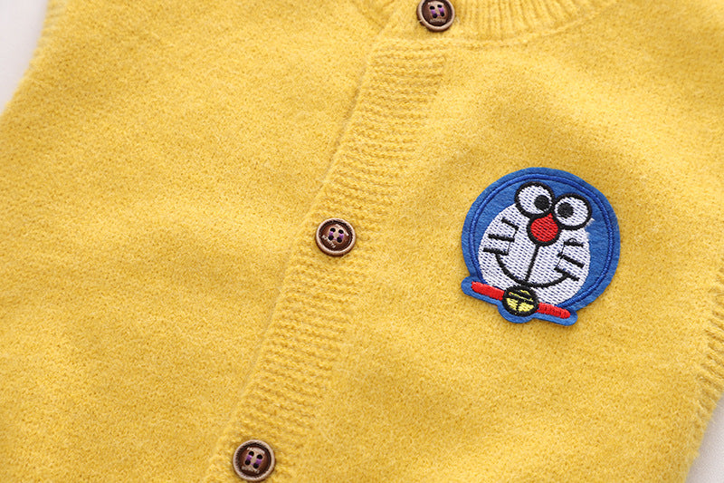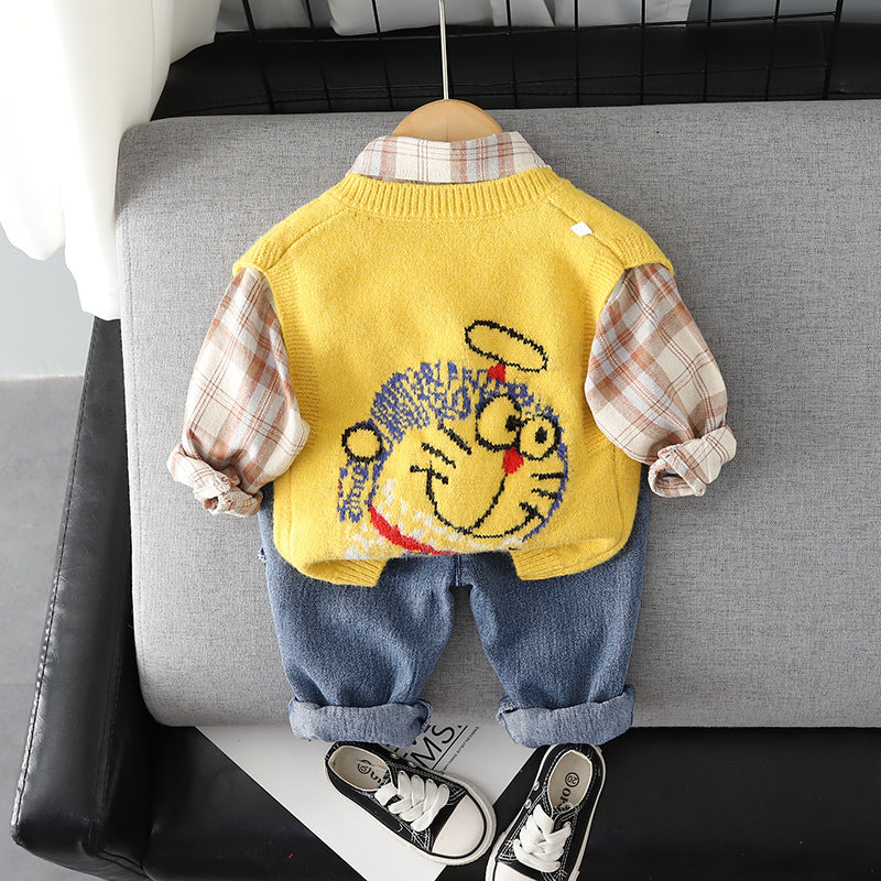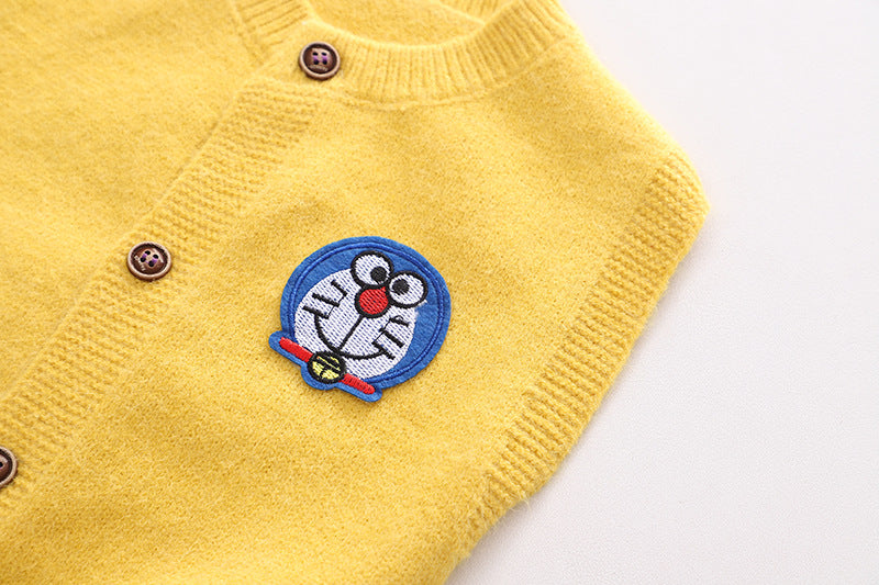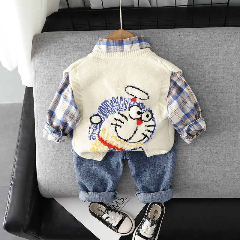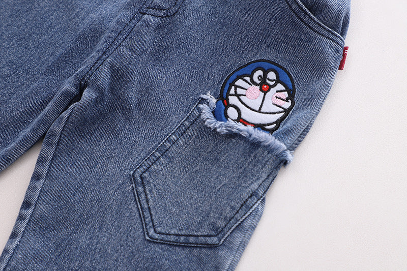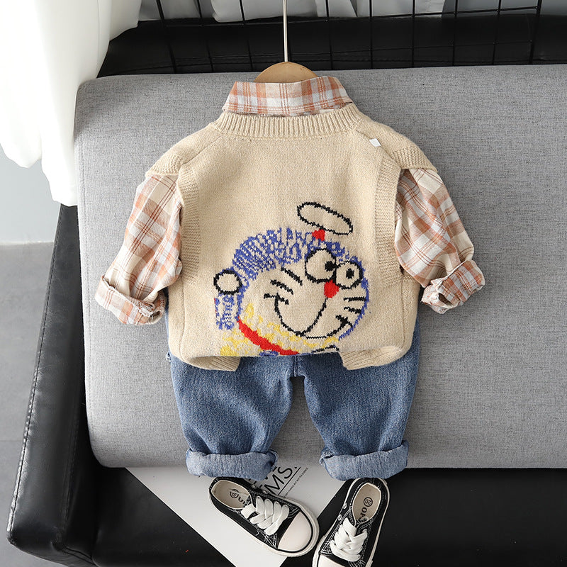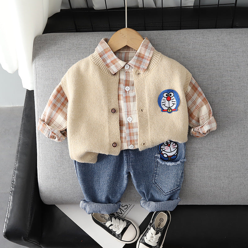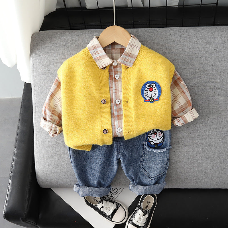 RM0608-28 طقم دورايمون ولادي 3 قطع ( قميص مصوف + فست صوف + بنطلون جينز ناعم )