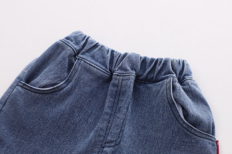طقم درايمون ولادي 3 قطع ( قميص مصوف + فست صوف + بنطلون جينز ناعم )