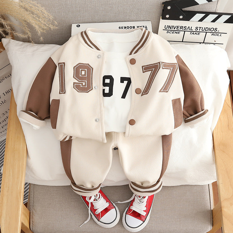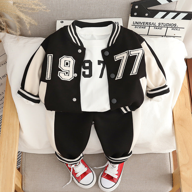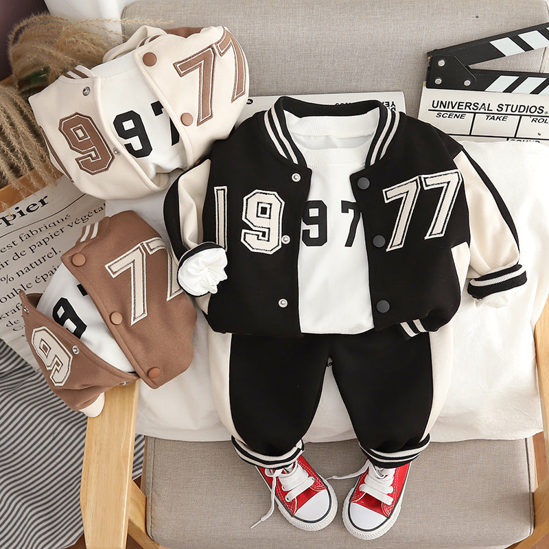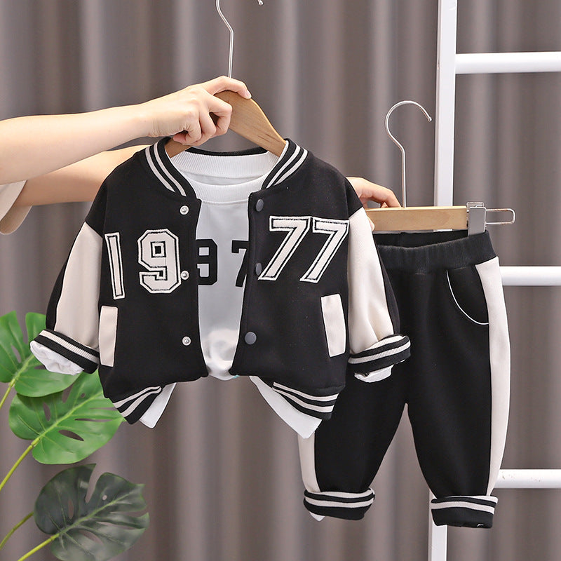 RM0608-31 طقم قطني سبورت ولادي 3 قطع ( بلوزة + جكيت + بنطلون )