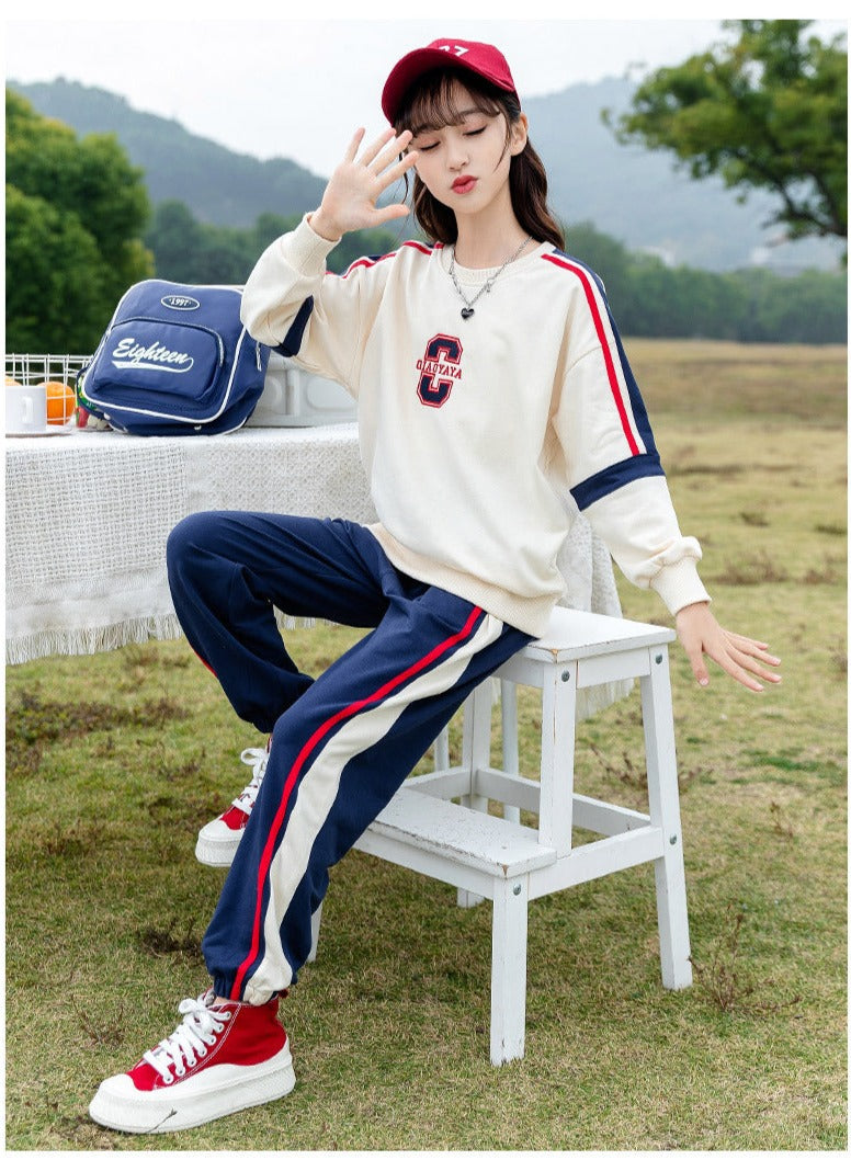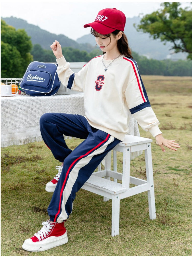 RM090424-10 بدلة قطنية رياضيه قطعتين ( بلوزة + بنطلون )
