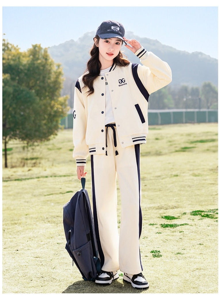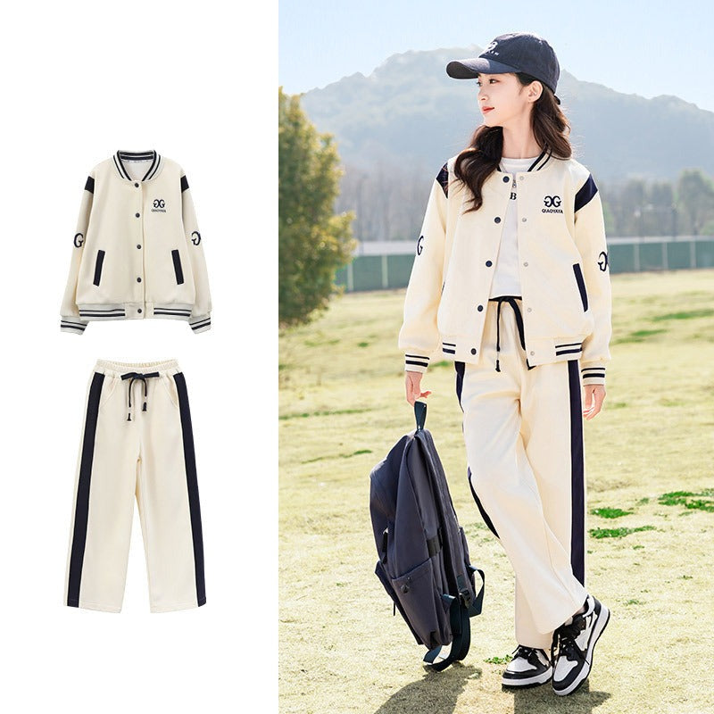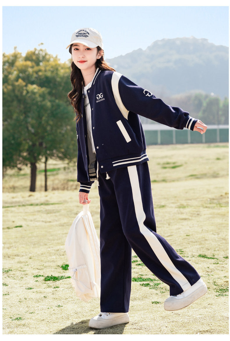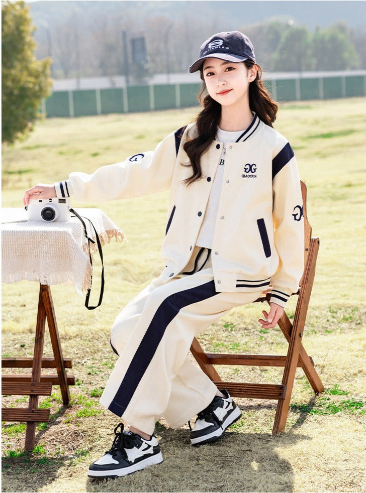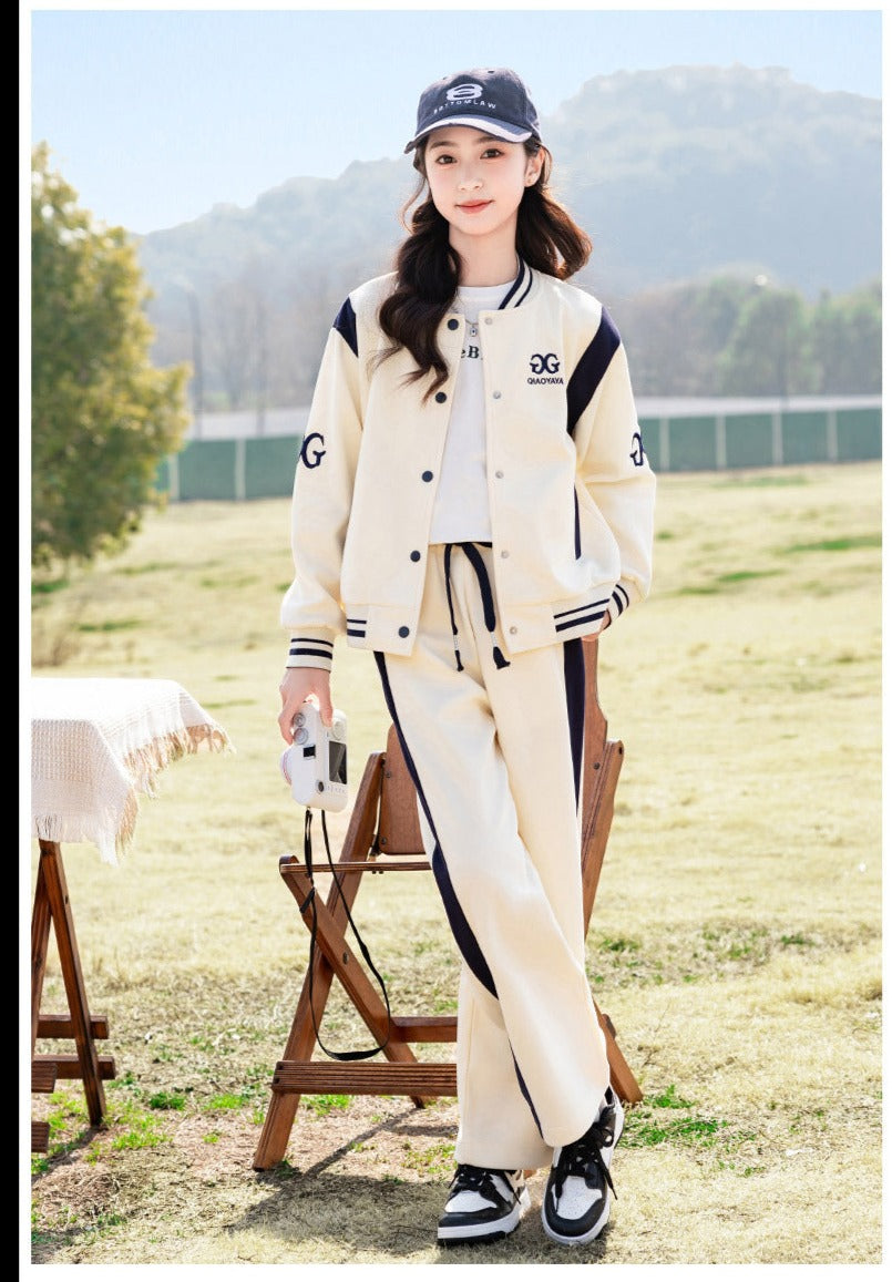 طقم بناتي سبورت قطن قطعتين ( جكيت + بنطلون )