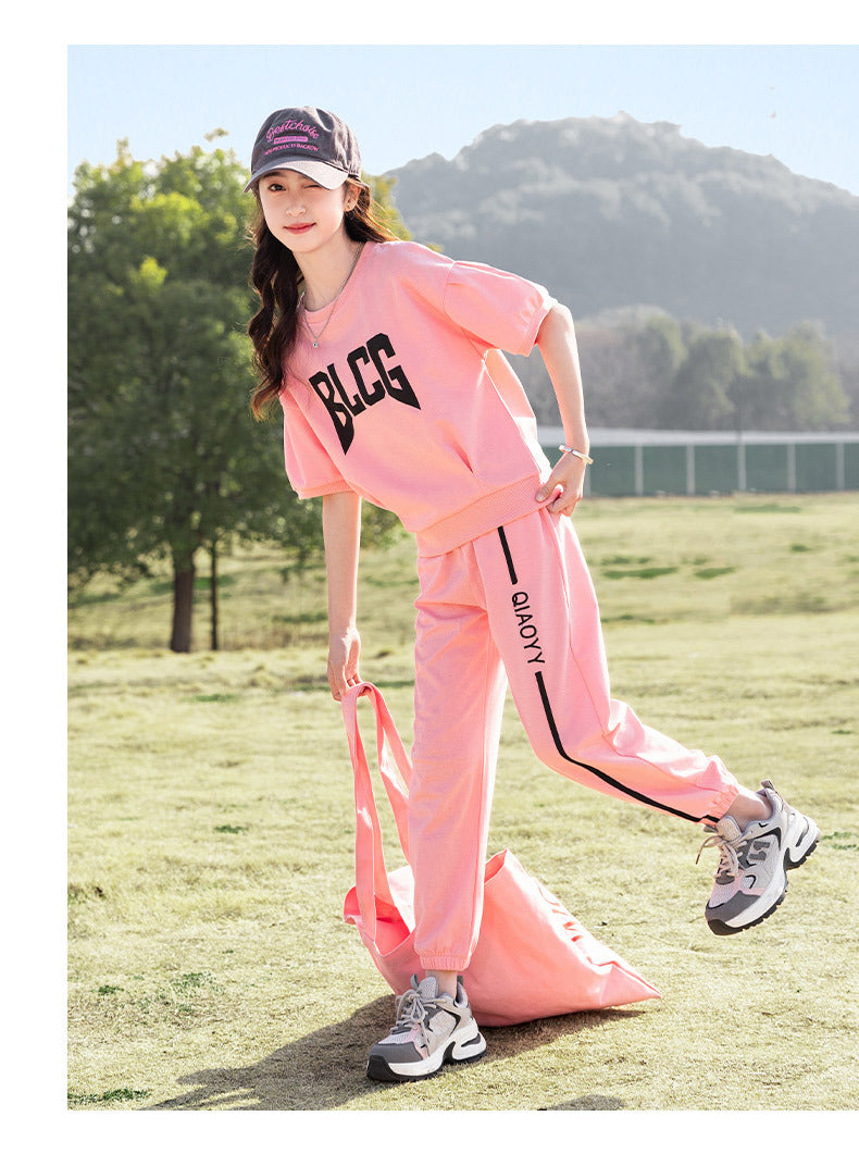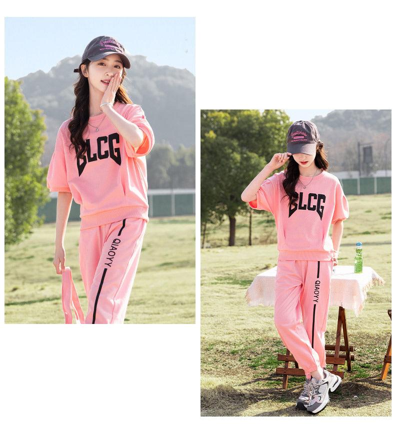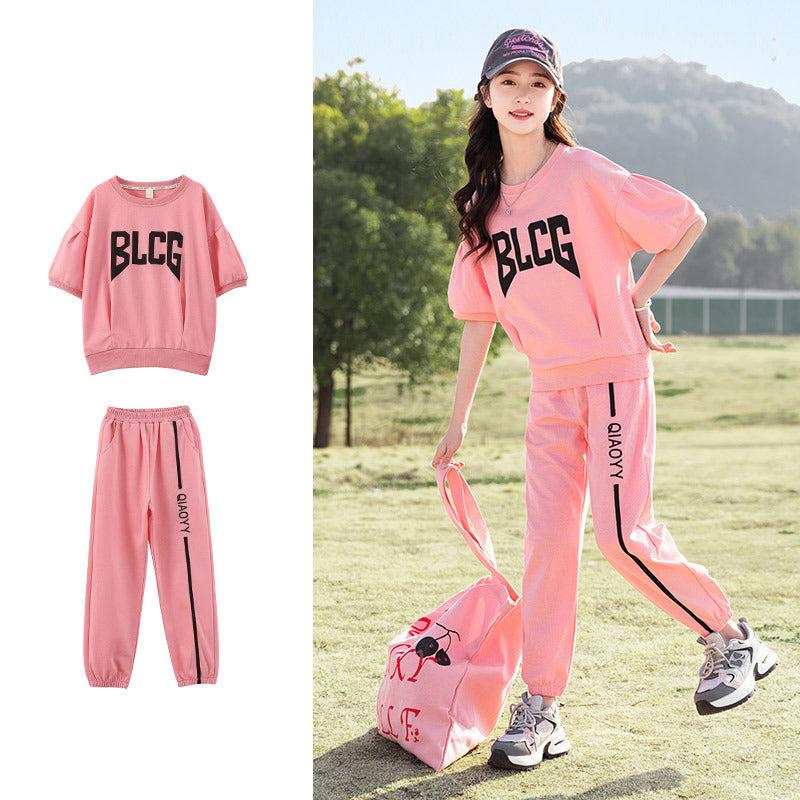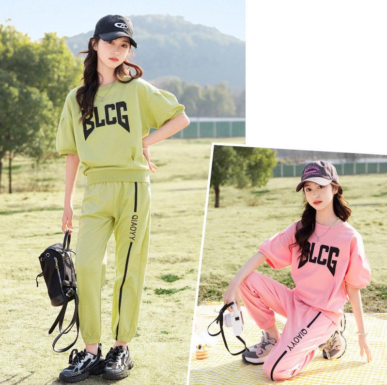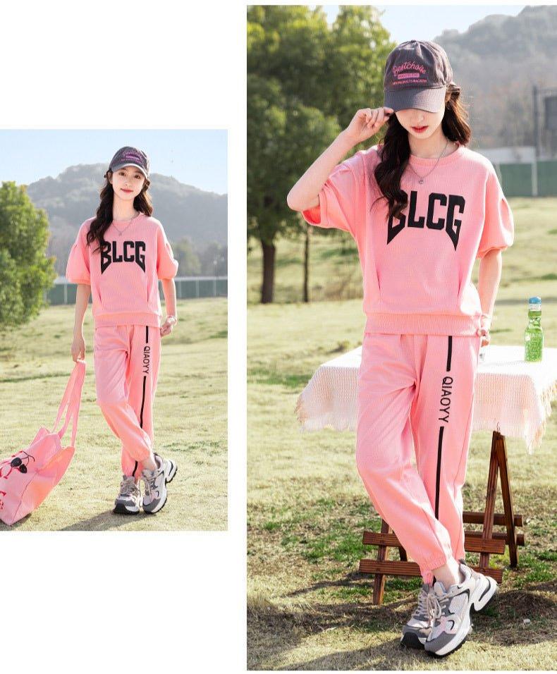 RM090424-23 طقم بناتي تريننج قطعتين ( بلوزة + بنطلون)