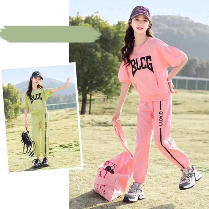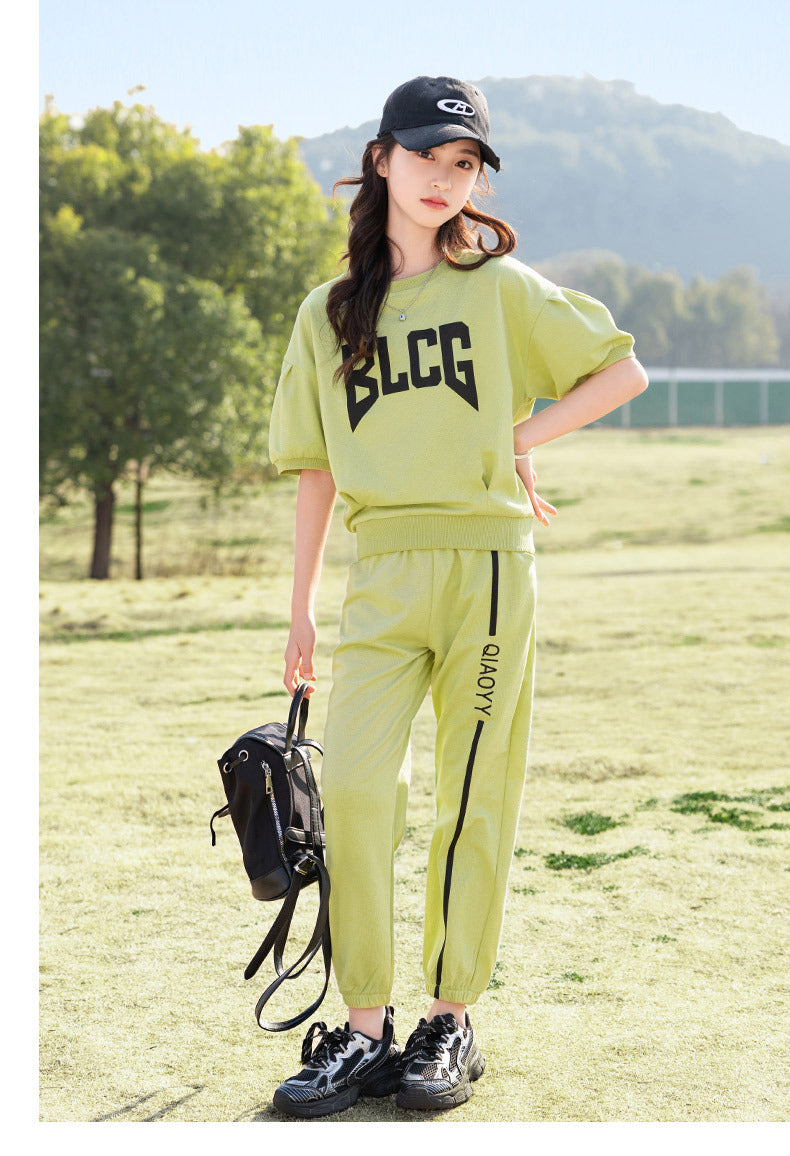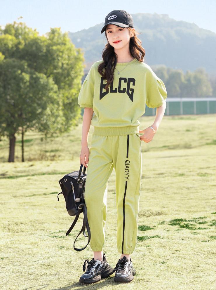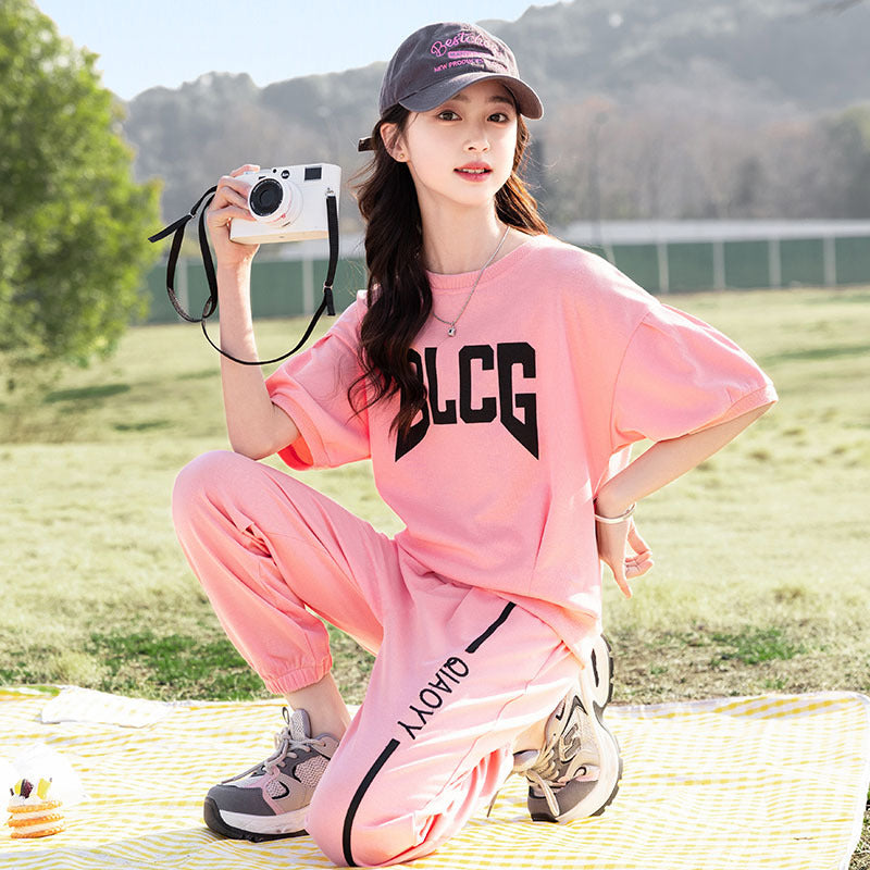 RM090424-23 طقم بناتي تريننج قطعتين ( بلوزة + بنطلون)