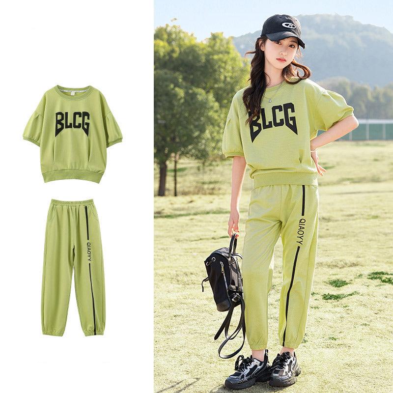 طقم بناتي تريننج قطعتين ( بلوزة + بنطلون)