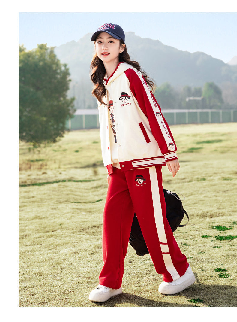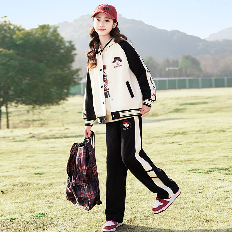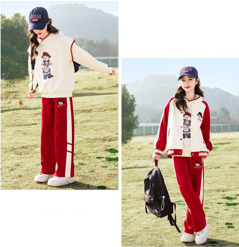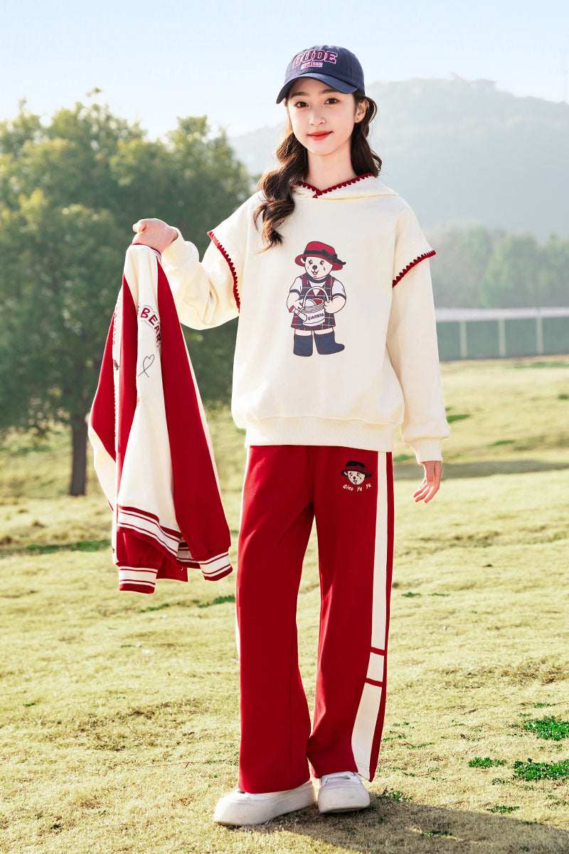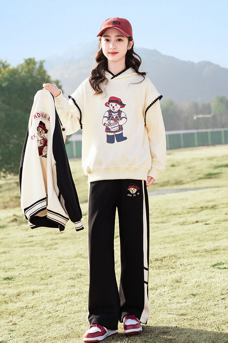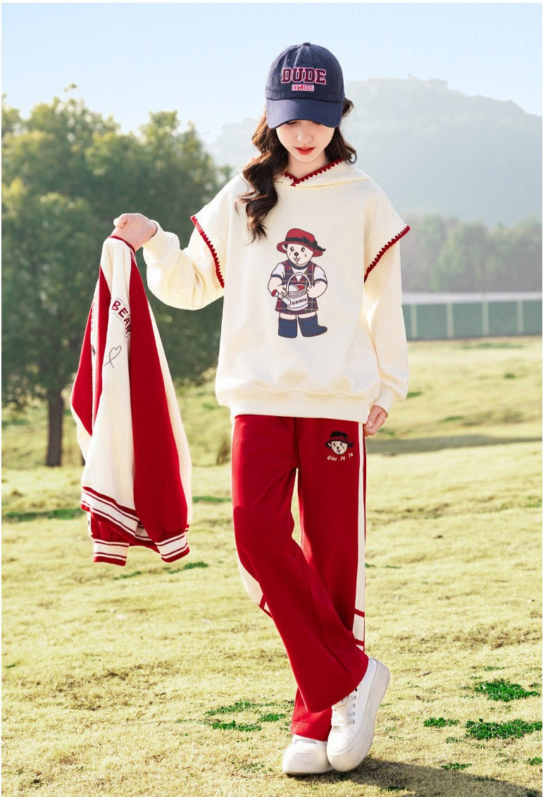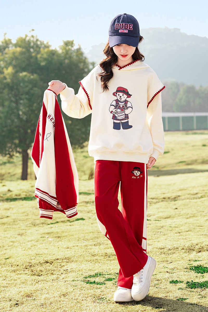 RM090424-3 بدلة سبورت قطني بناتي 3 قطع ( بلوزة + جكيت + بنطلون )