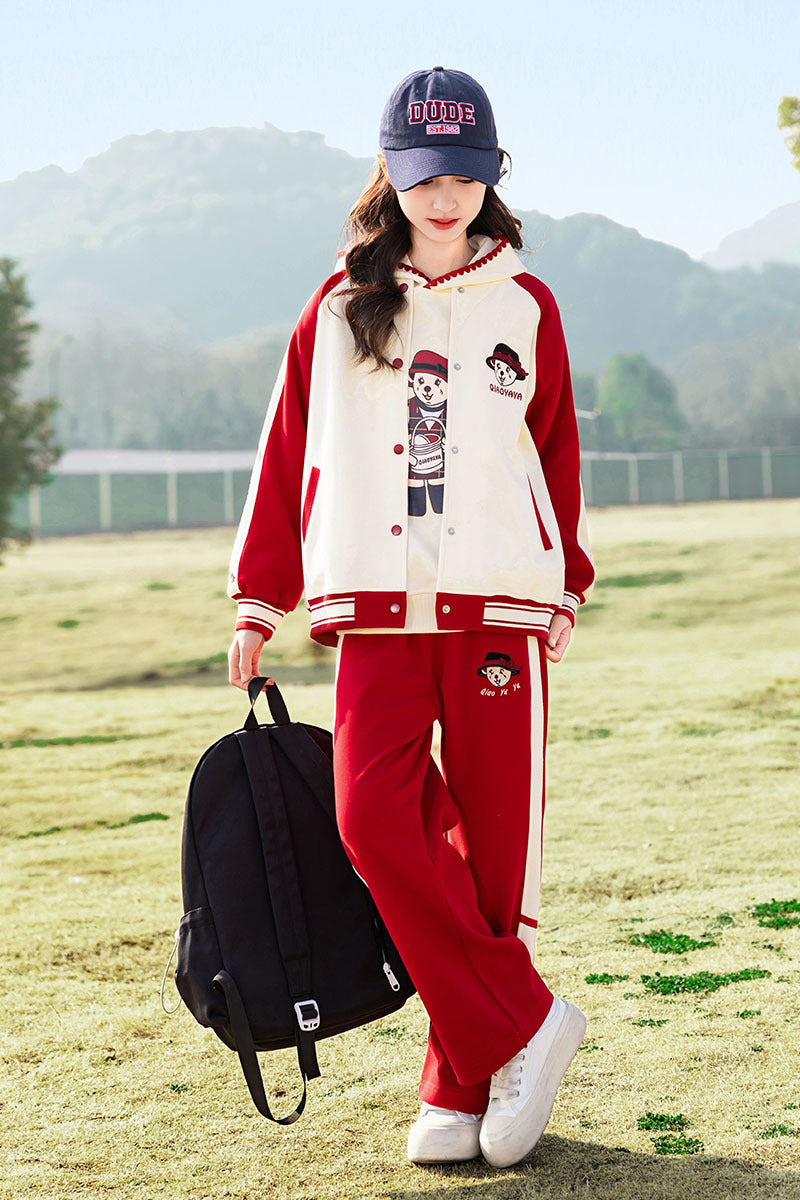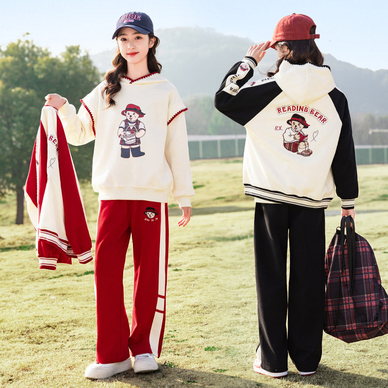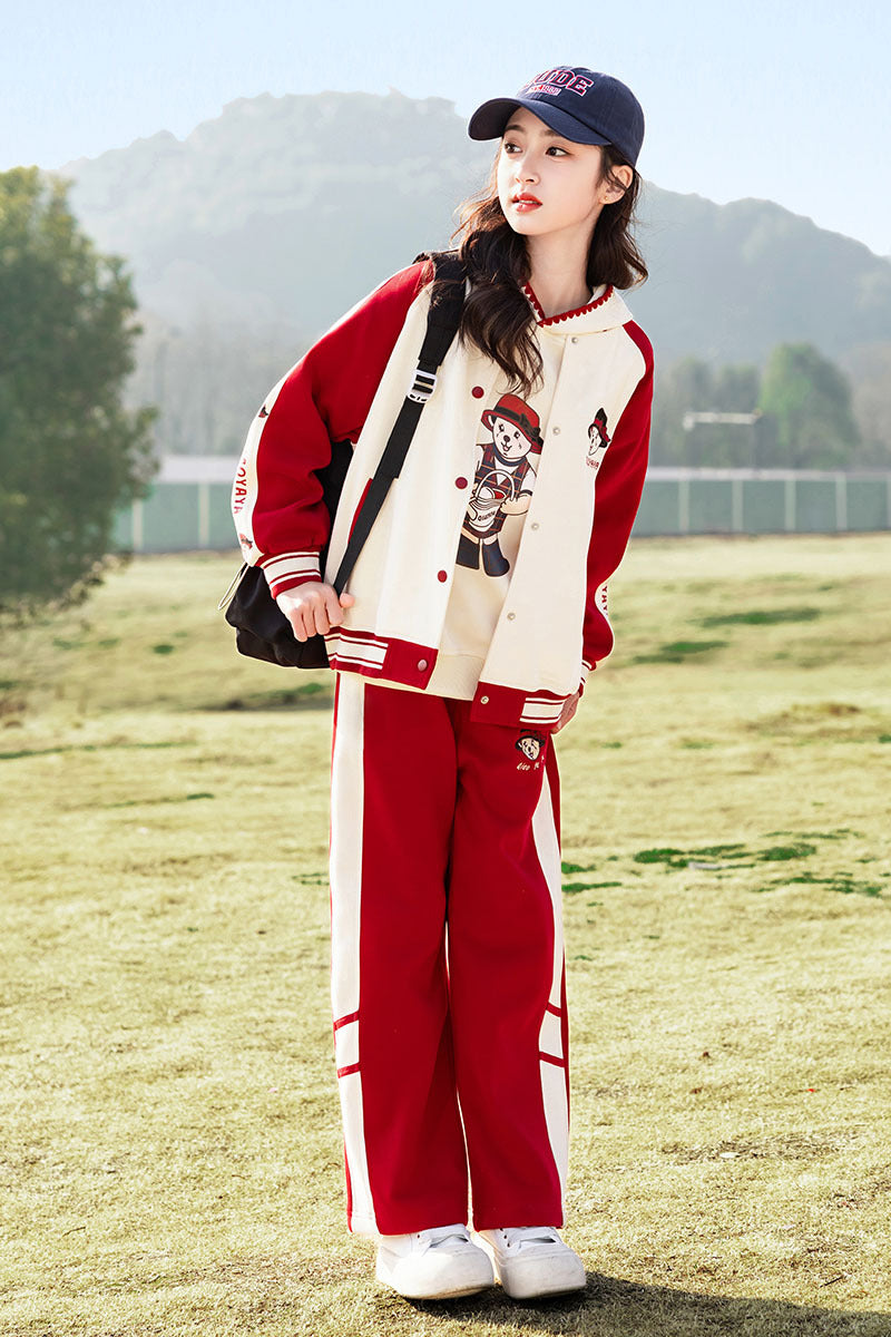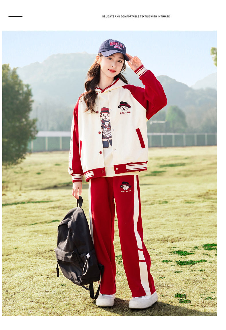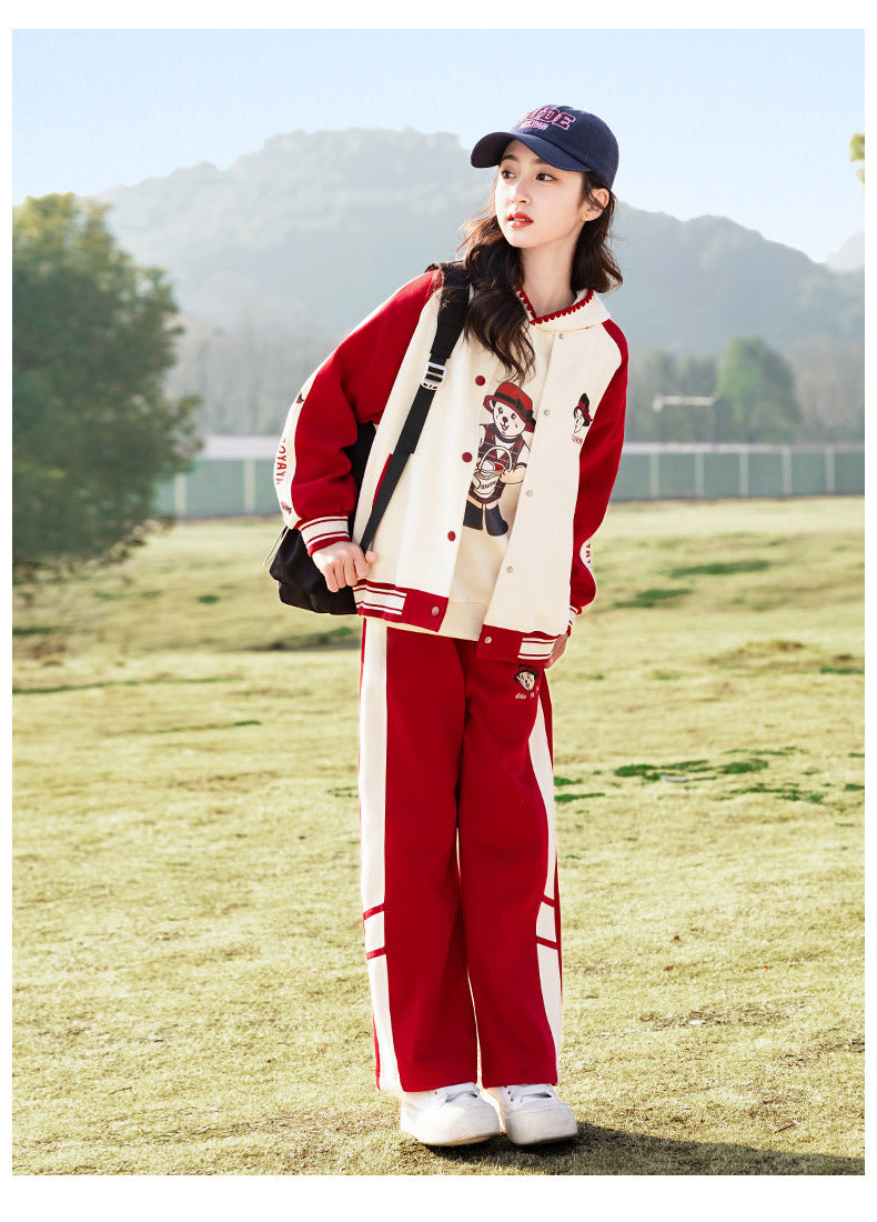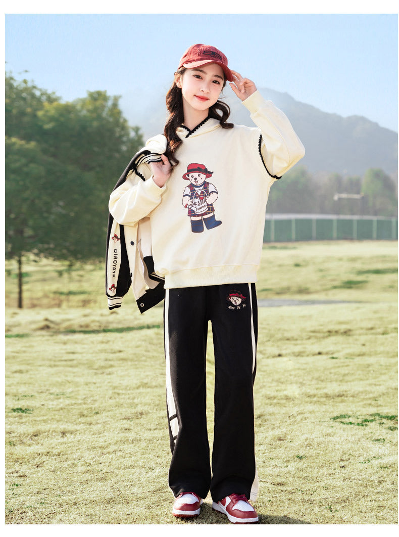 RM090424-3 بدلة سبورت قطني بناتي 3 قطع ( بلوزة + جكيت + بنطلون )