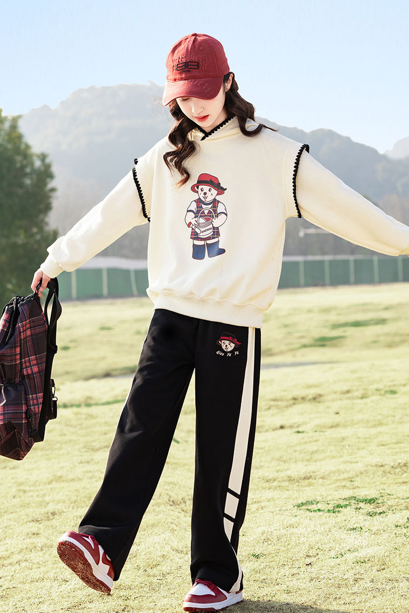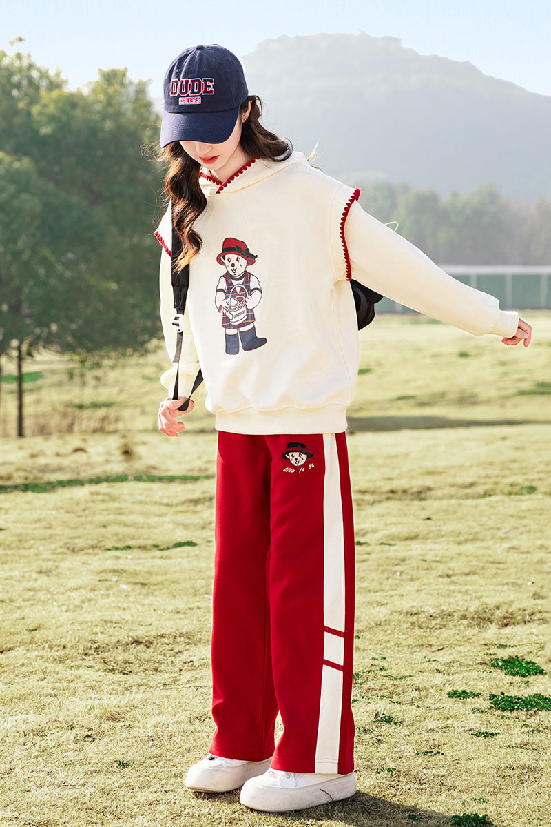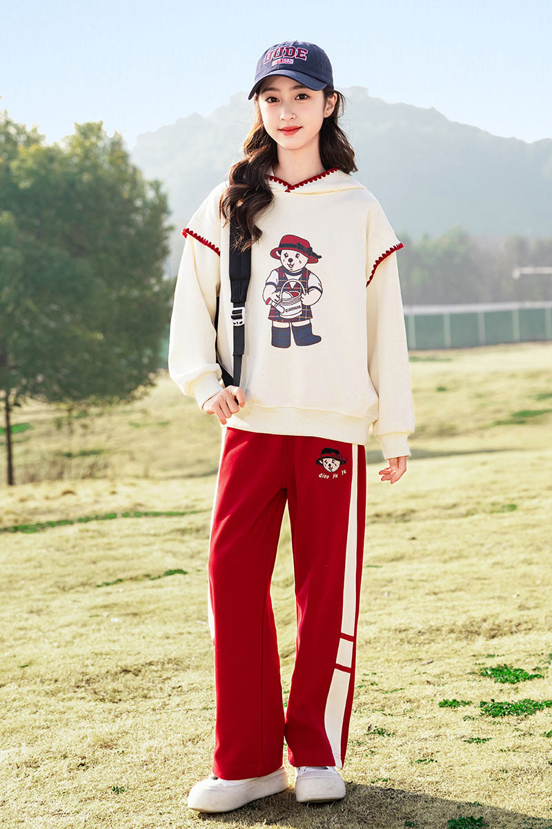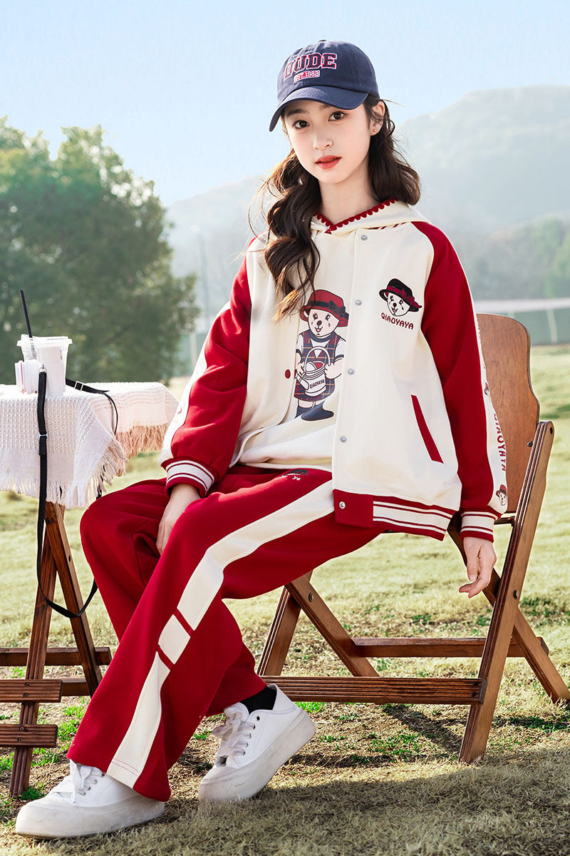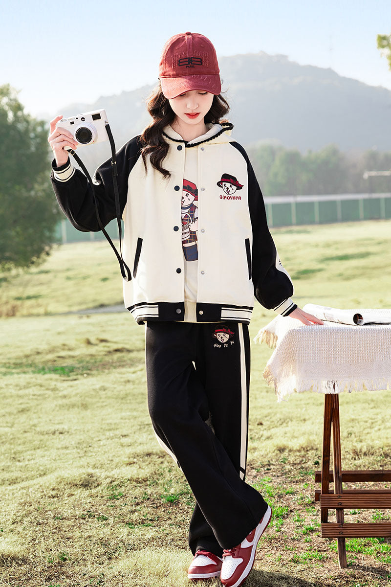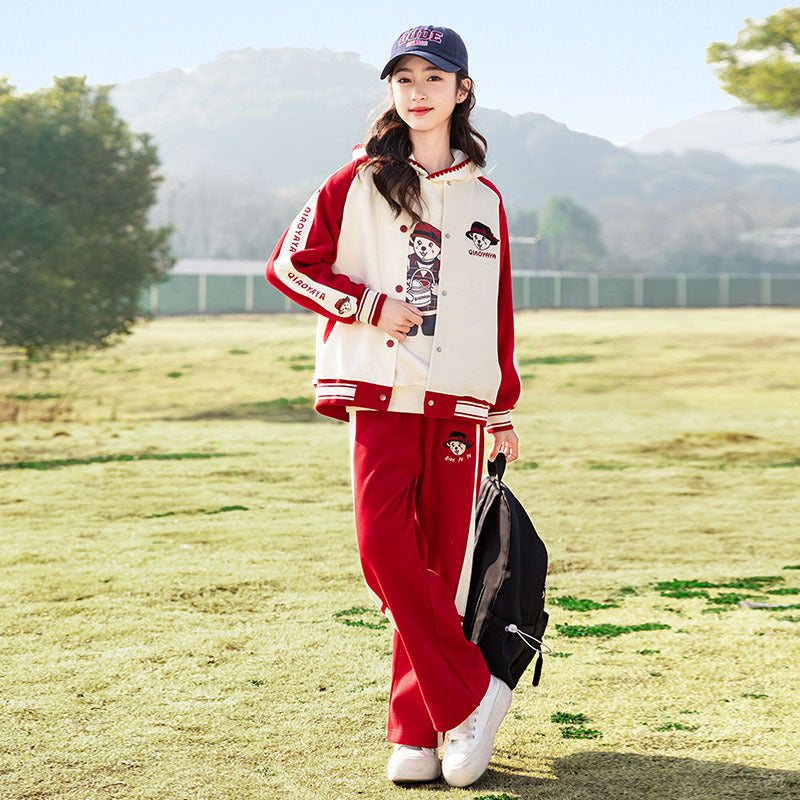 RM090424-3 بدلة سبورت قطني بناتي 3 قطع ( بلوزة + جكيت + بنطلون )