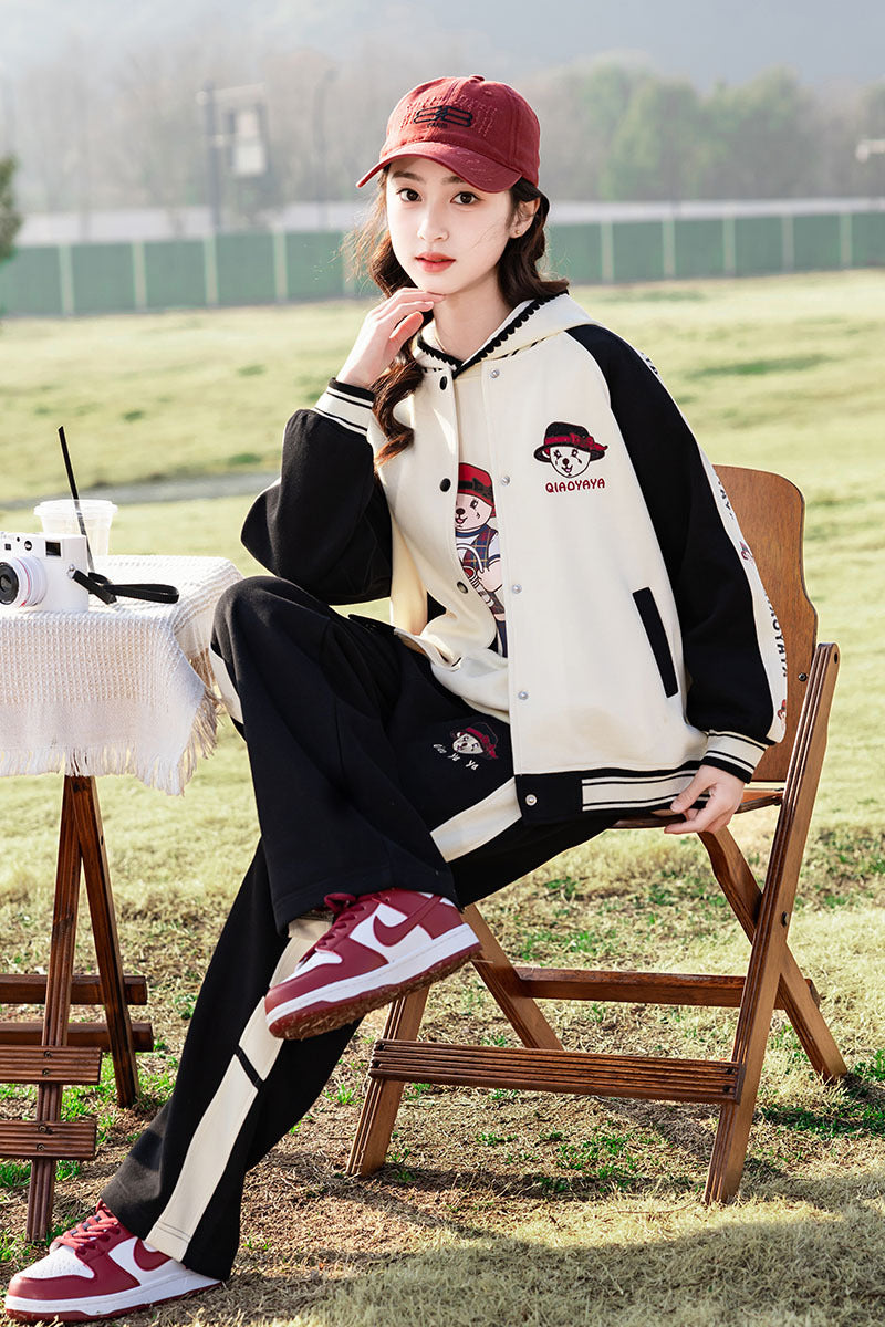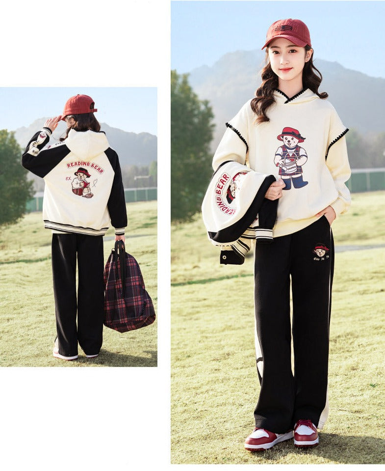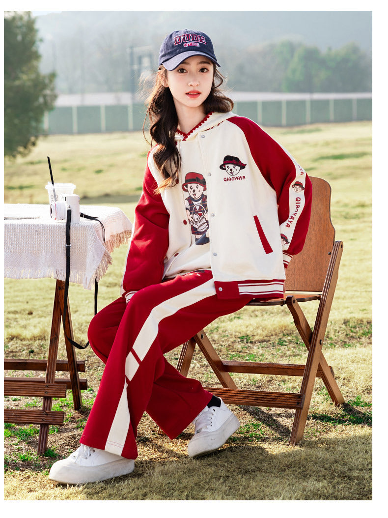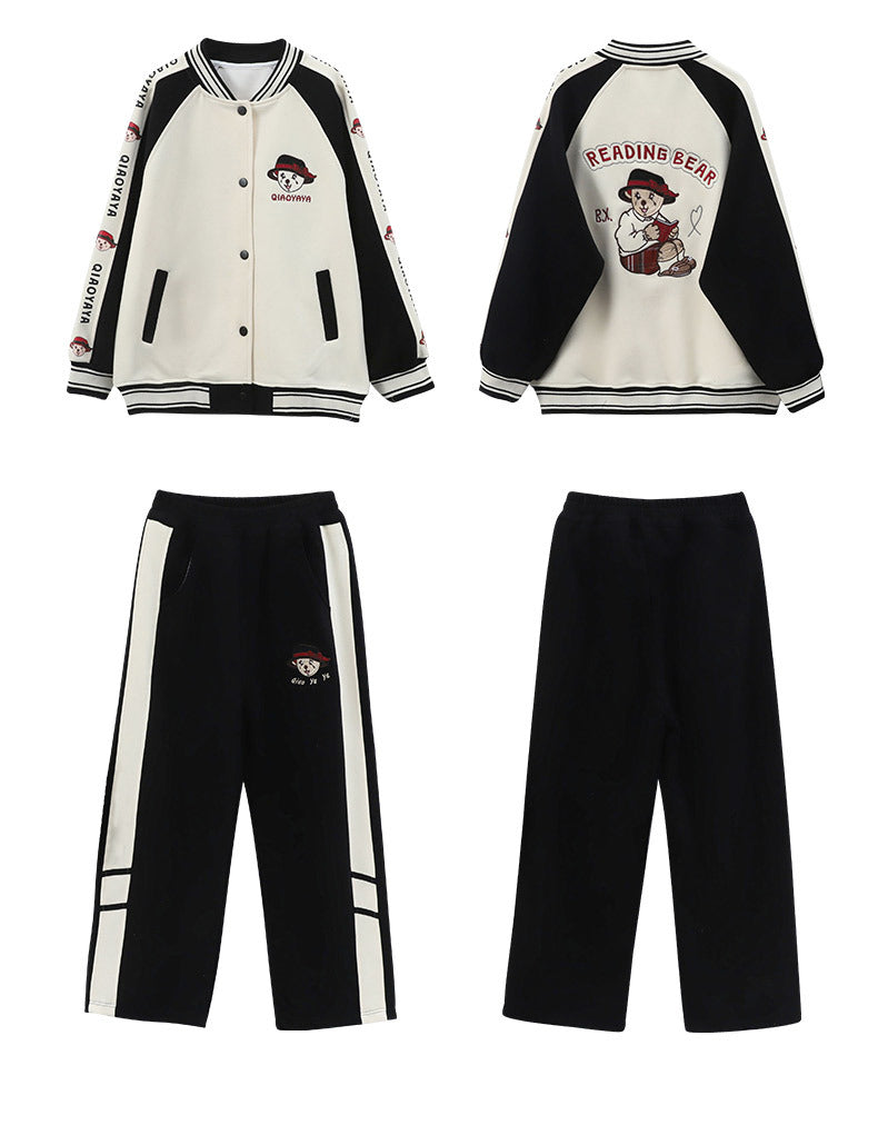 طقم سبورت قطني بناتي 3 قطع ( بلوزة + جكيت + بنطلون ) خامة ممتازة