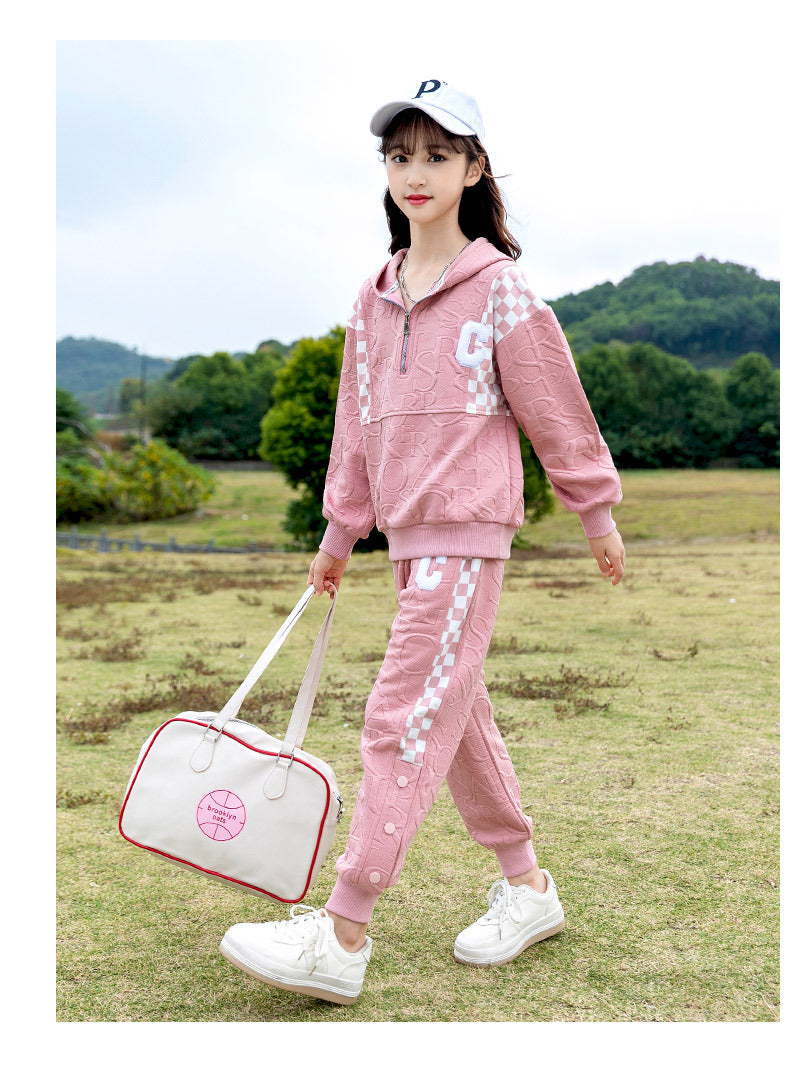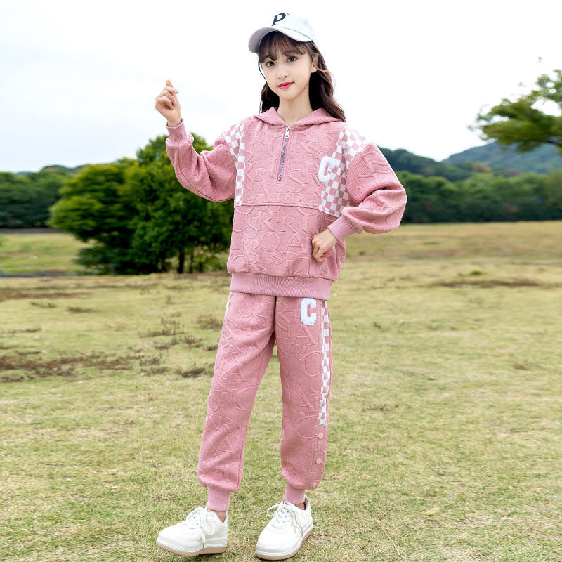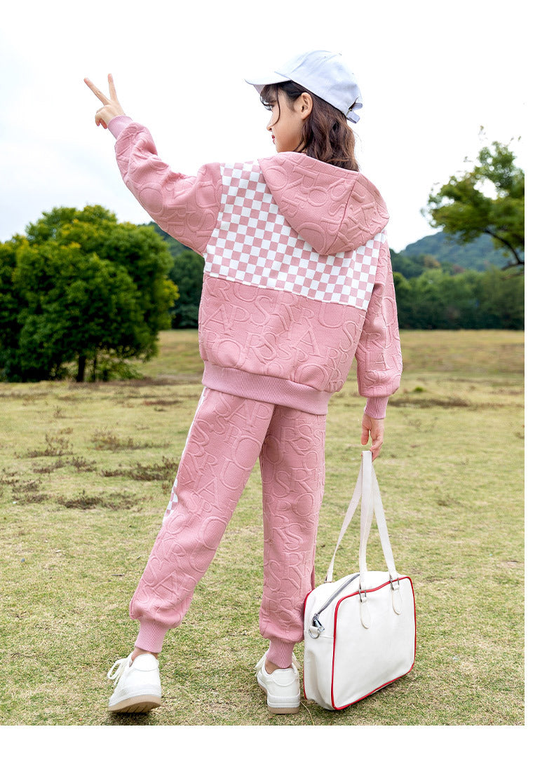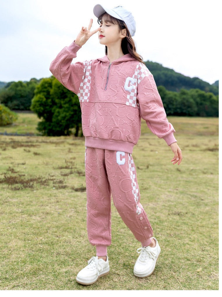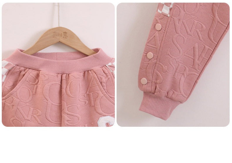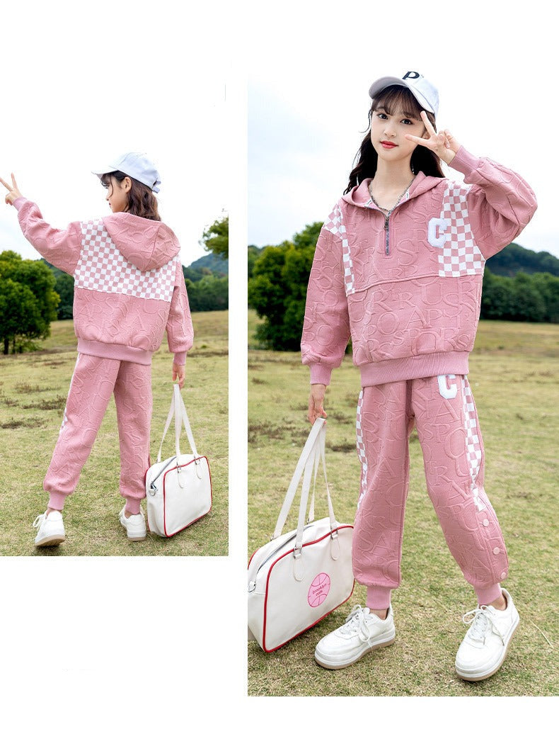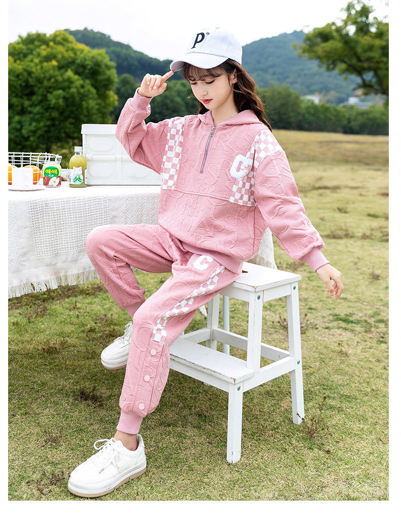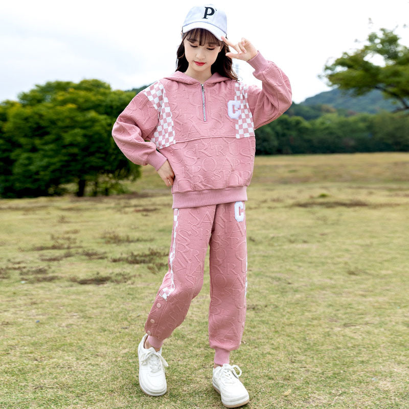 RM090424-6 بدلة رياضية تريننج قطن بناتي قطعتين ( بلوزة + بنطلون) رسومات بارزة خامة ممتازة