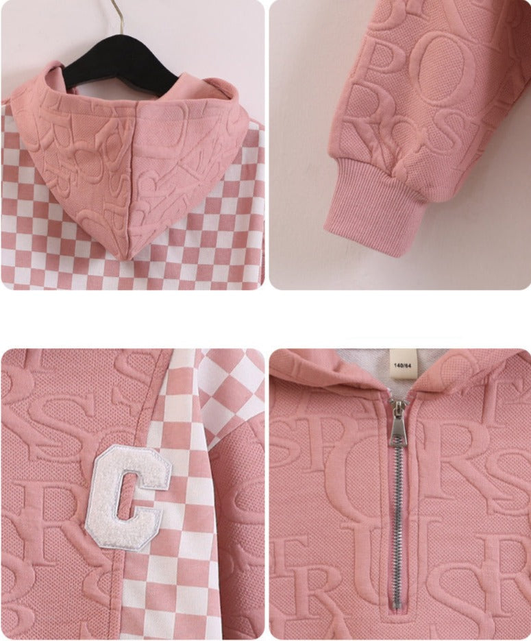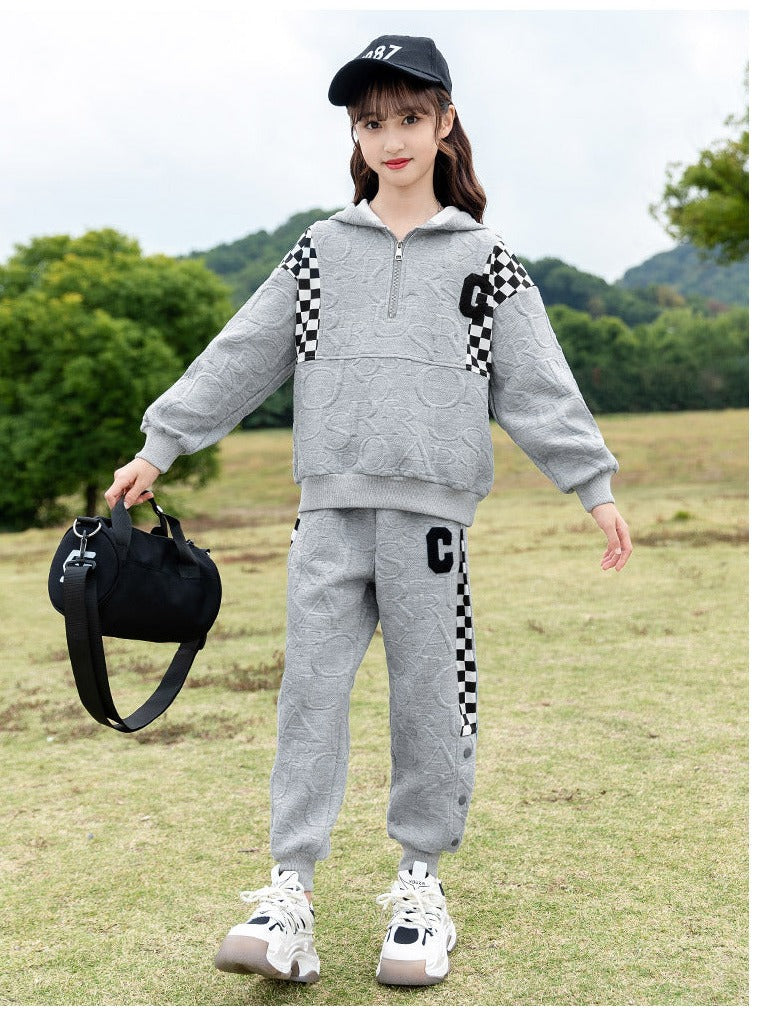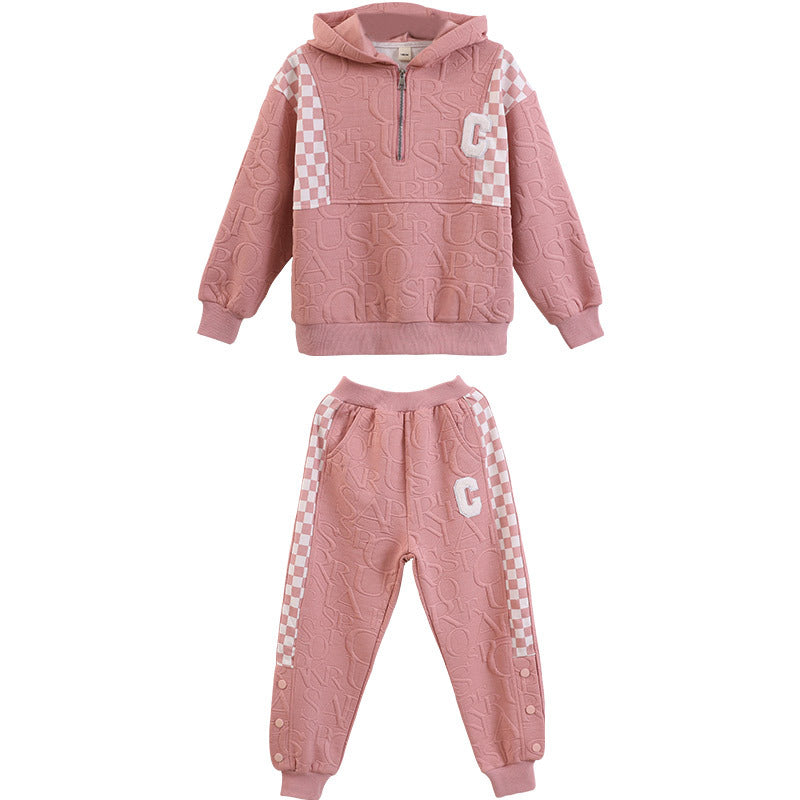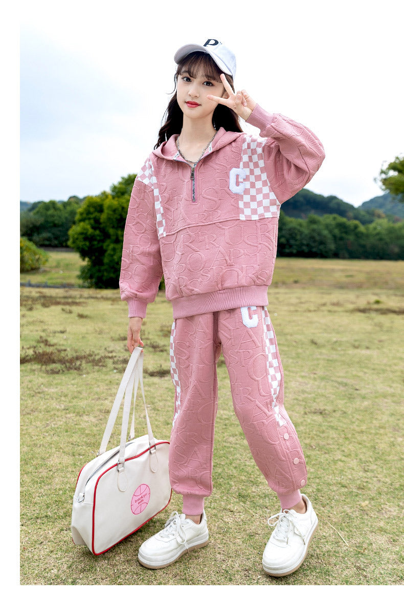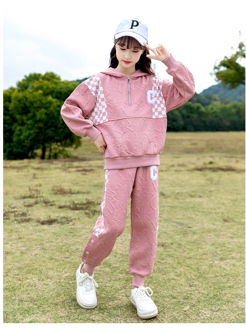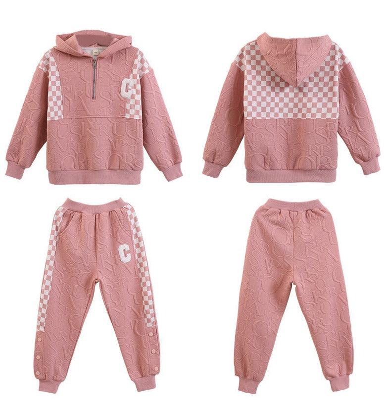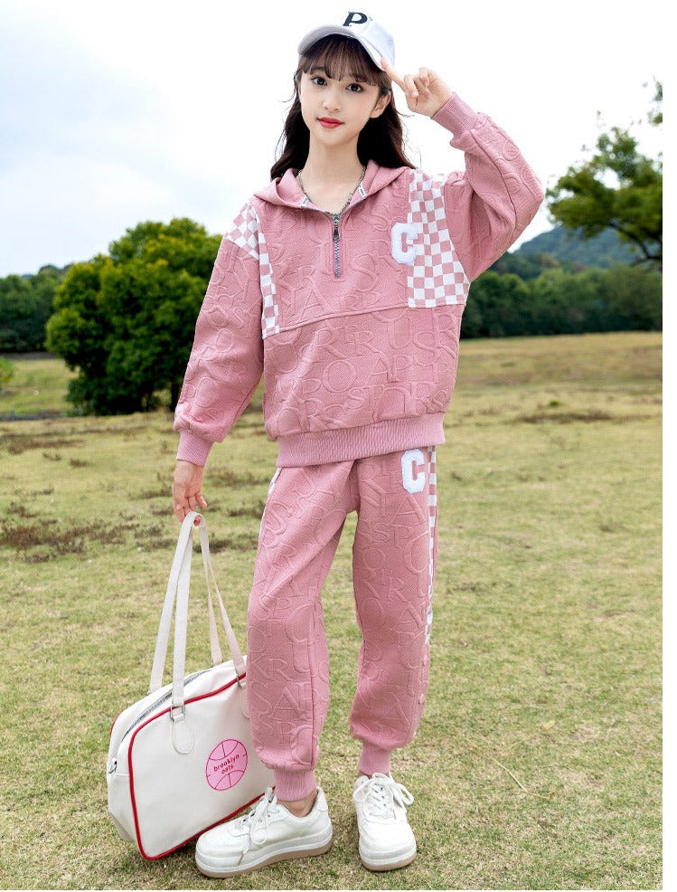 RM090424-6 بدلة رياضية تريننج قطن بناتي قطعتين ( بلوزة + بنطلون) رسومات بارزة خامة ممتازة