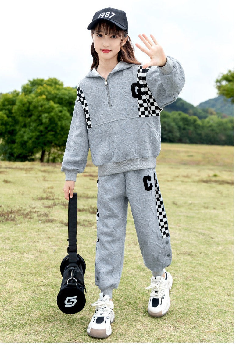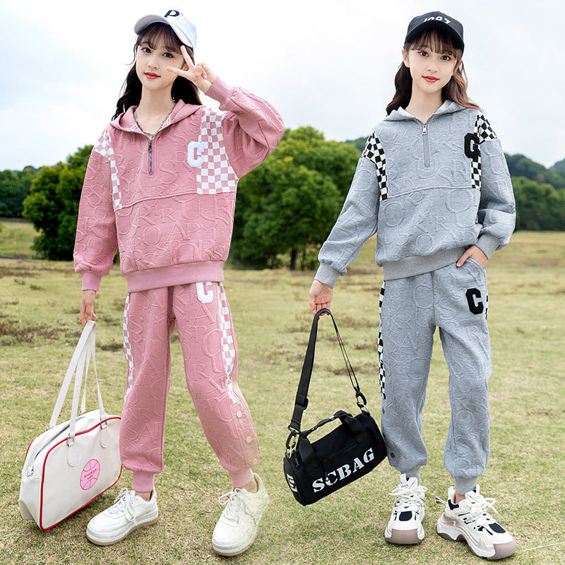 طقم رياضة تريننج بناتي قطعتين ( بلوزة + بنطلون)  رسومات بارزة خامة ممتازة