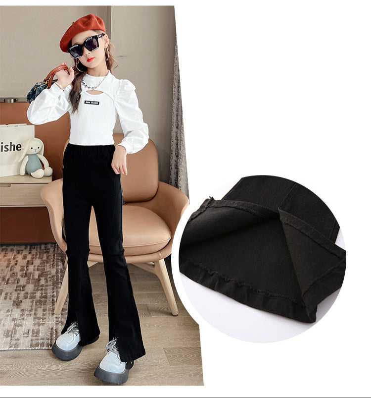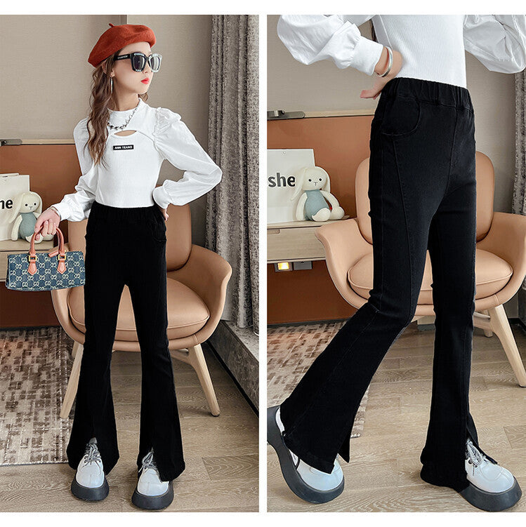 RM110825-11 بنطلون جينز اسود قصة عصرية