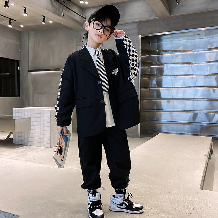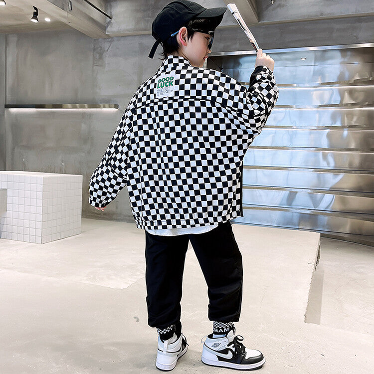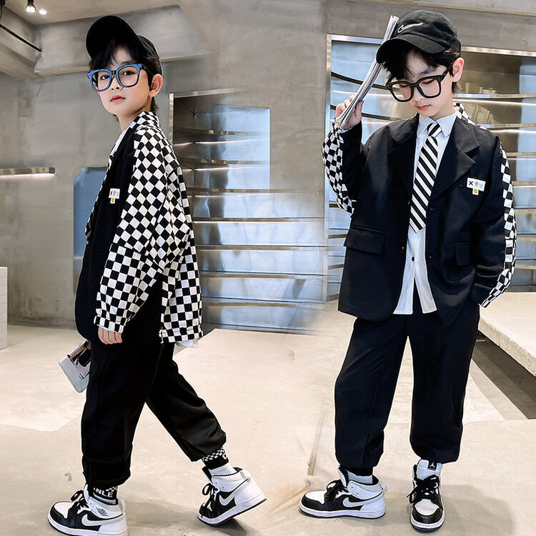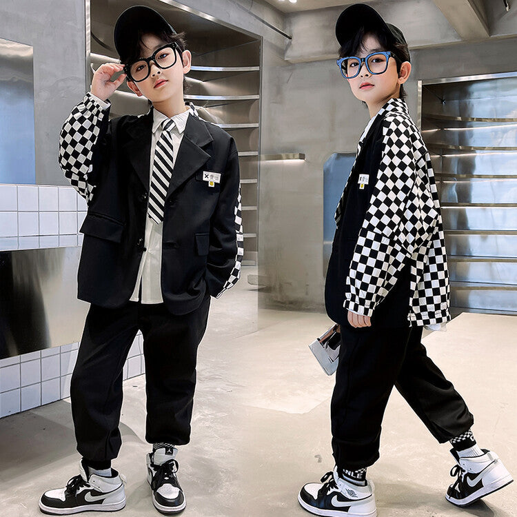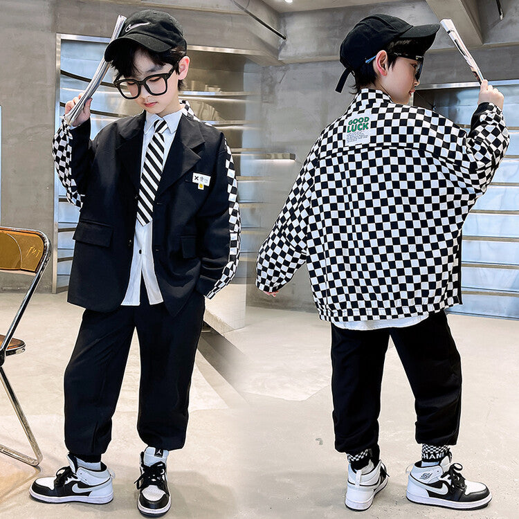 RM1227-14 بدلة الشطرنج 4 قطع ( جكيت + قميص + جرافة + بنطلون)
