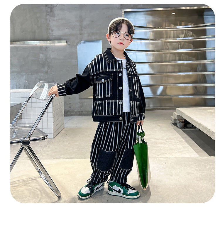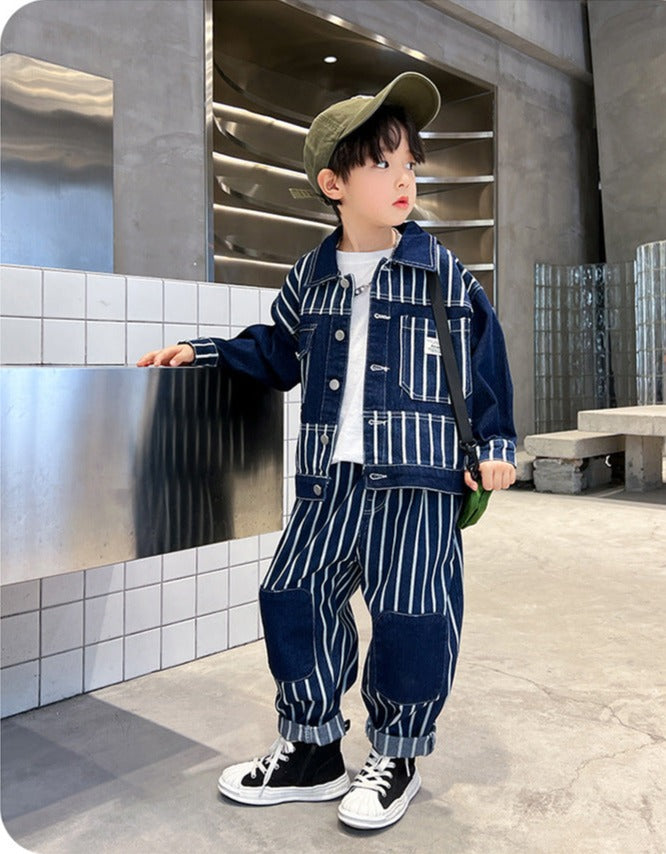 طقم جينز ولادي قطعتين ( جكيت + بنطلون )