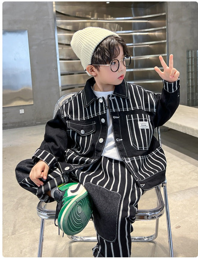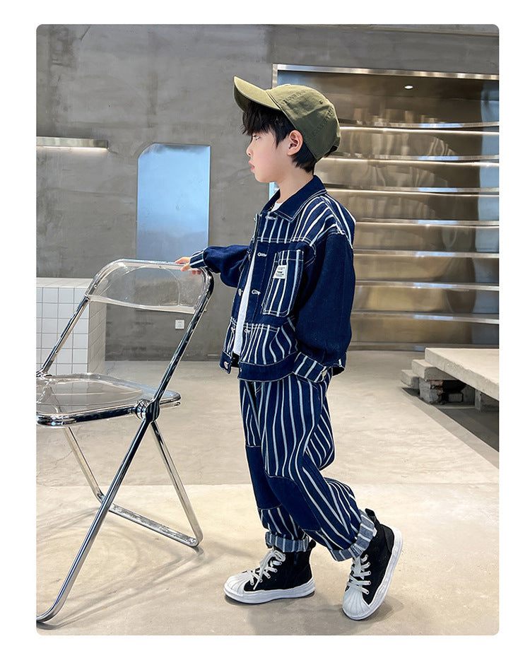 RM1227-16 طقم جينز ولادي قطعتين ( جكيت + بنطلون )